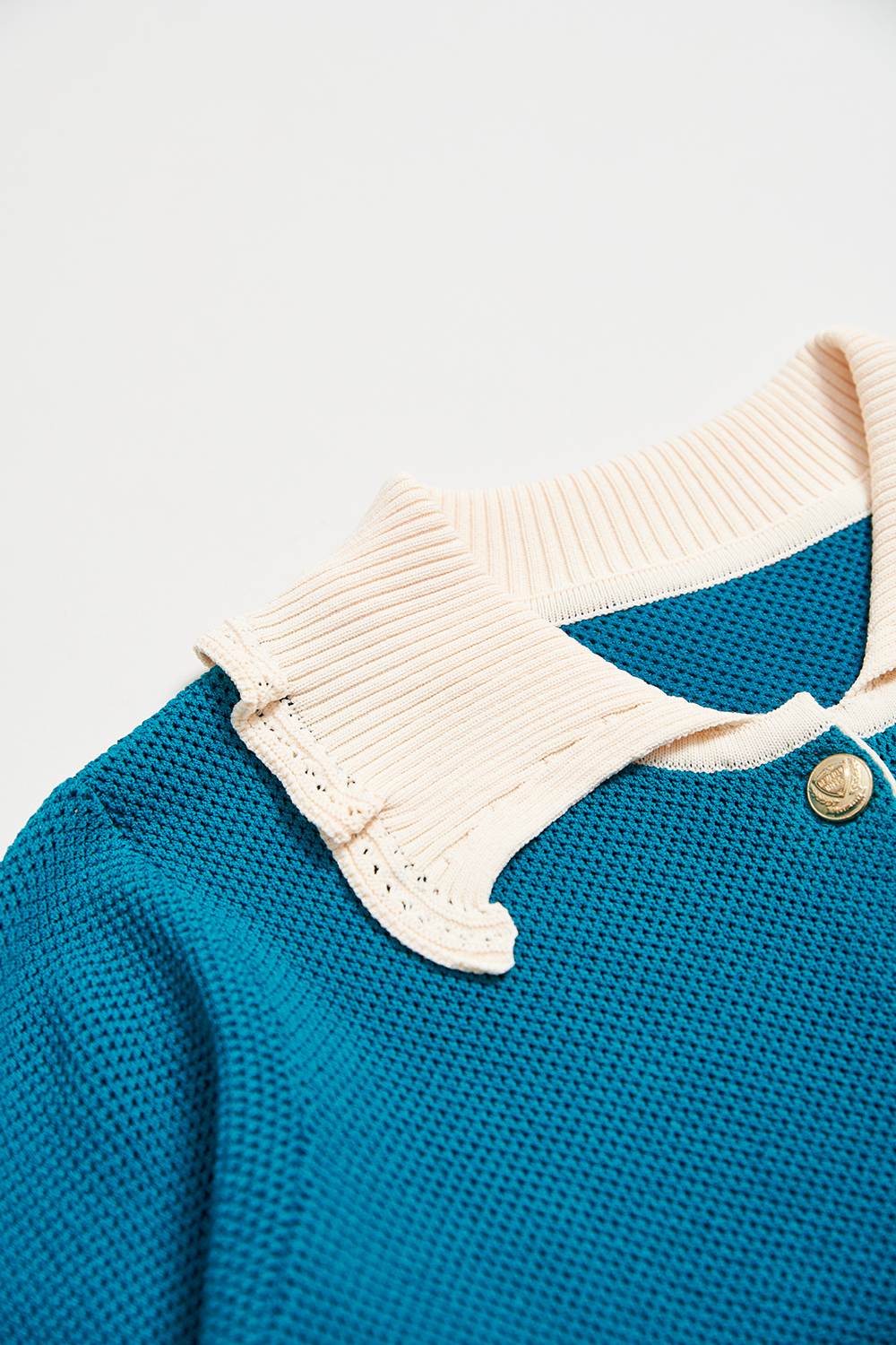 星光燦爛小荷葉領針織上衣 - 霧柔墨綠, 38