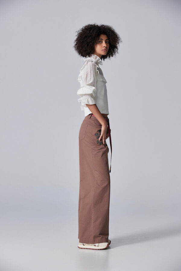 可可牛奶修身繡花長褲 - 古樸咖啡, 38