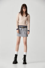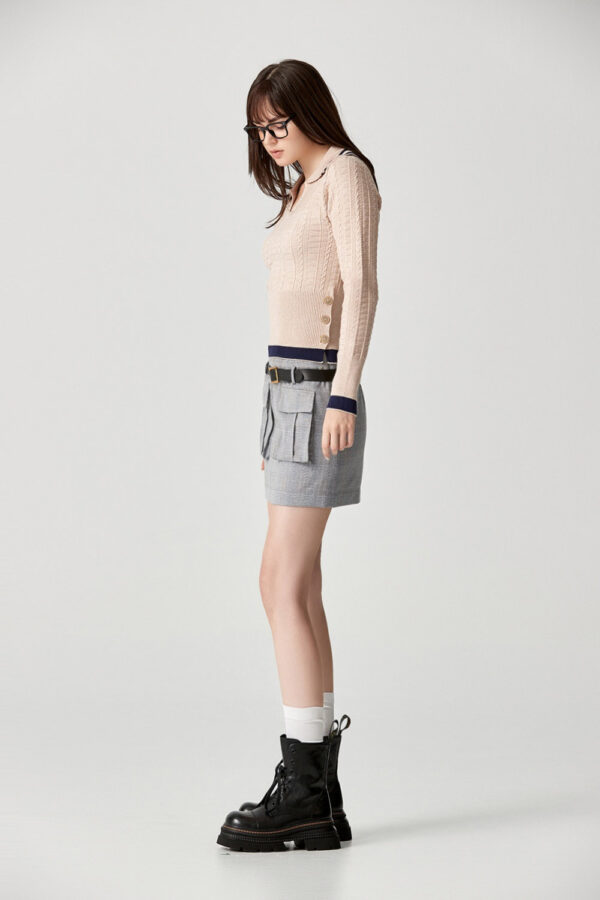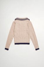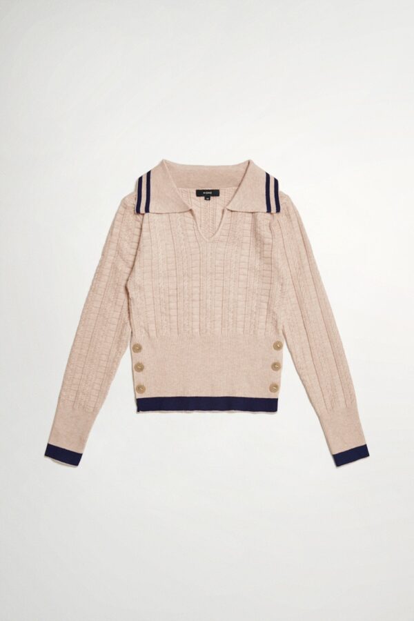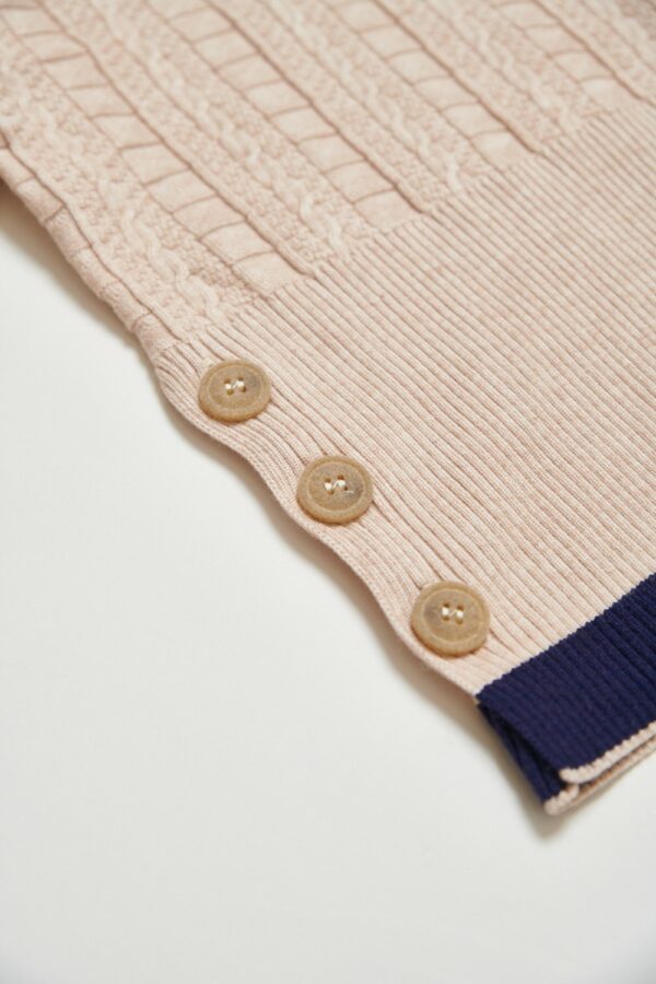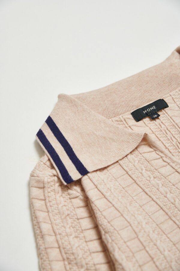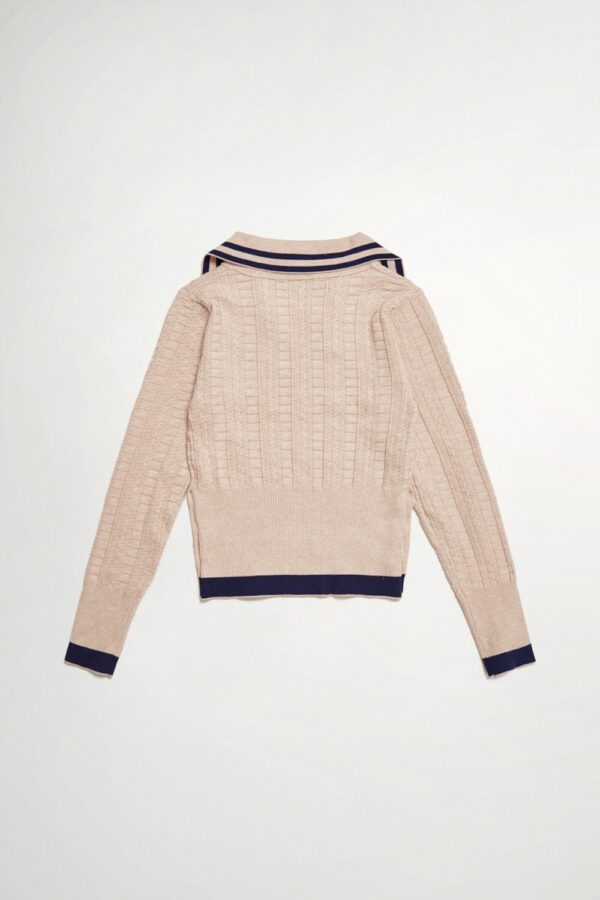 悠影輕日翻領配條針織上衣 - 可可卡其, 38