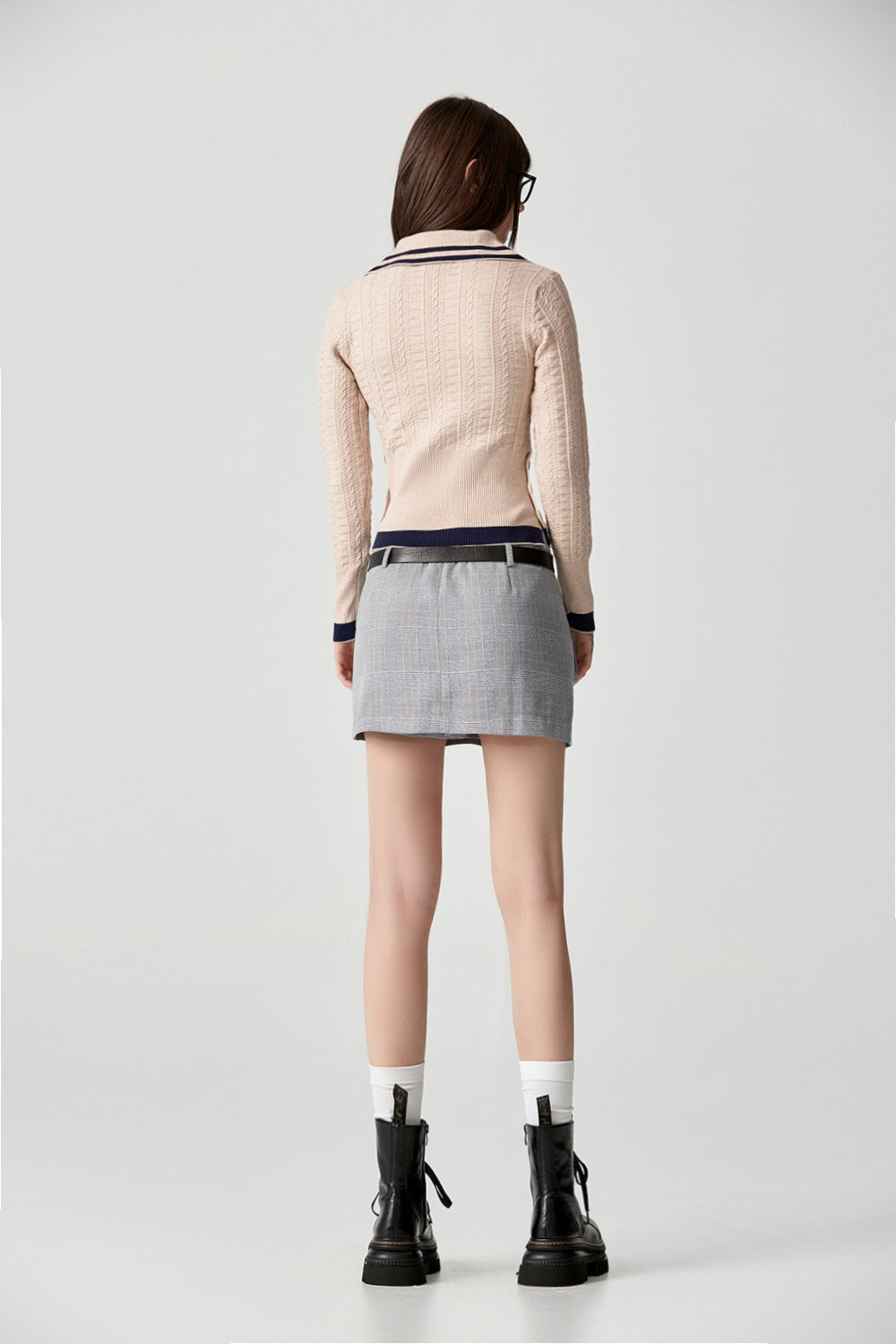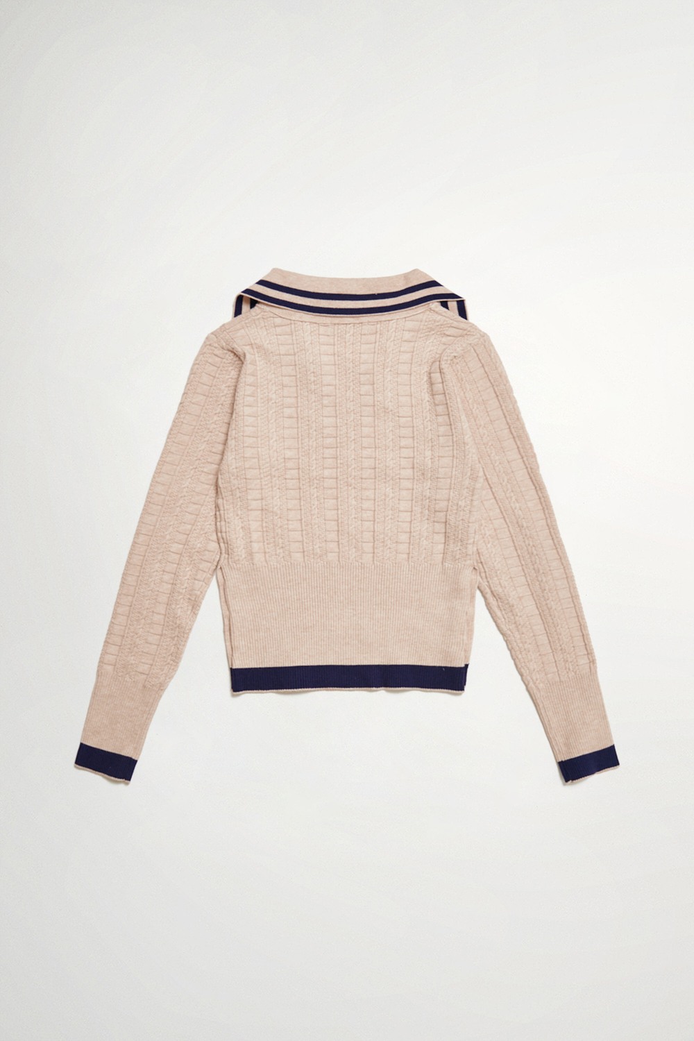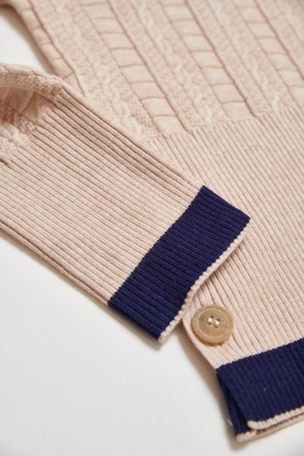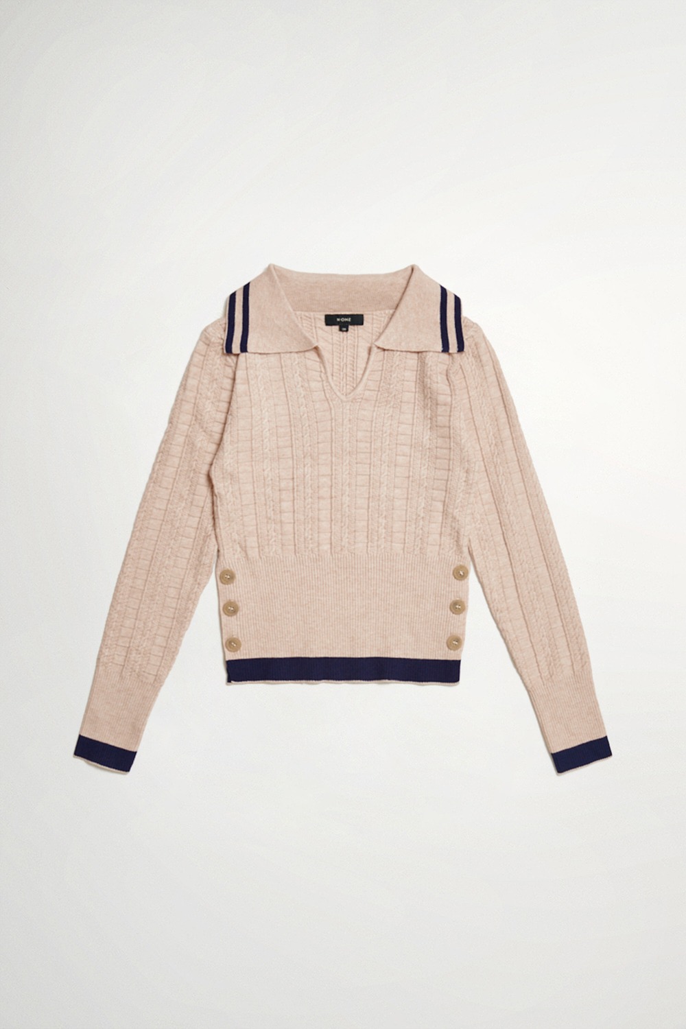 悠影輕日翻領配條針織上衣 - 可可卡其, 38