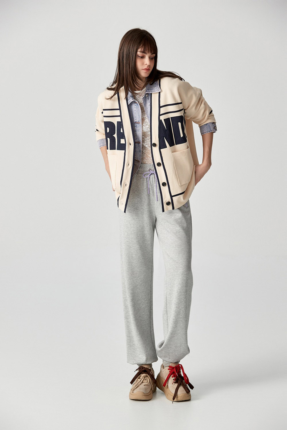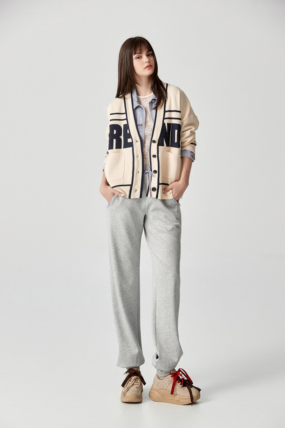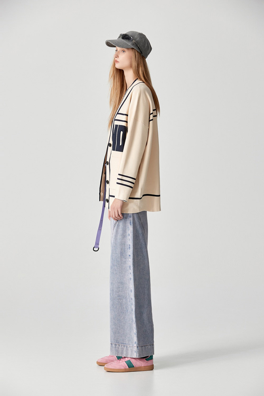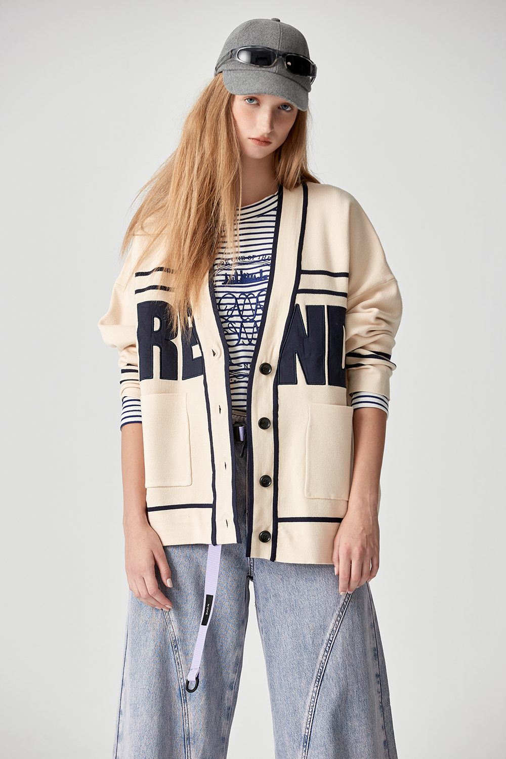 經典雋永配色繡花針織外套 - 奶油杏色, F