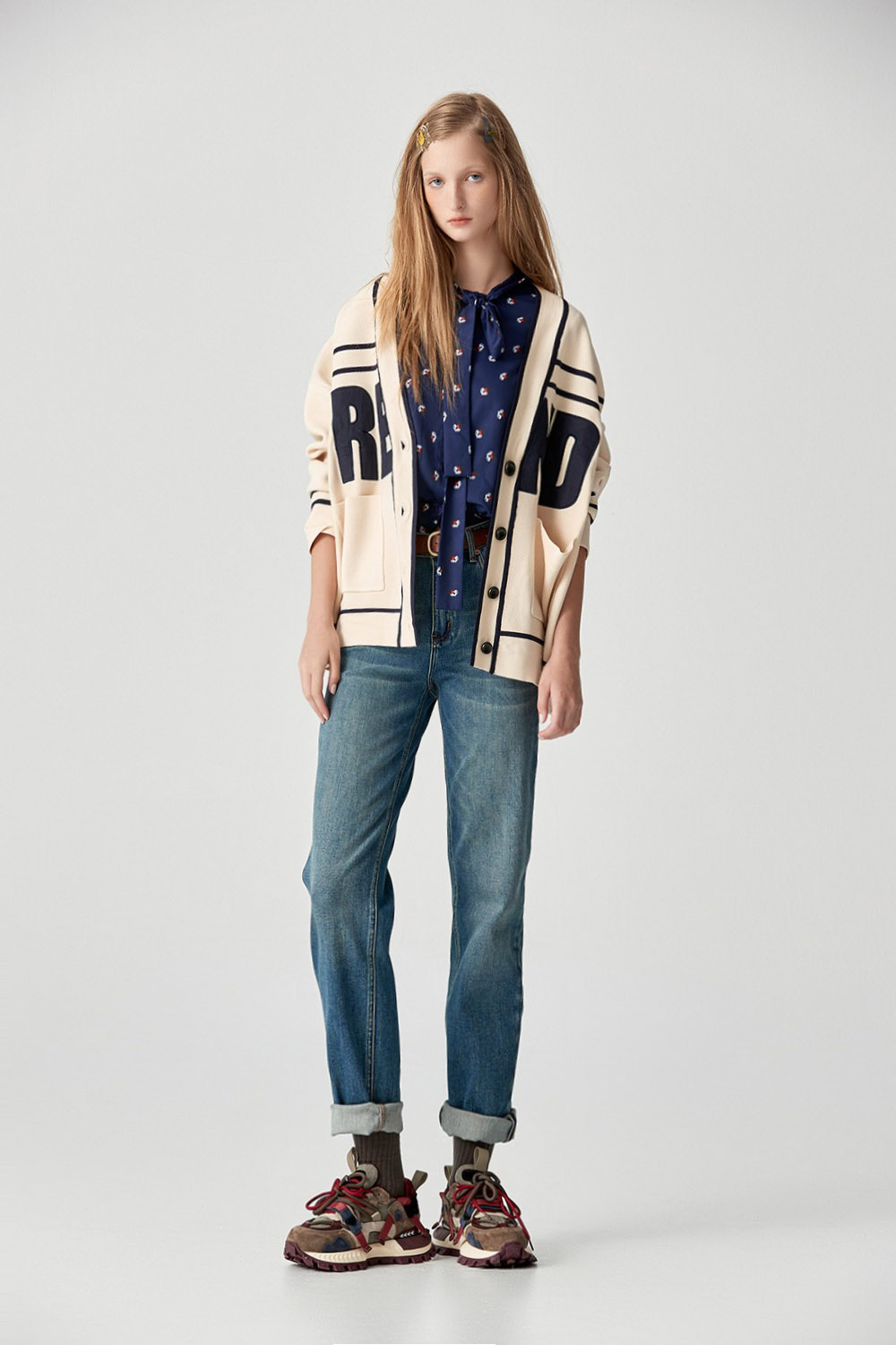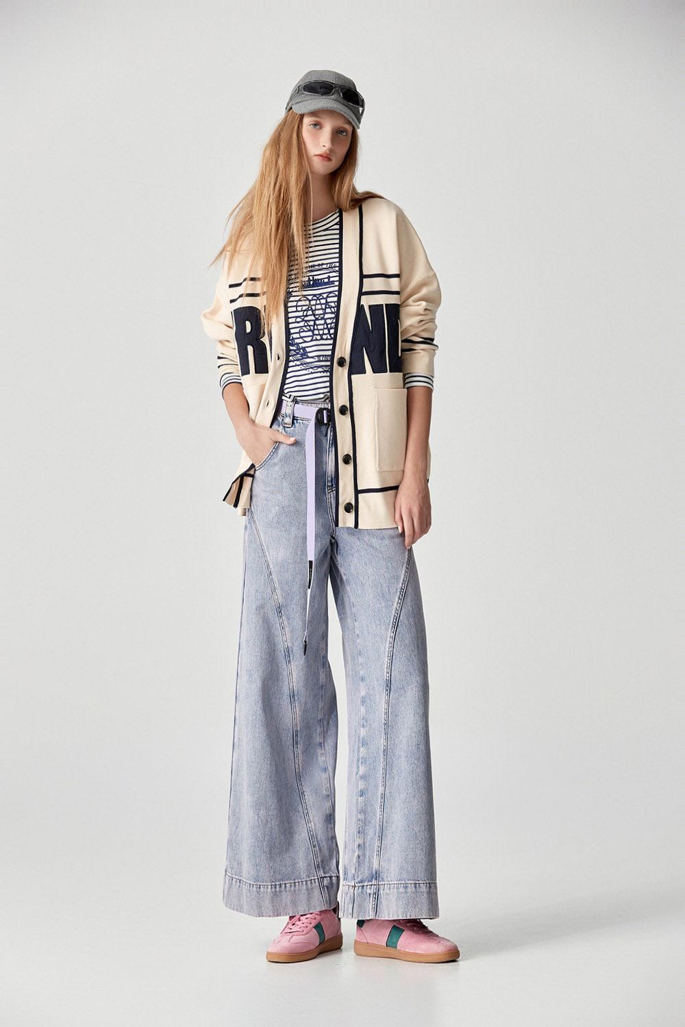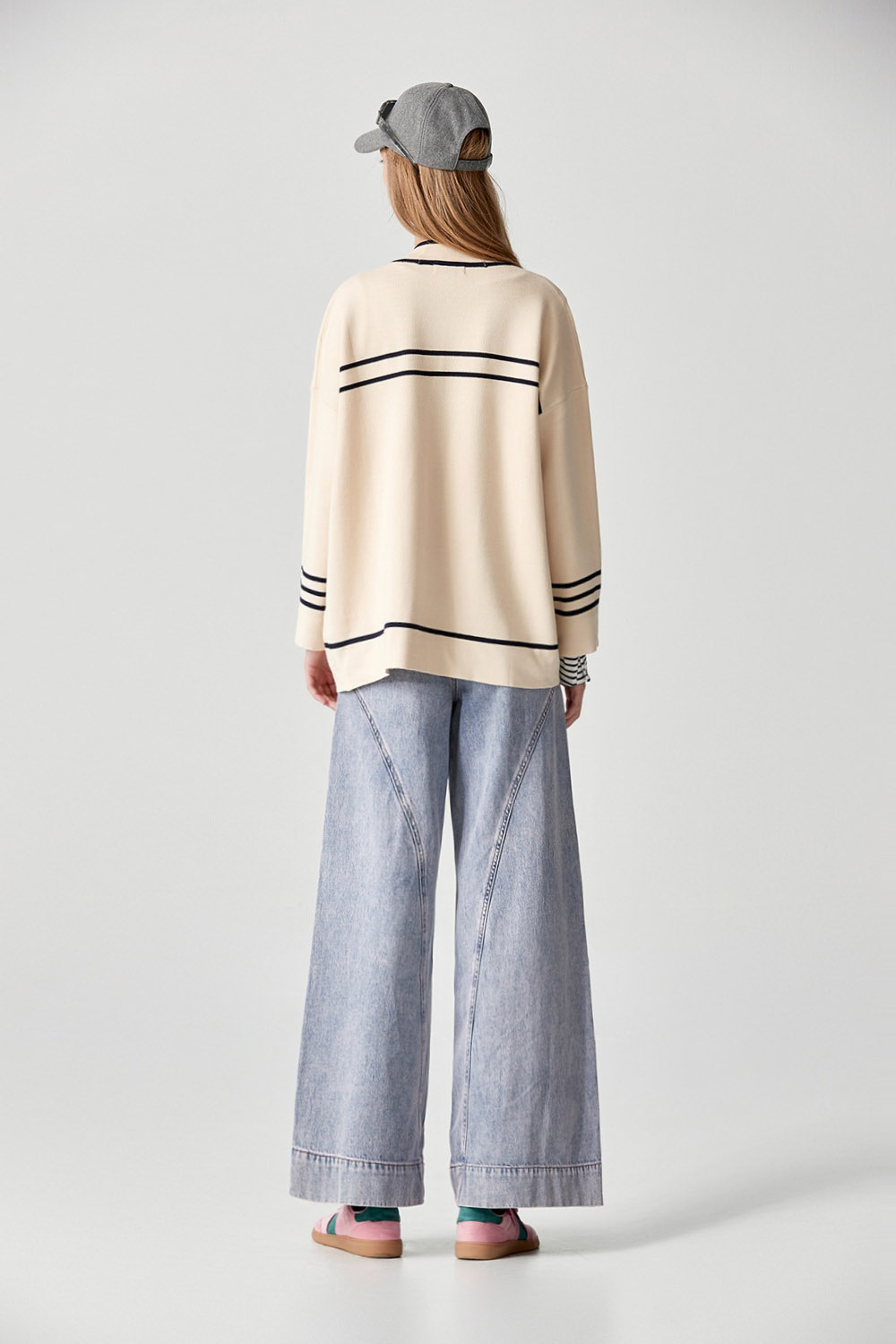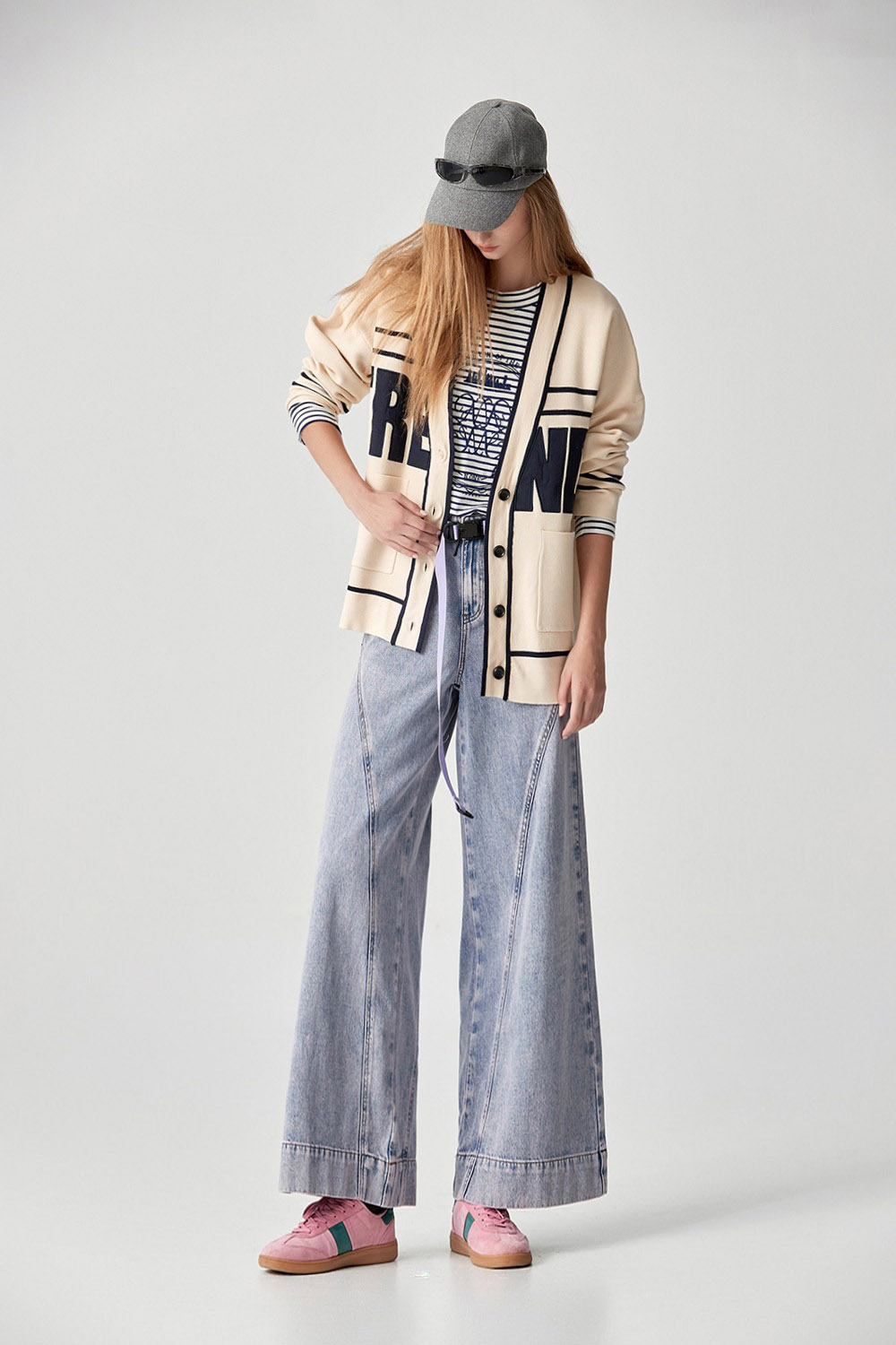 經典雋永配色繡花針織外套 - 奶油杏色, F