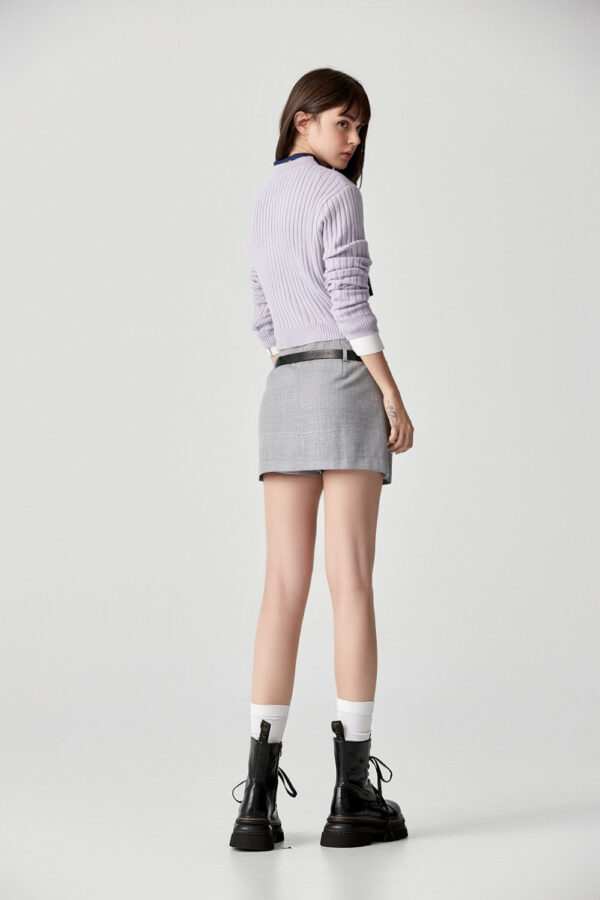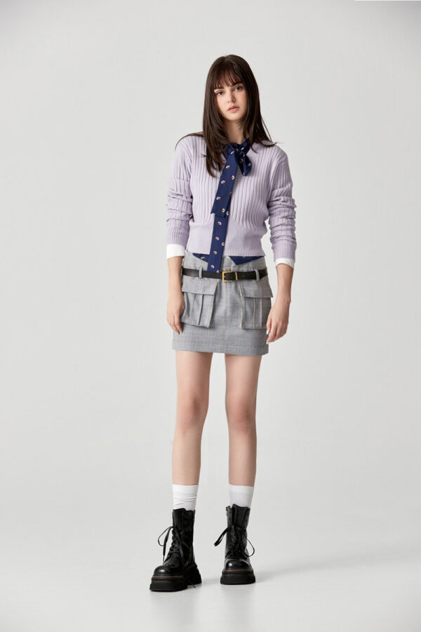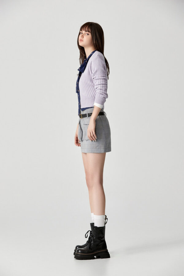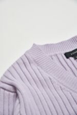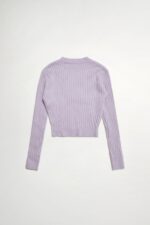 若待寓光坑條V領針織上衣 - 薰衣草紫, 38