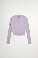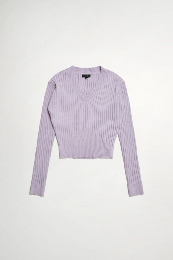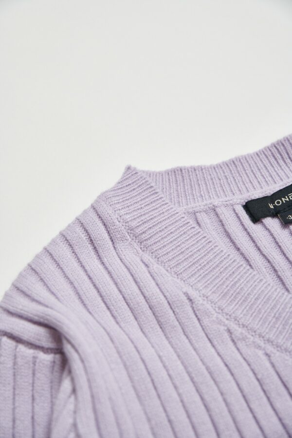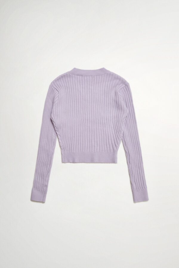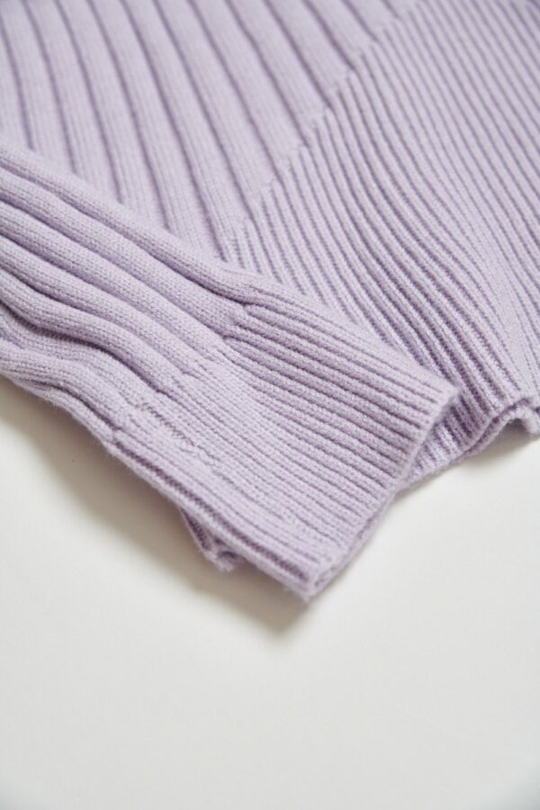 若待寓光坑條V領針織上衣 - 薰衣草紫, 36