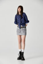 藝術氛圍印花綁帶領襯衫 - 深邃藏藍, 36