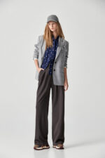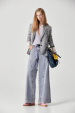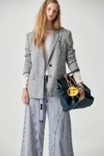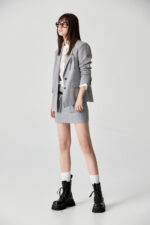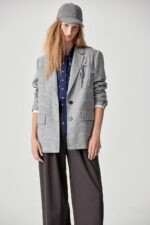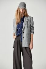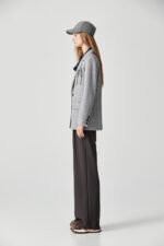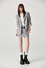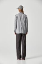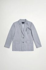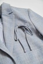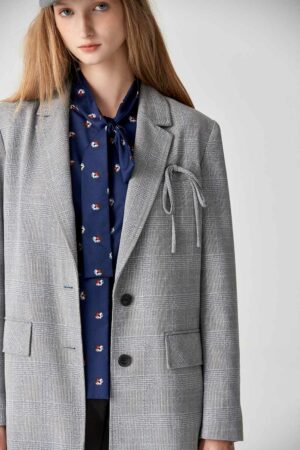 低調雅緻蝴蝶結格紋墊肩西裝外套 - 沉穩霧灰, 38
