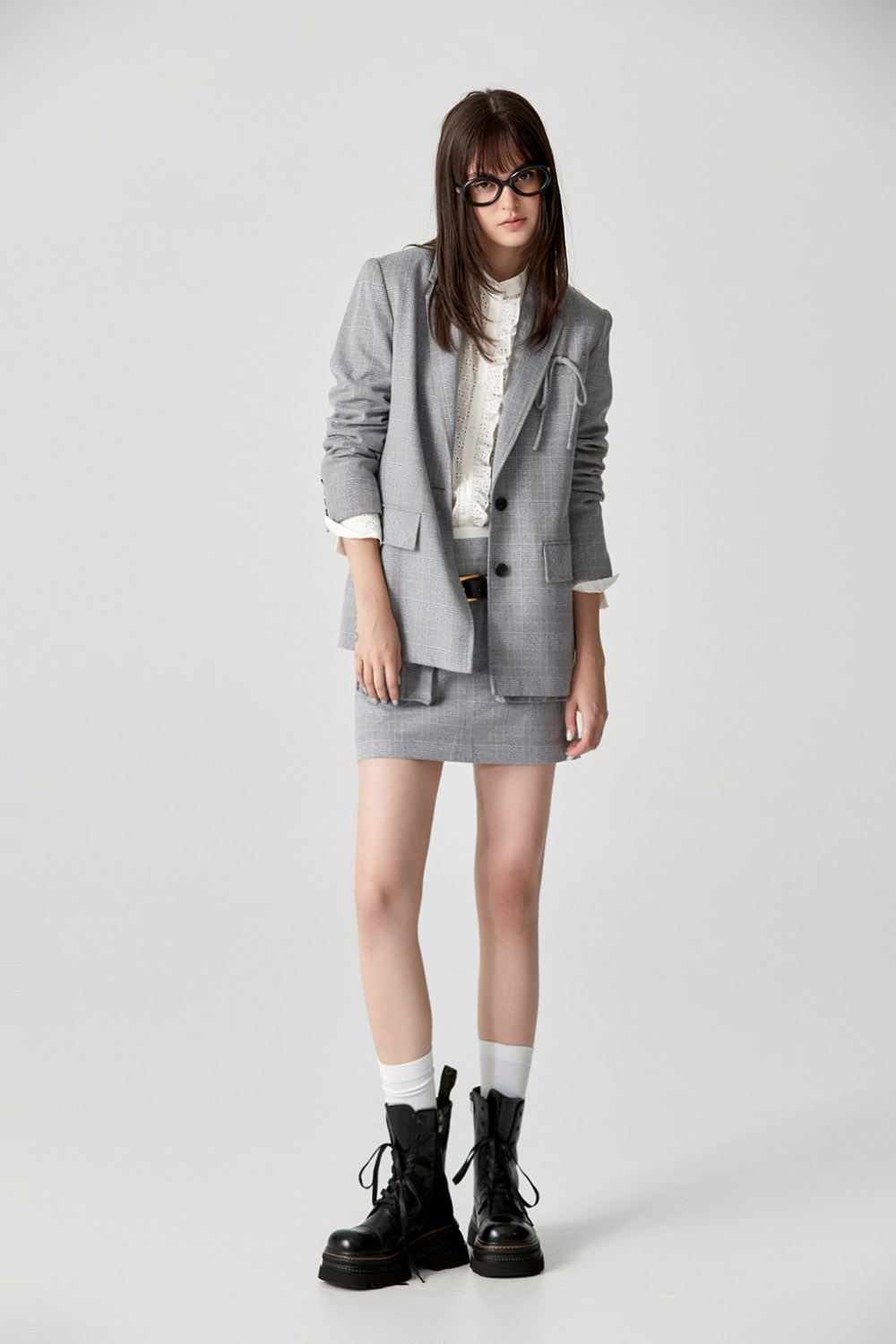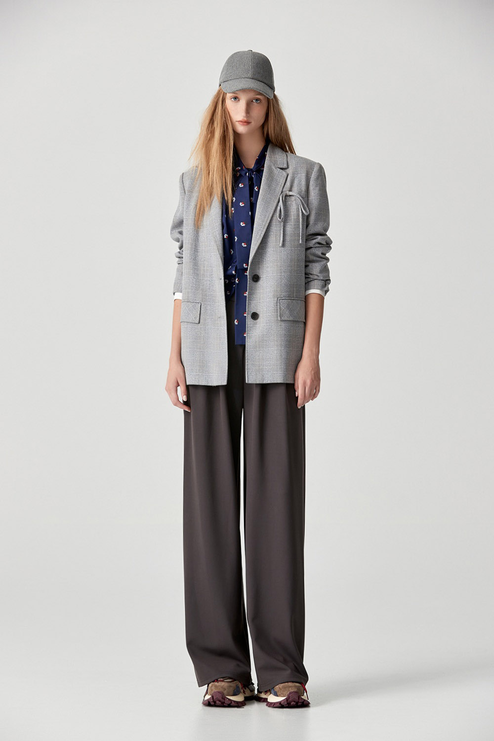 低調雅緻蝴蝶結格紋墊肩西裝外套 - 沉穩霧灰, 38