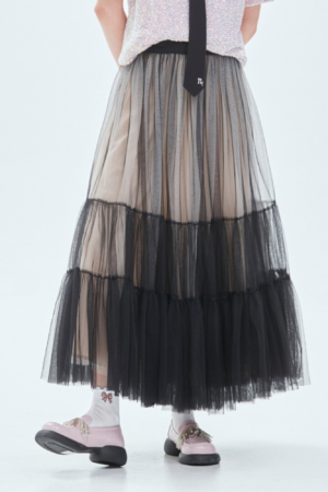 華麗禮服式網紗蛋糕裙 - 神祕純黑, 36