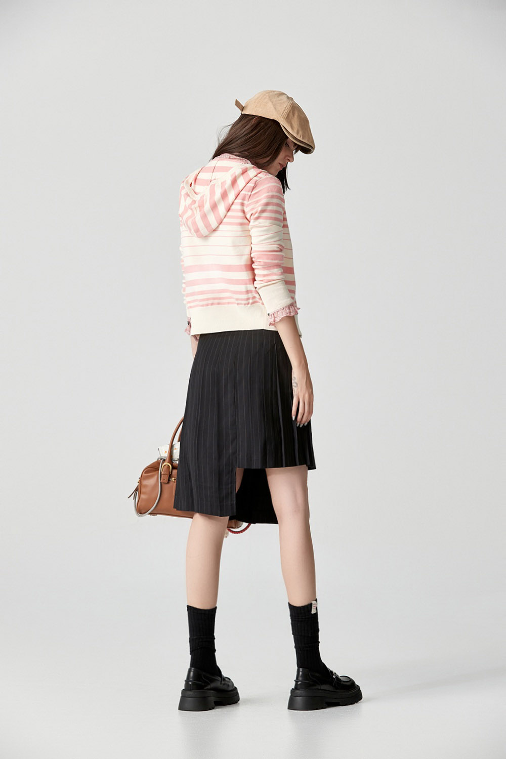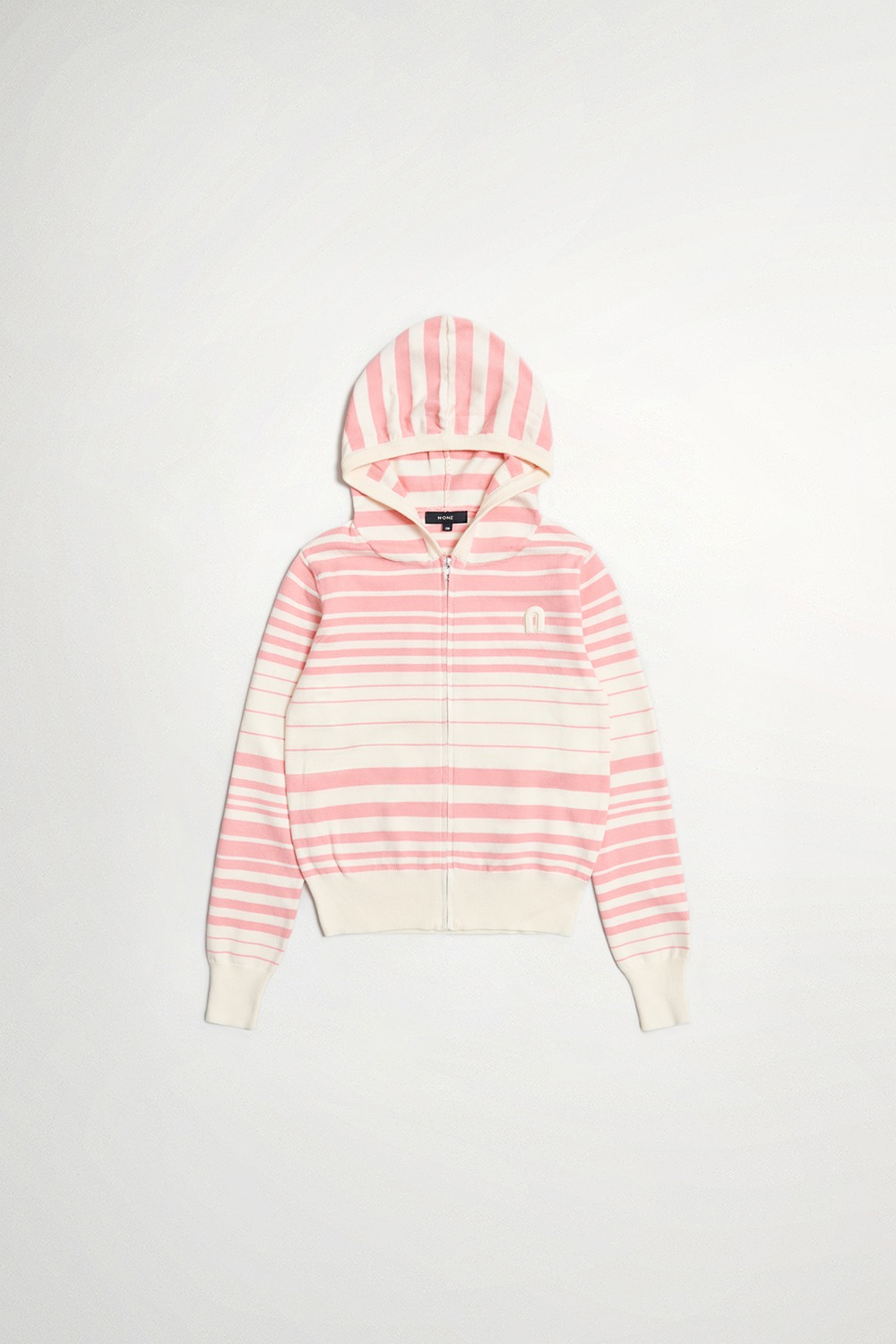 浪漫假期條紋連帽針織外套 - 微施粉澤, 36
