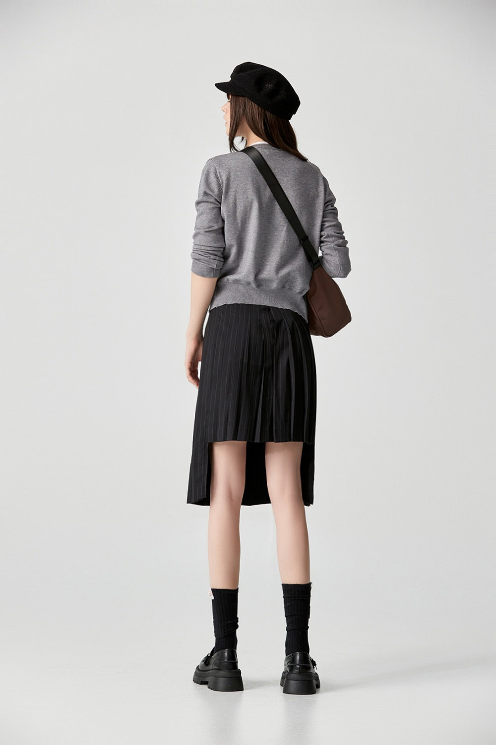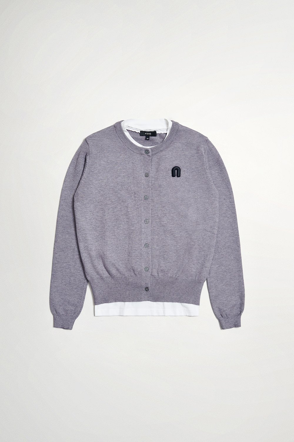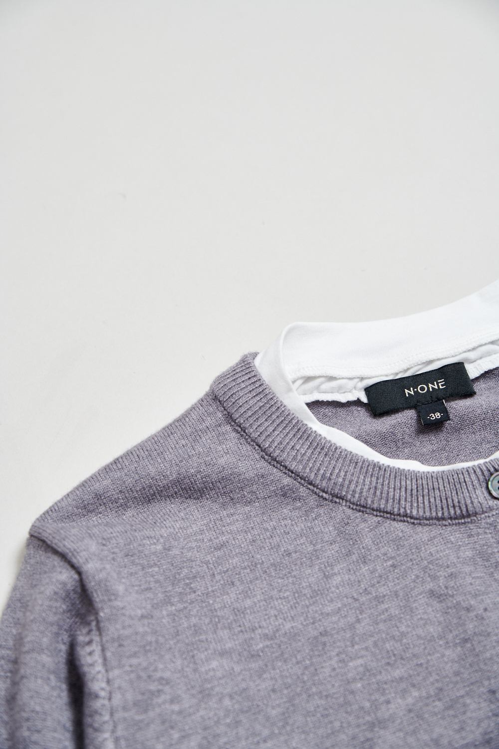 灰色空間假兩件針織上衣 - 沉穩霧灰, 38