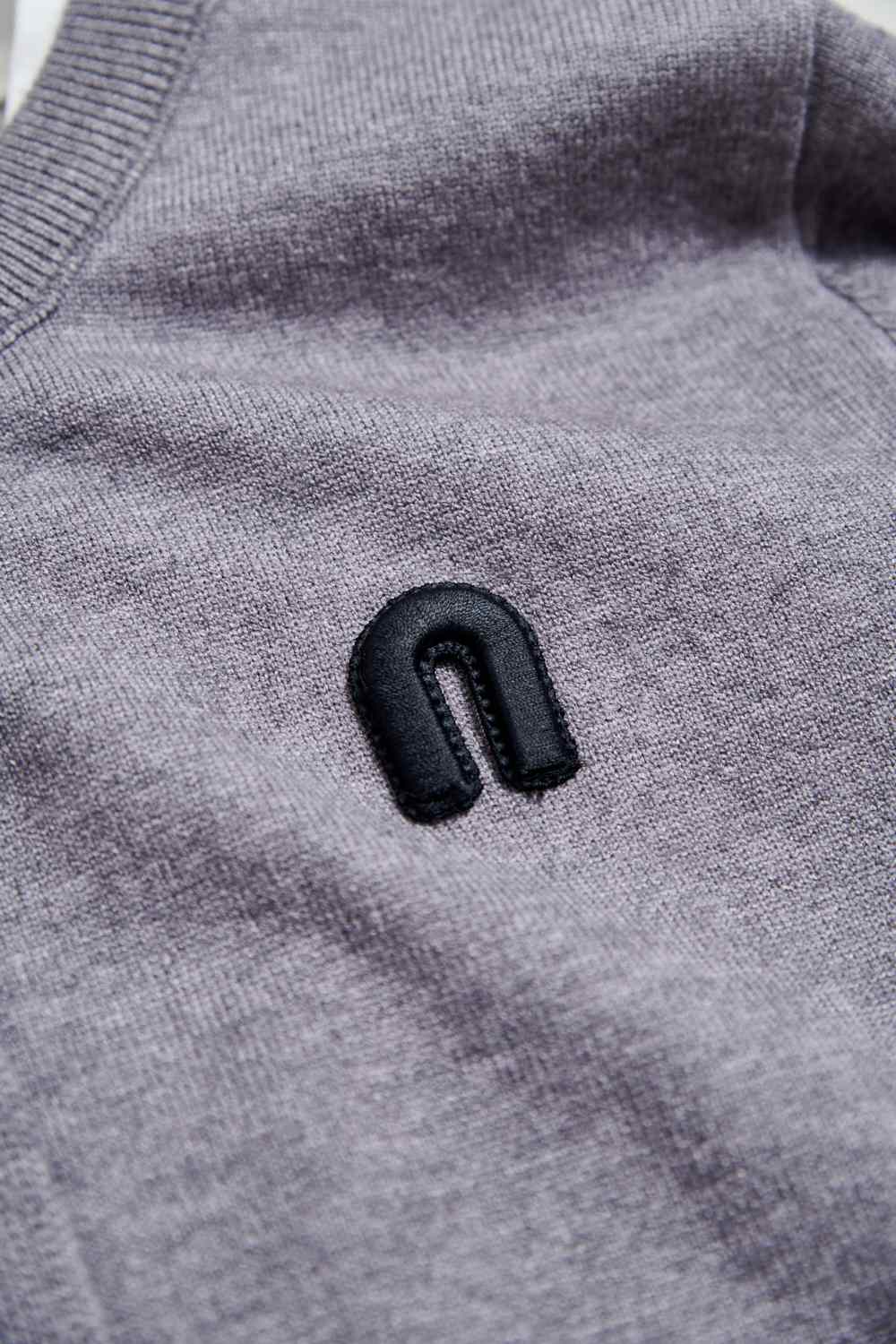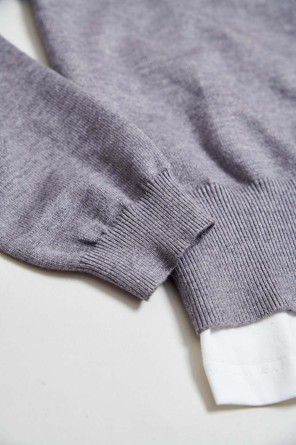 灰色空間假兩件針織上衣 - 沉穩霧灰, 36