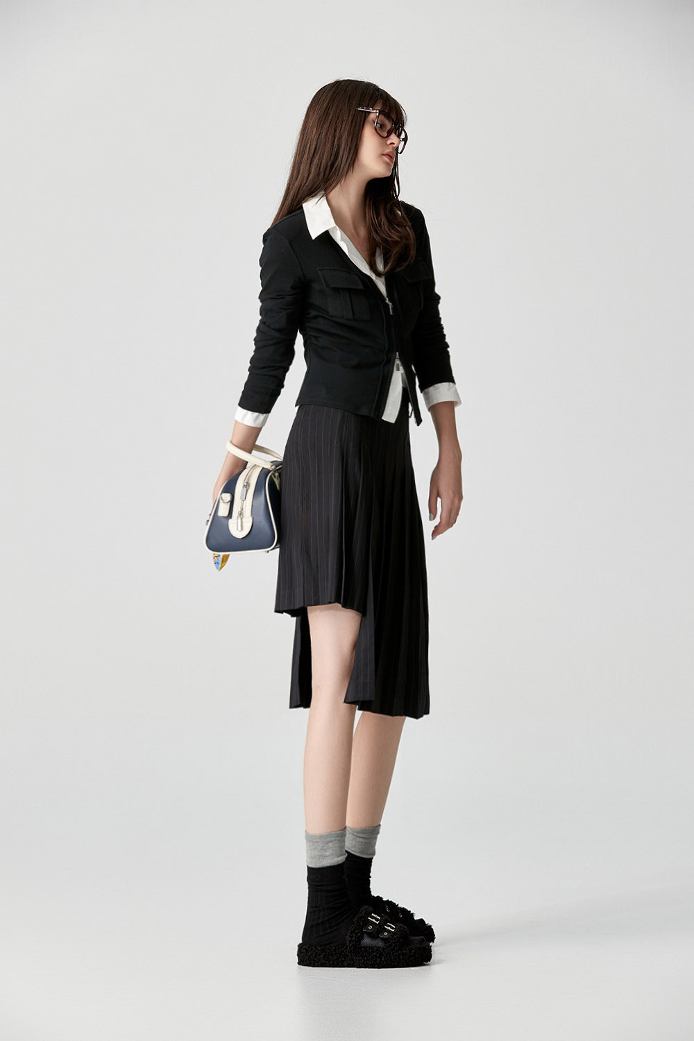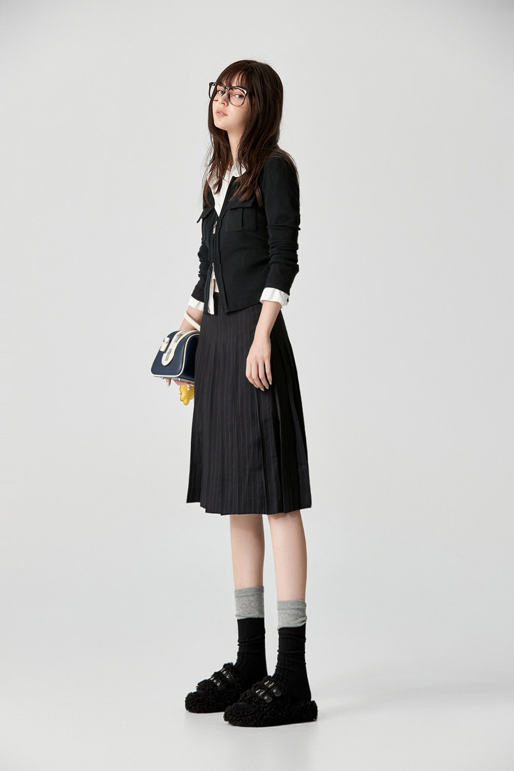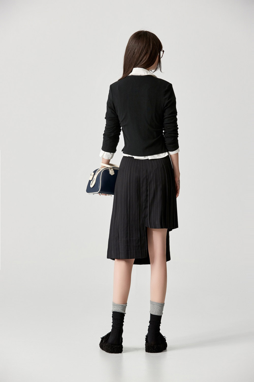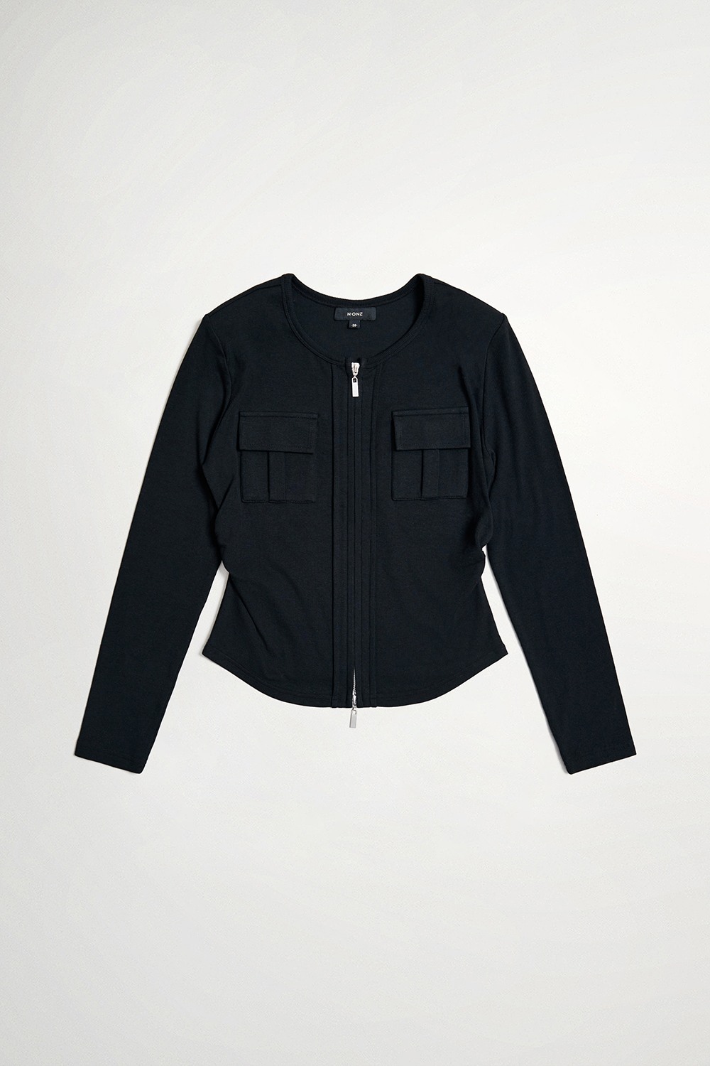 永恆經典修身墊肩針織外套 - 神祕純黑, 38