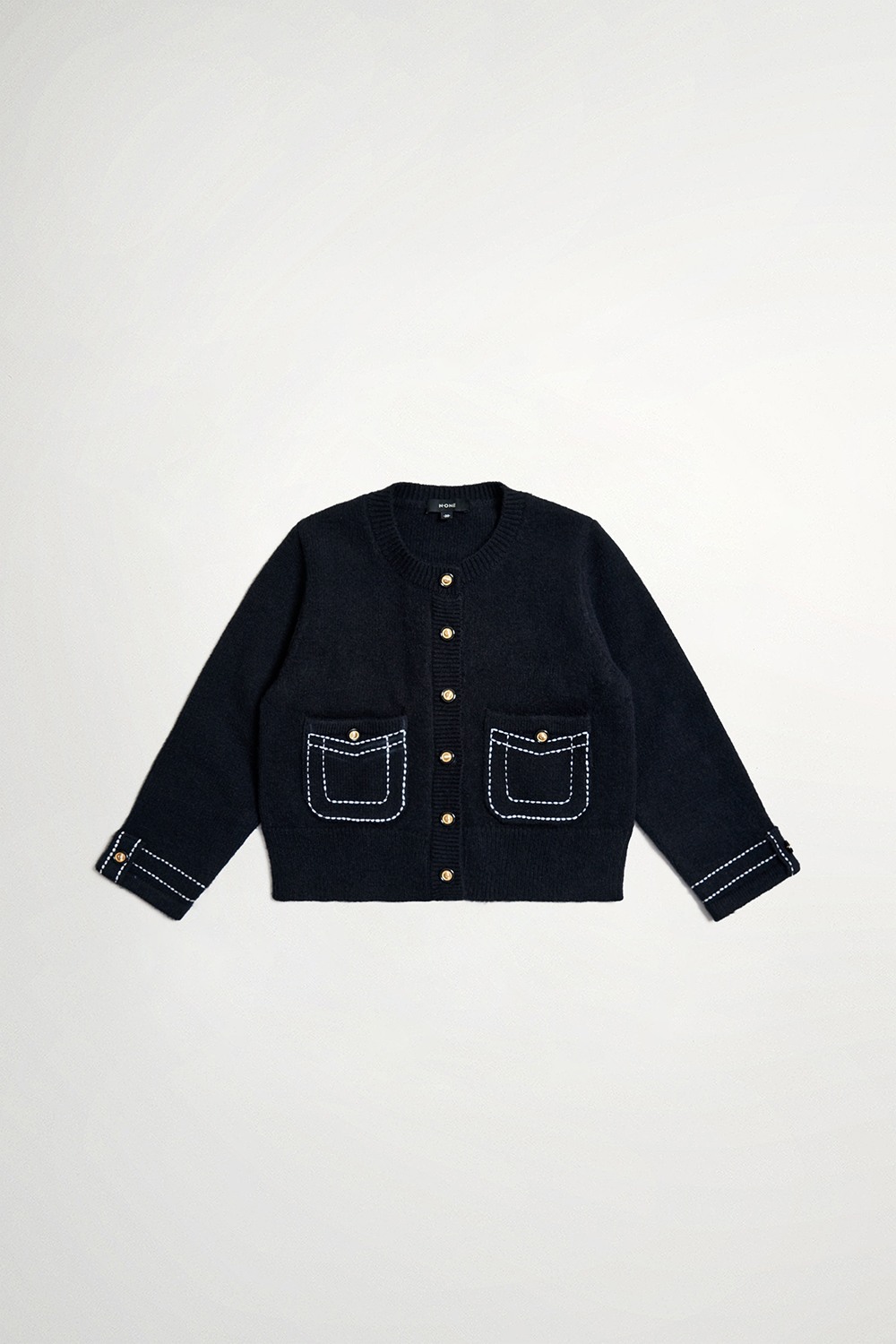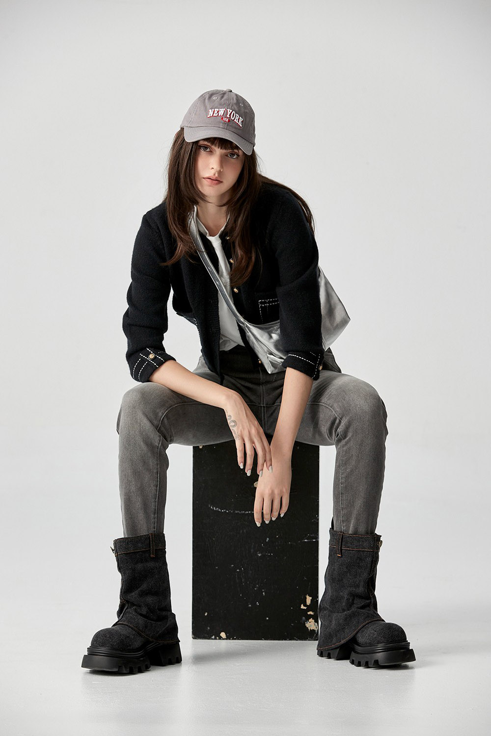 柔暖慵懶配色跳線針織外套 - 神祕純黑, 38