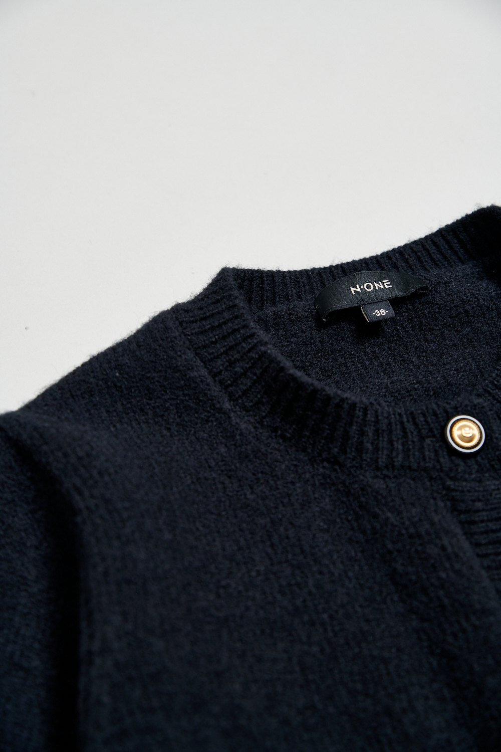 柔暖慵懶配色跳線針織外套 - 神祕純黑, 36