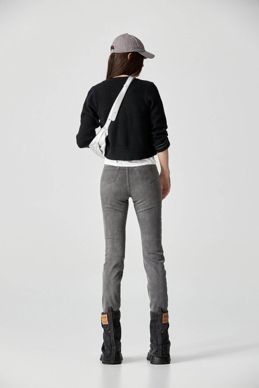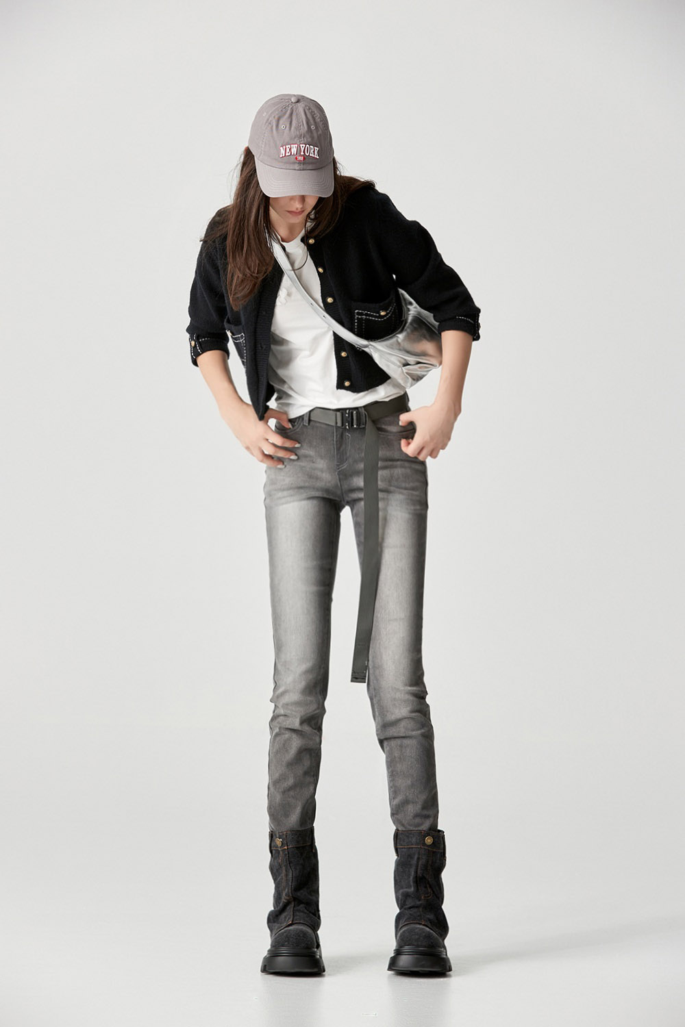 光影交疊洗色合身牛仔褲 - 沉穩霧灰, 40