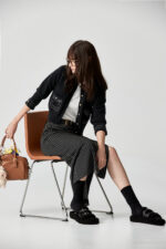 季遊美率拉鍊開岔條紋中長裙 - 神祕純黑, 40