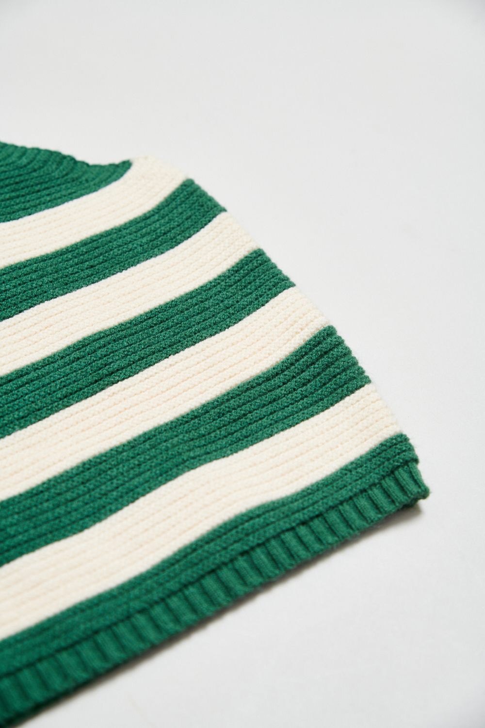 碧波輕漾V領條紋針織背心 - 霧柔墨綠, 36