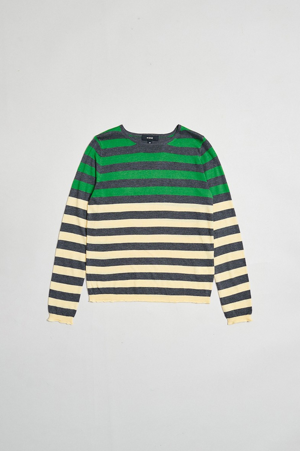 碧綠微光配條針織上衣 - 金闕黄沉沉, 38