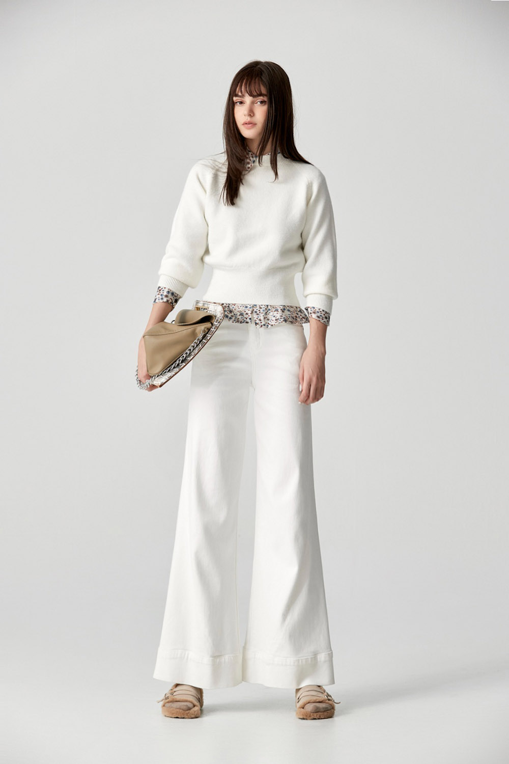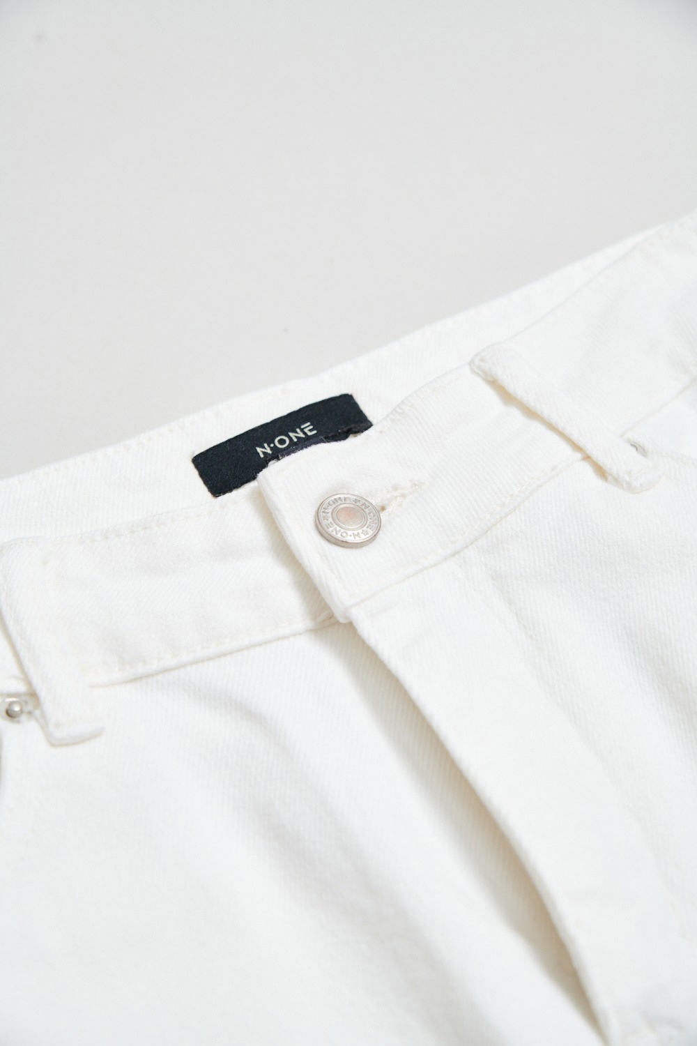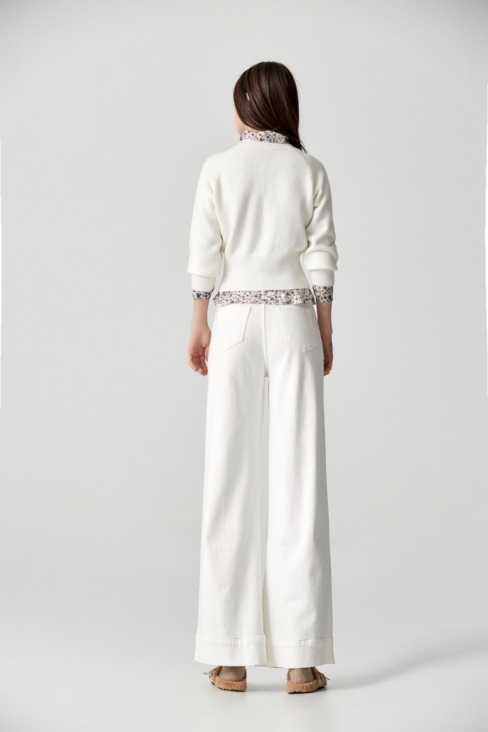 潔白無瑕斜紋反摺牛仔寬褲 - 無瑕純白, 36