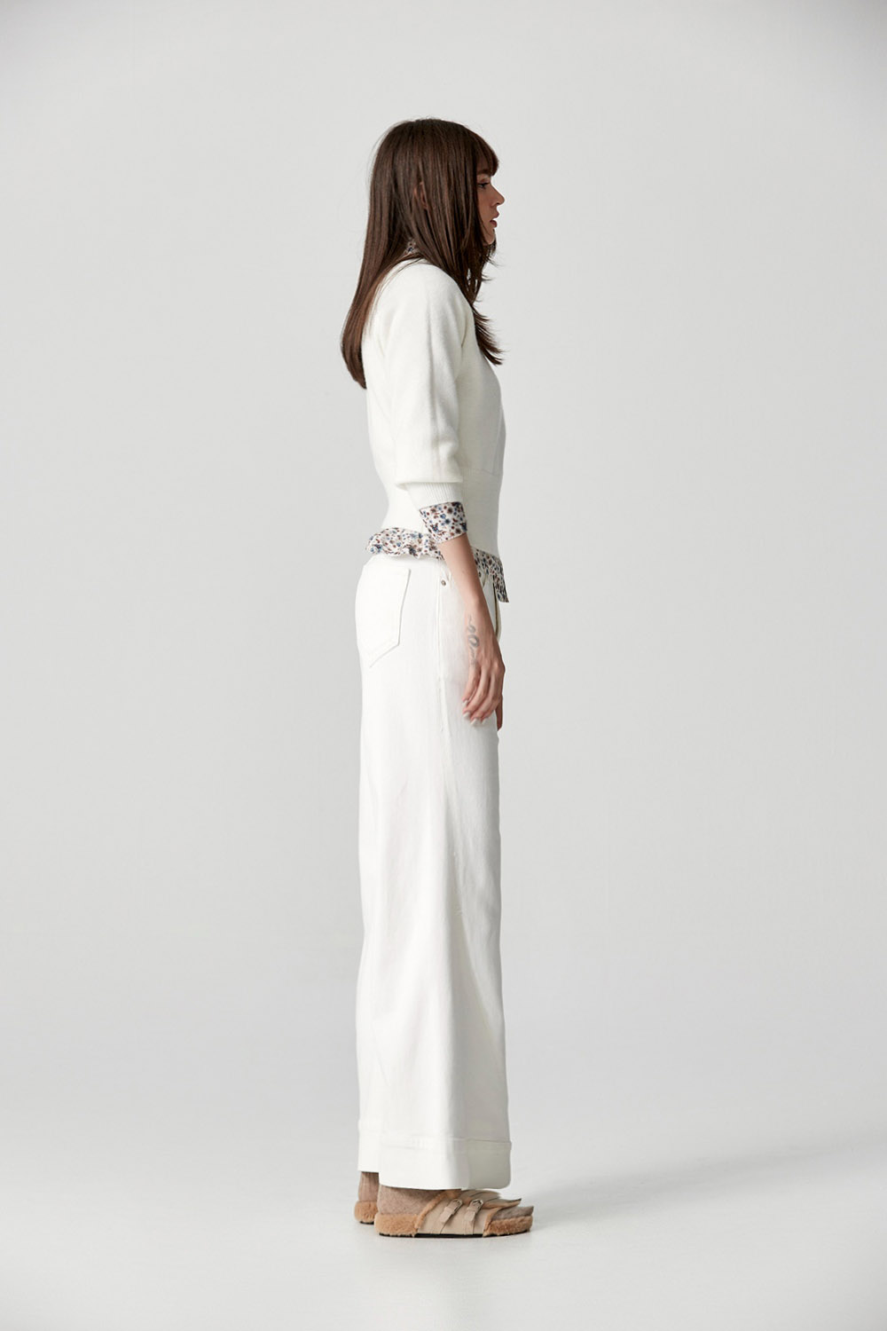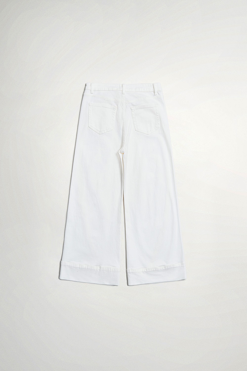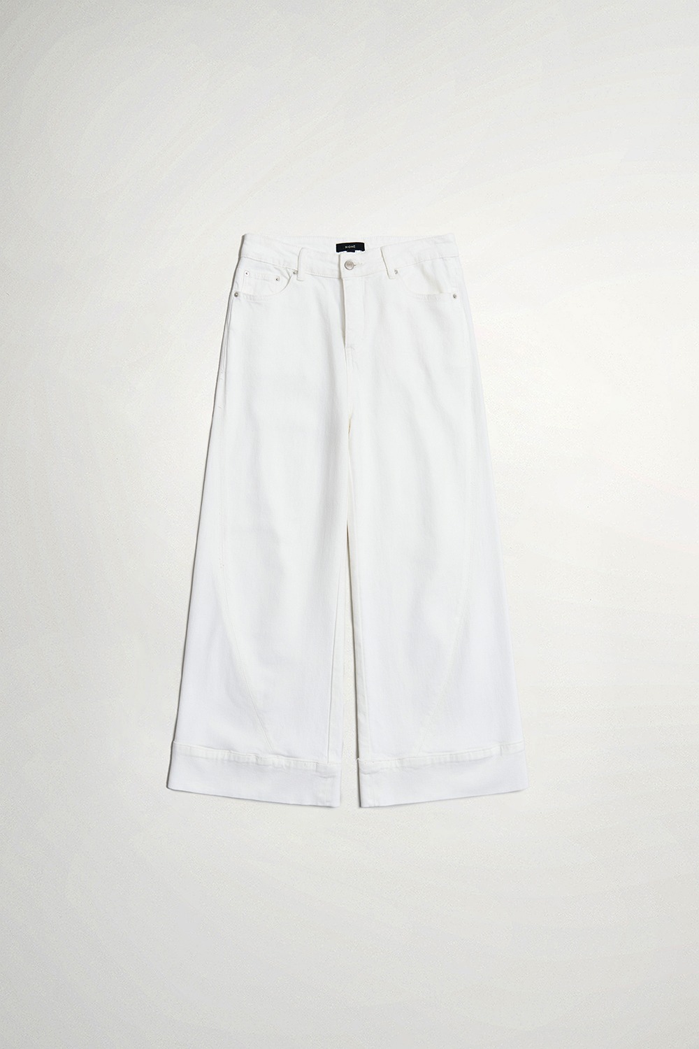 潔白無瑕斜紋反摺牛仔寬褲 - 無瑕純白, 38