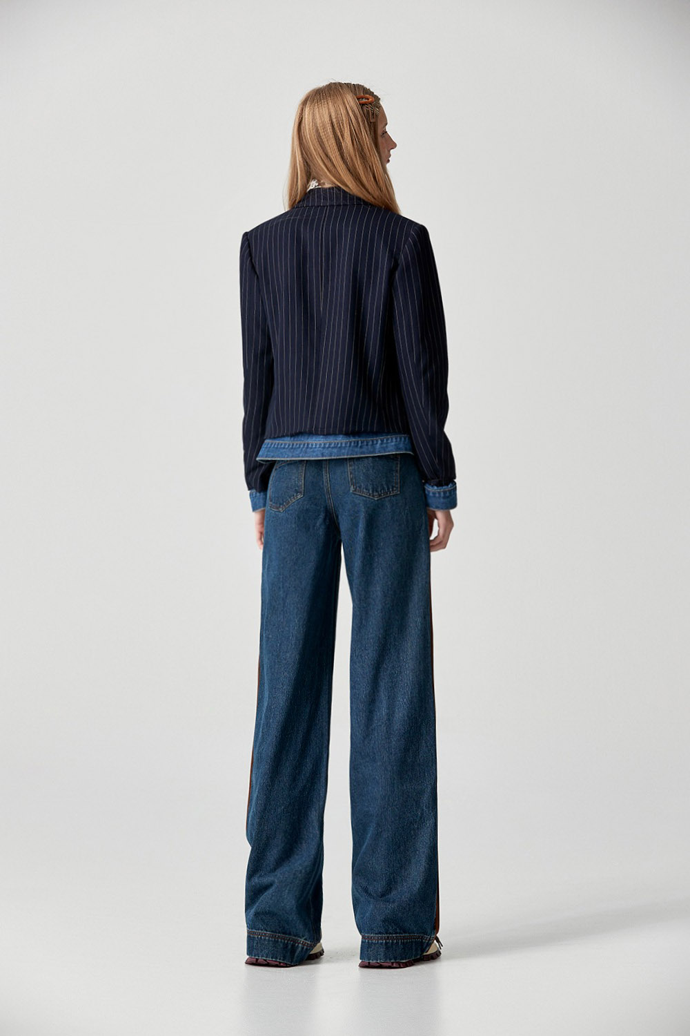 深藍典雅配色包邊牛仔褲 - 深邃藏藍, 36