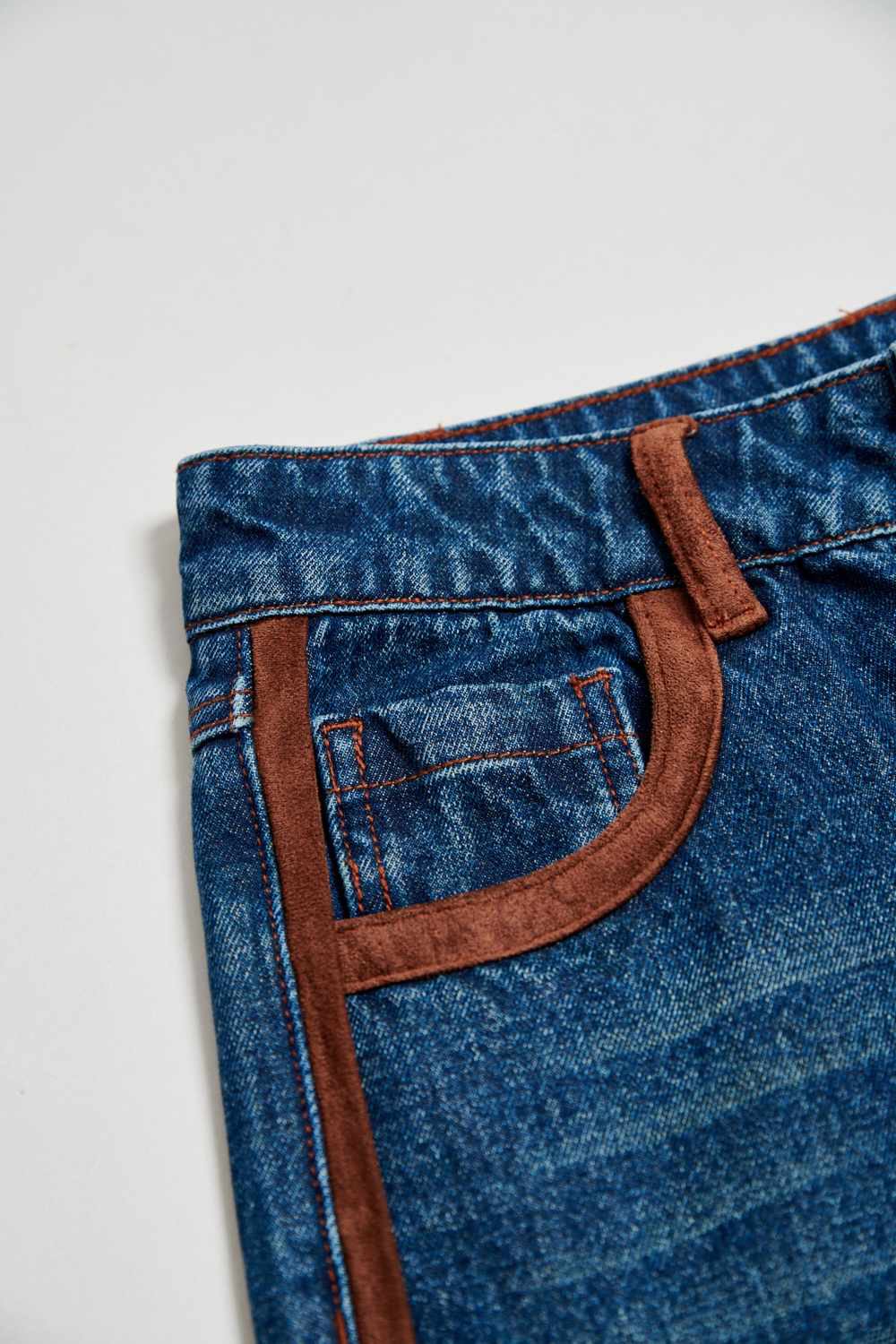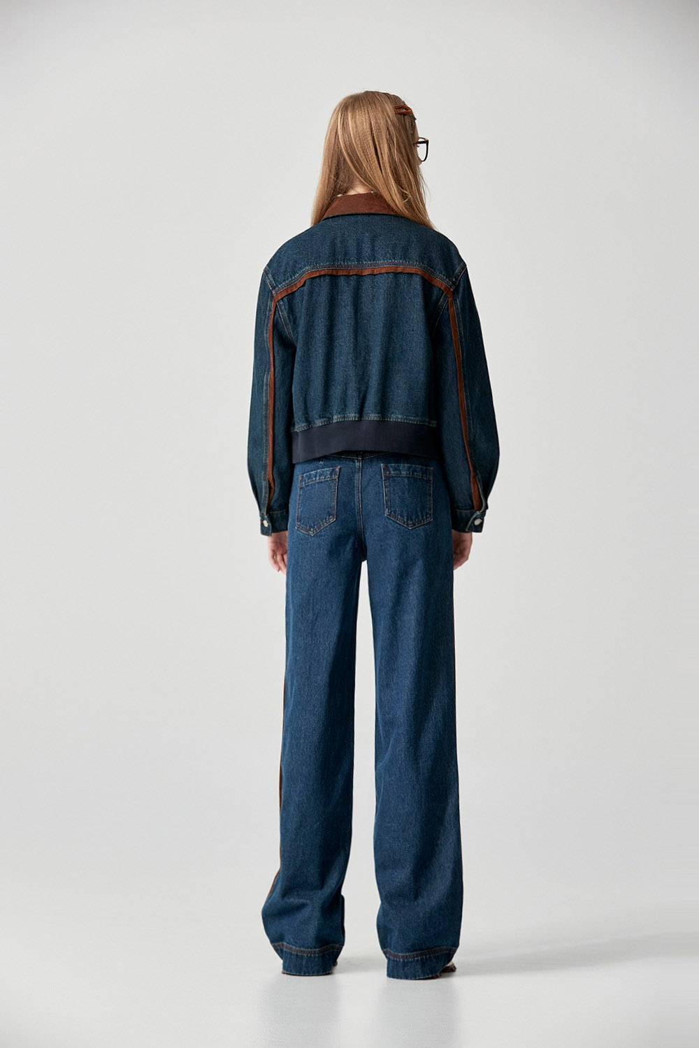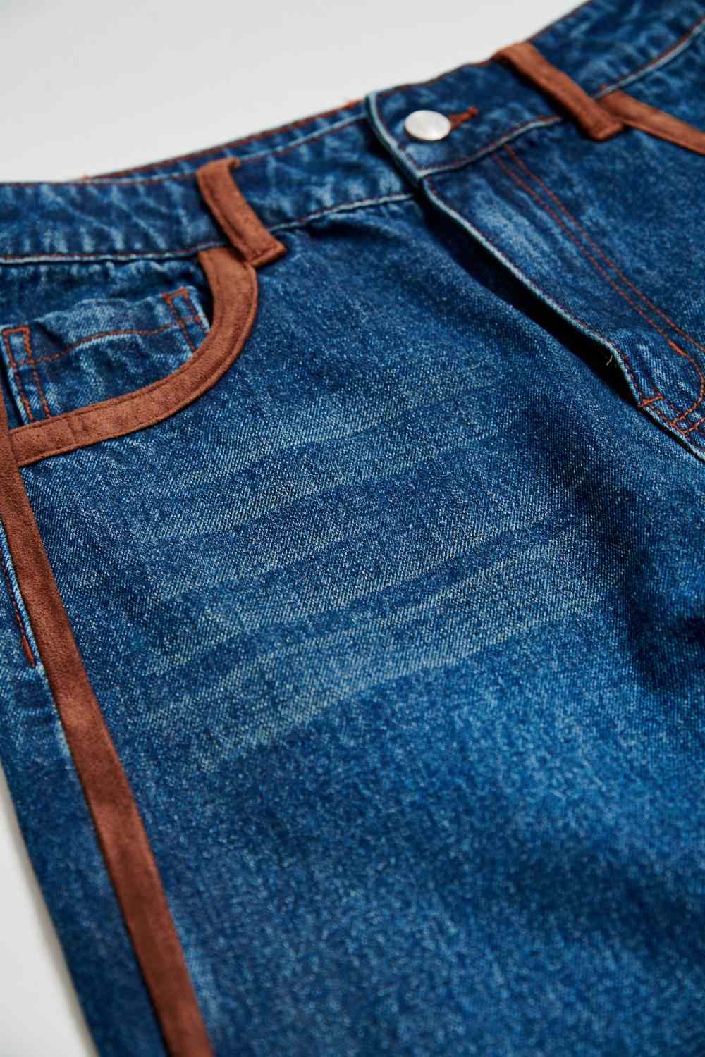 深藍典雅配色包邊牛仔褲 - 深邃藏藍, 38