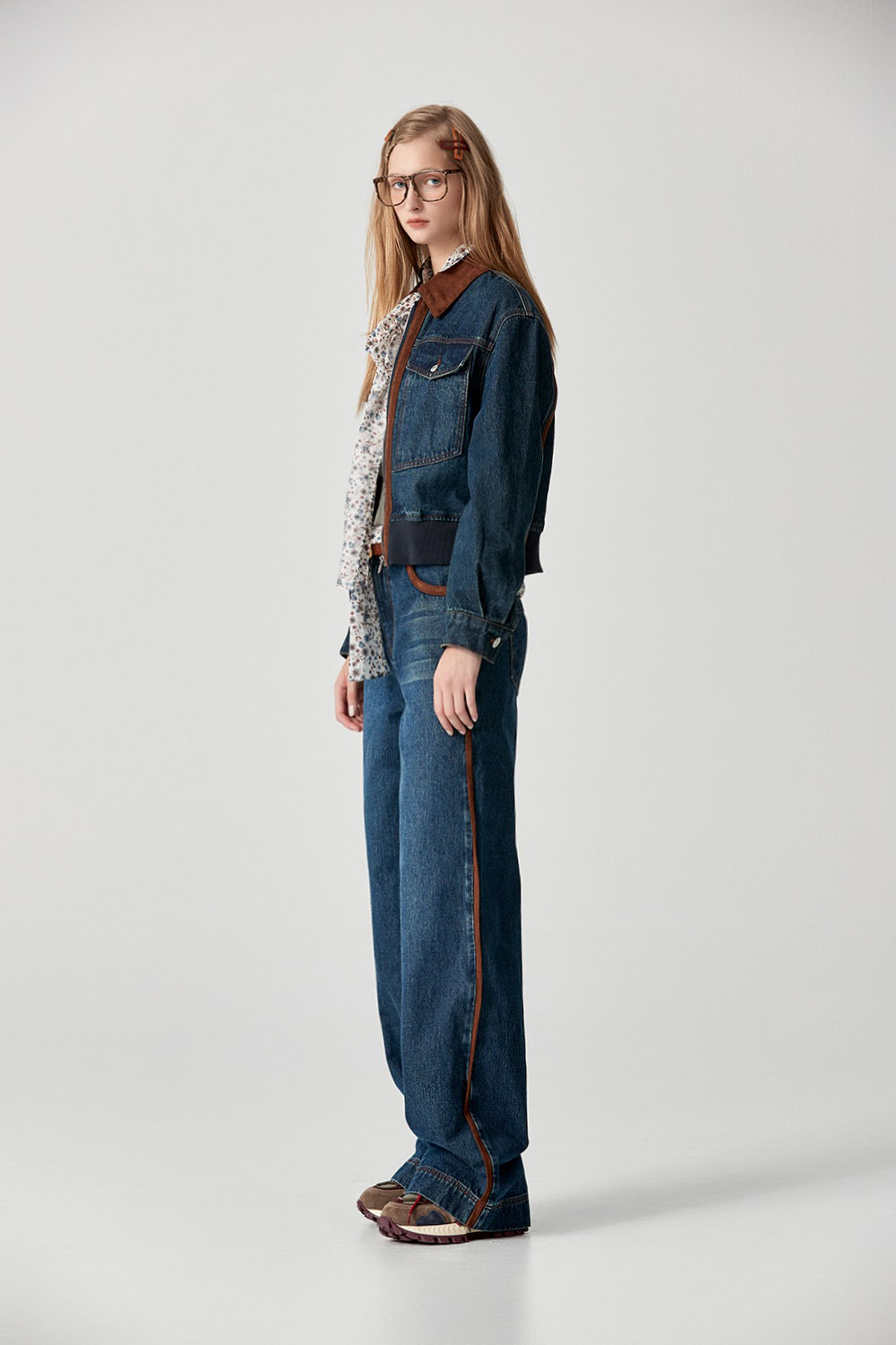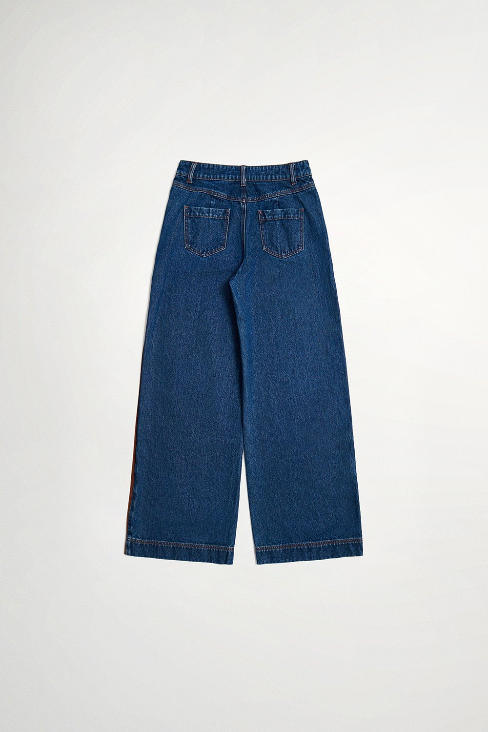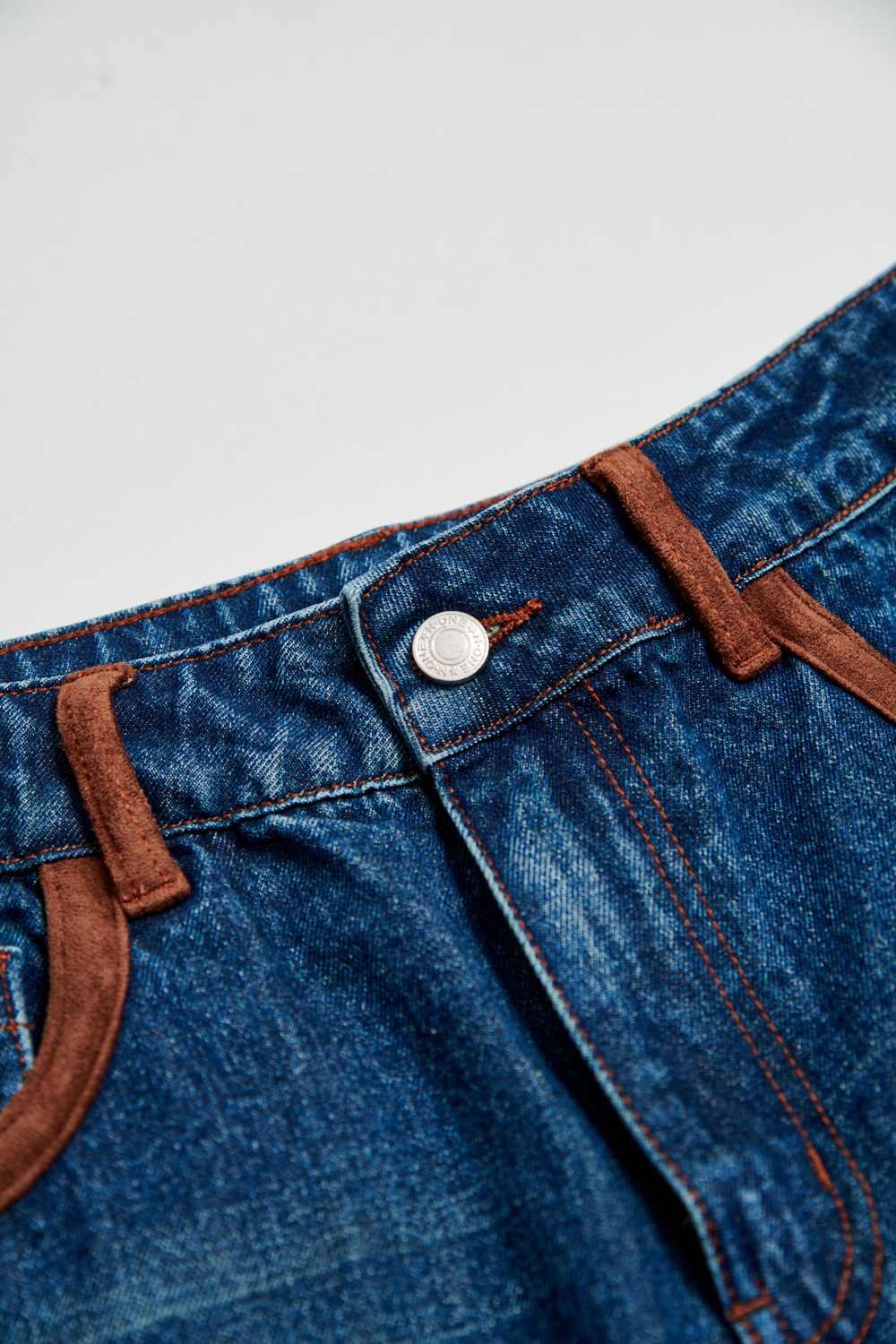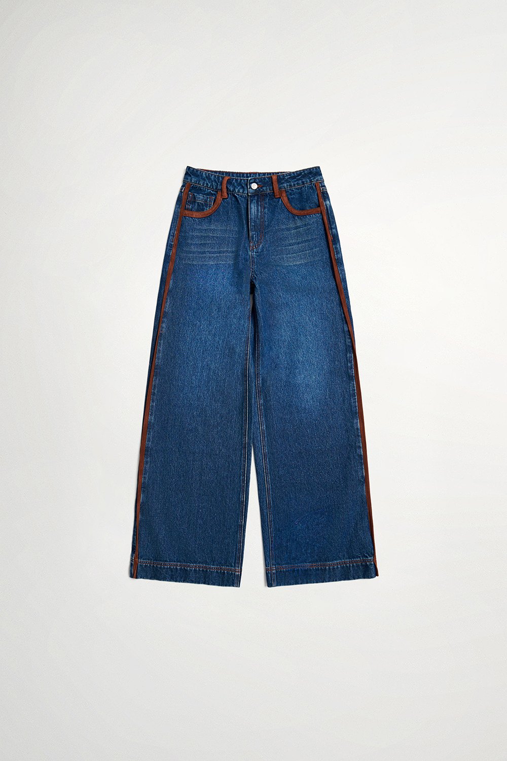 深藍典雅配色包邊牛仔褲 - 深邃藏藍, 38