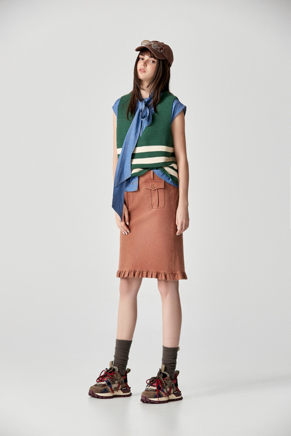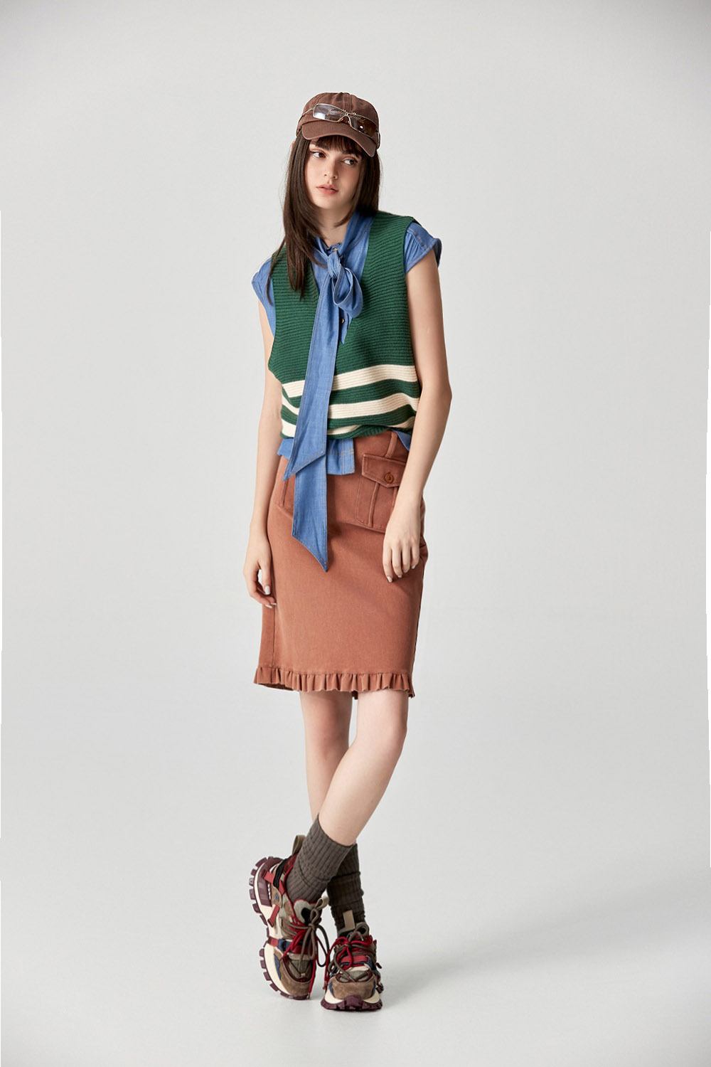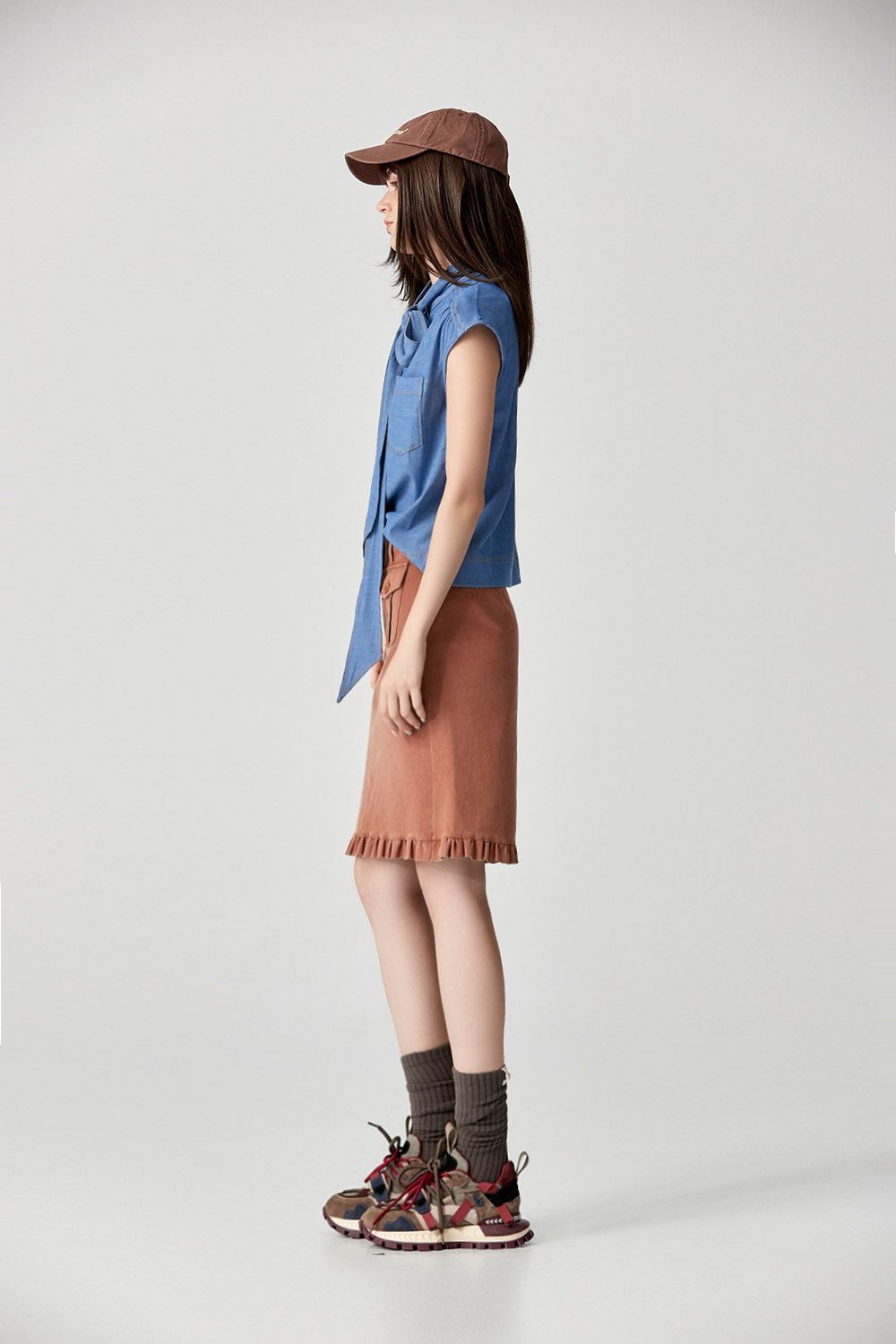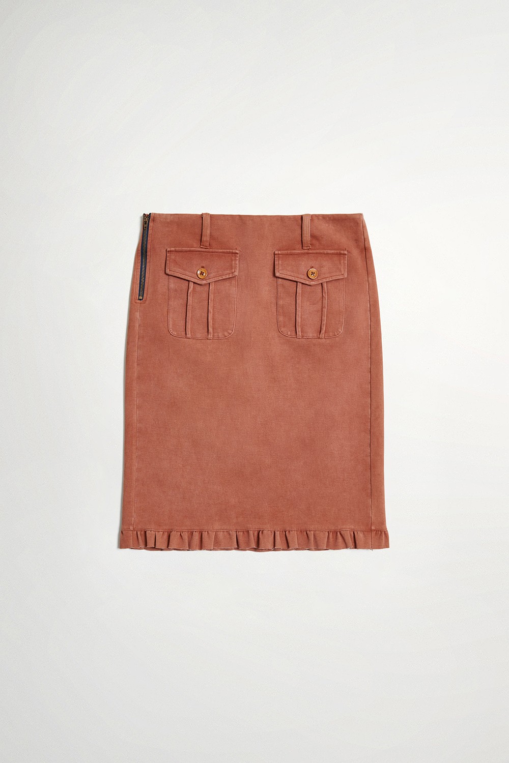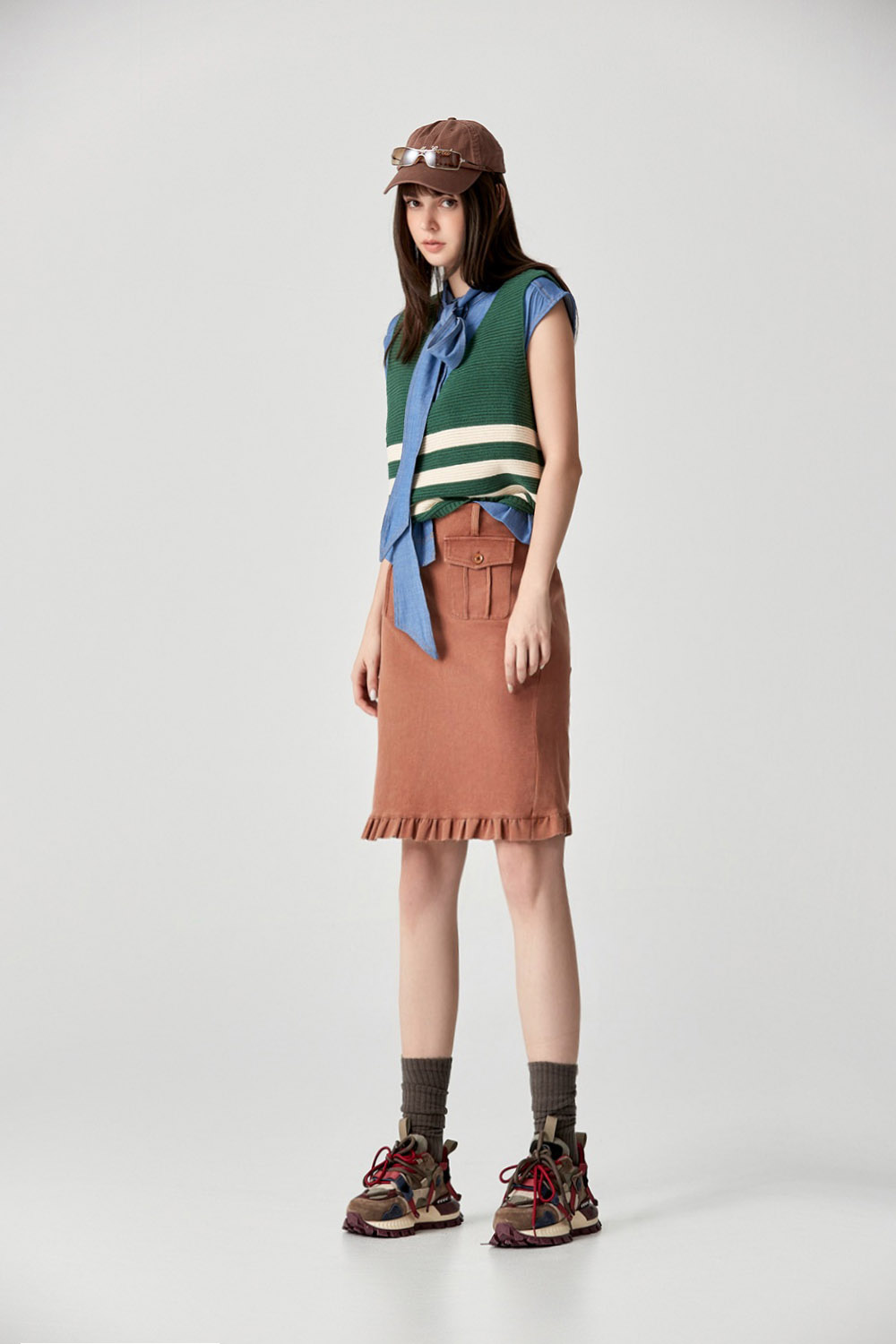 復古摩登不收邊荷葉邊裙 - 可可卡其, 38