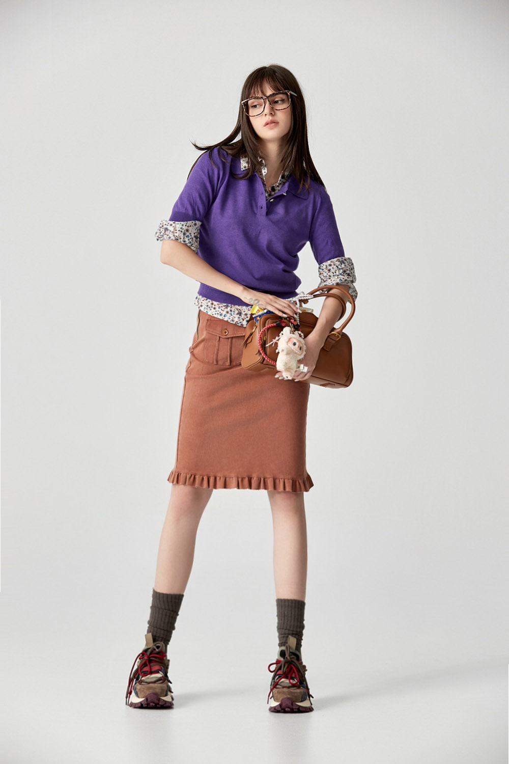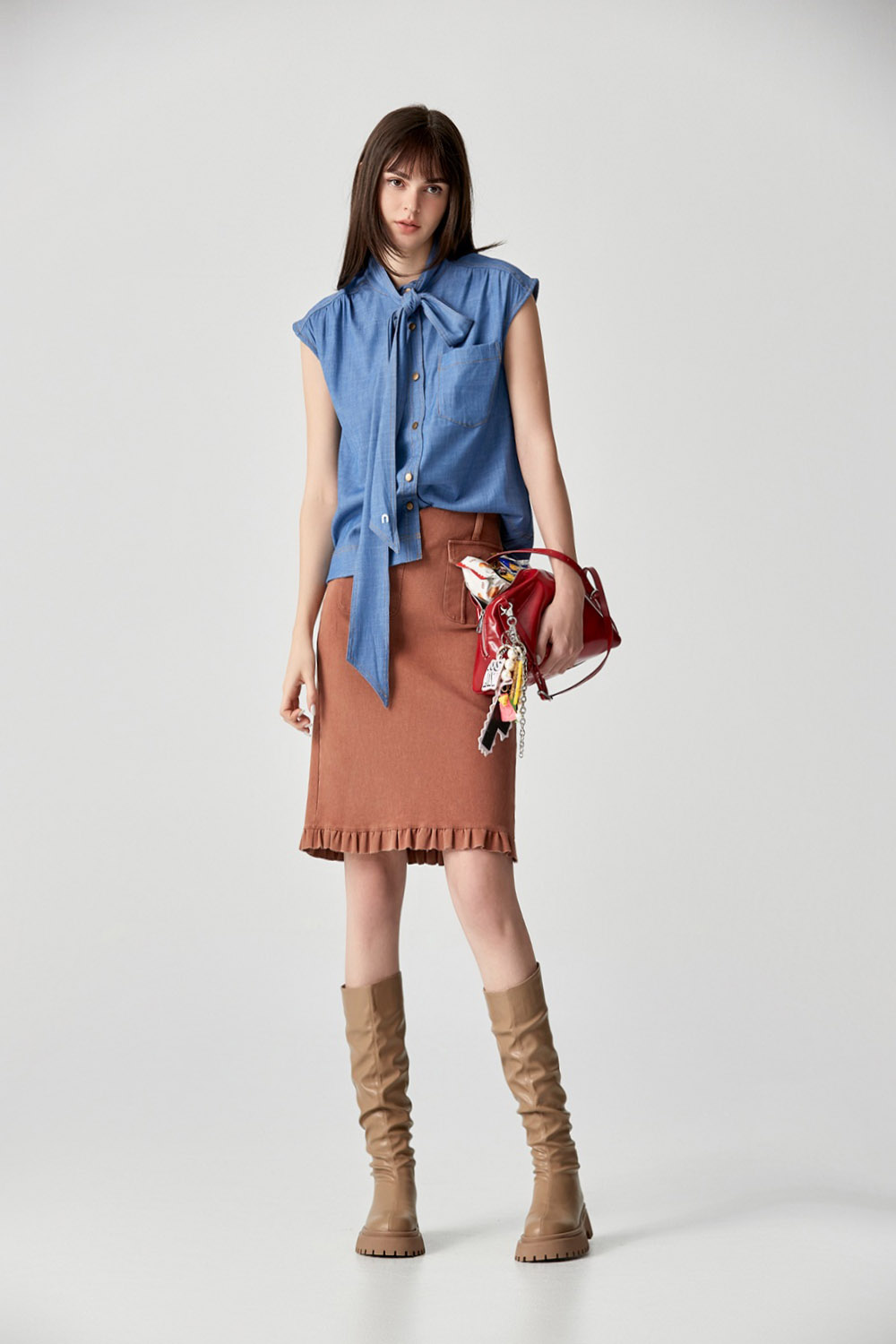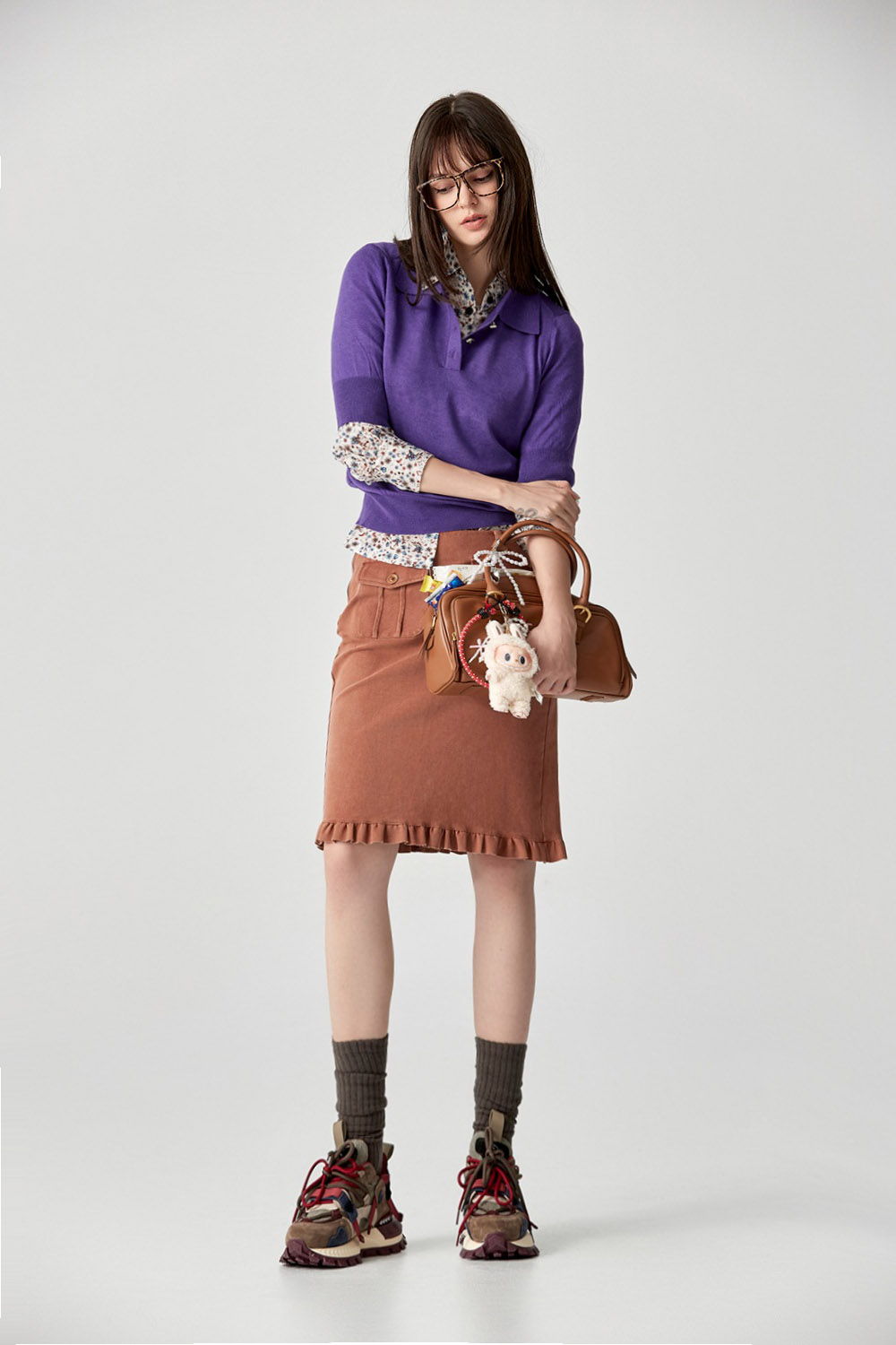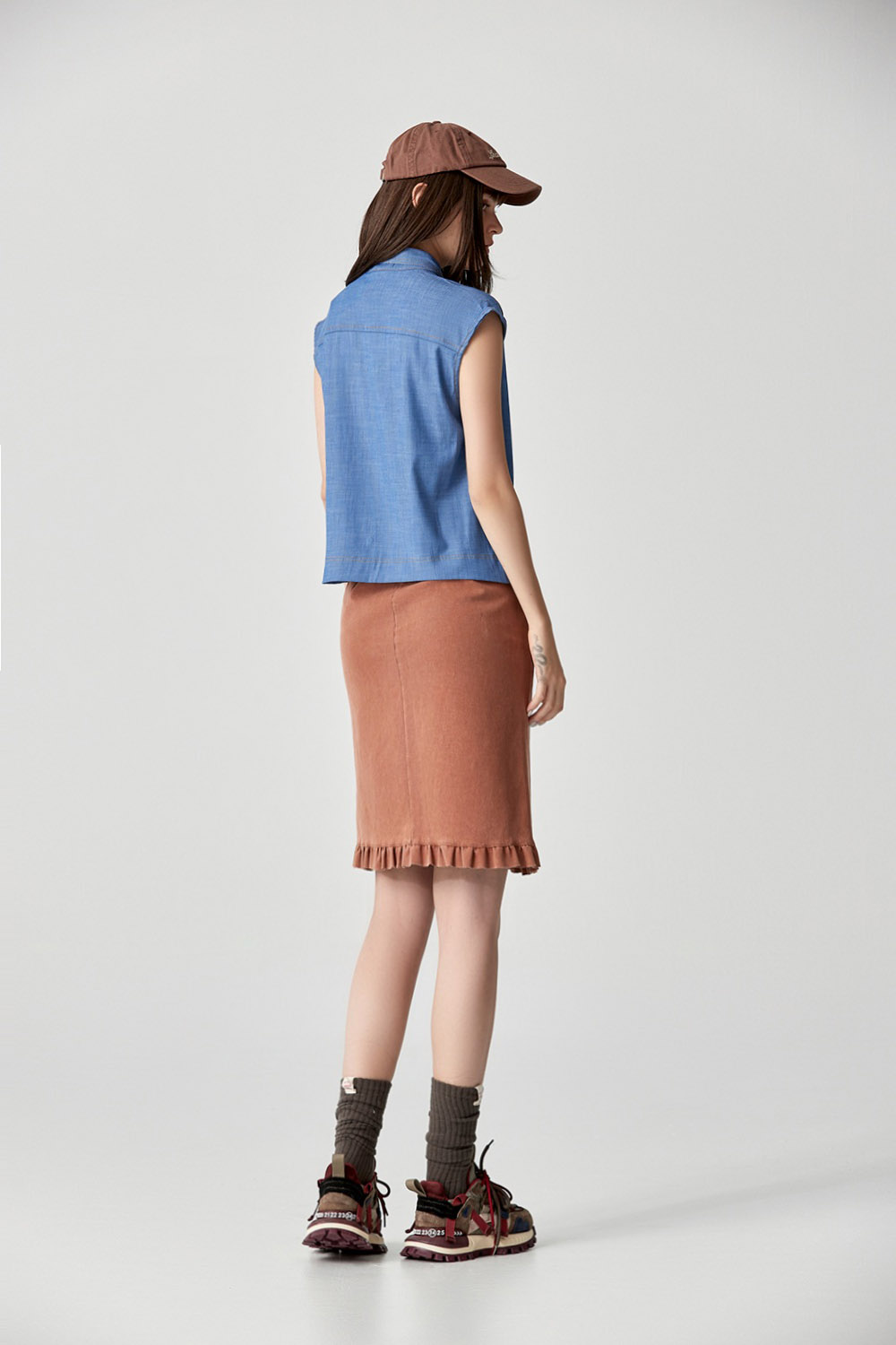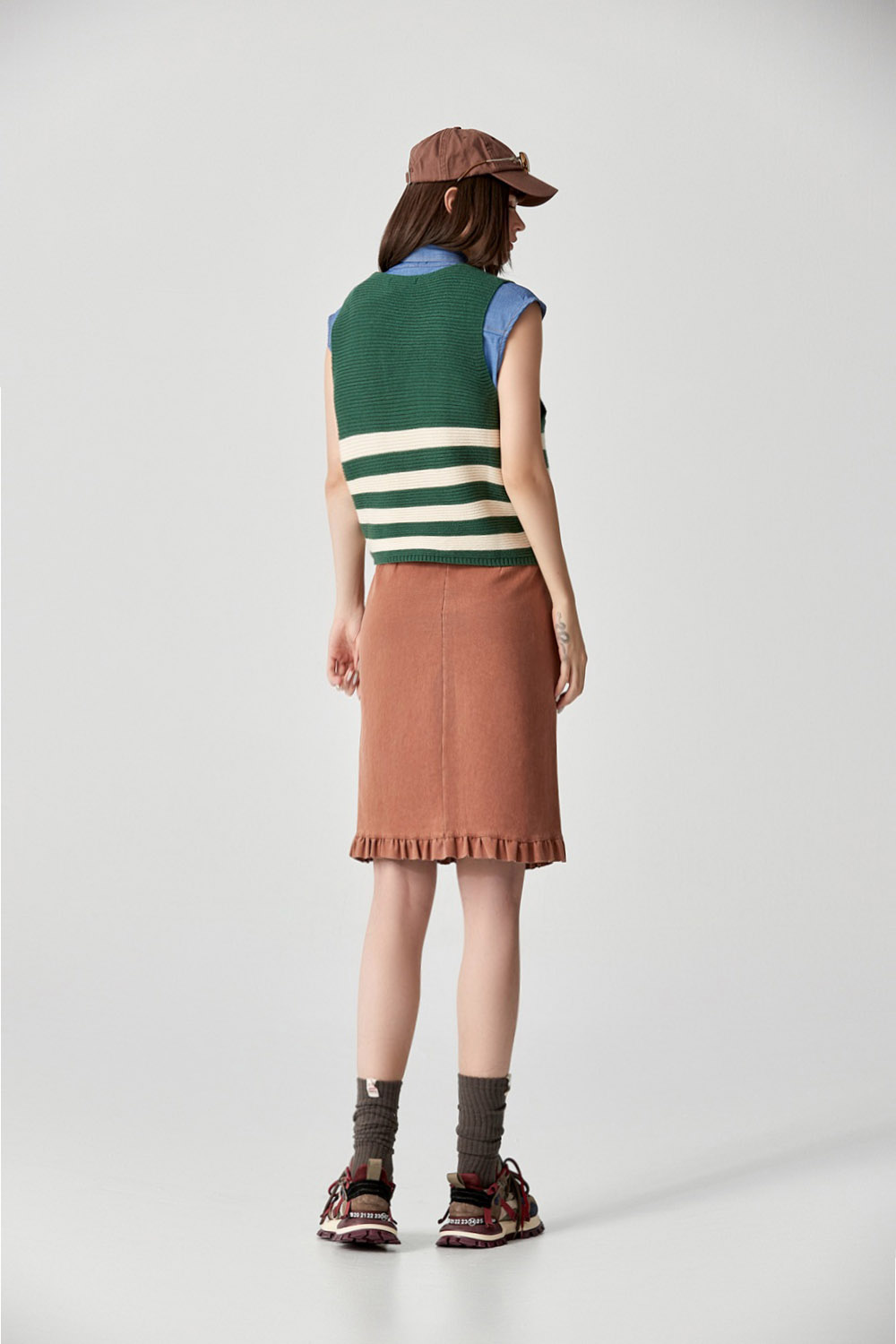 復古摩登不收邊荷葉邊裙 - 可可卡其, 38