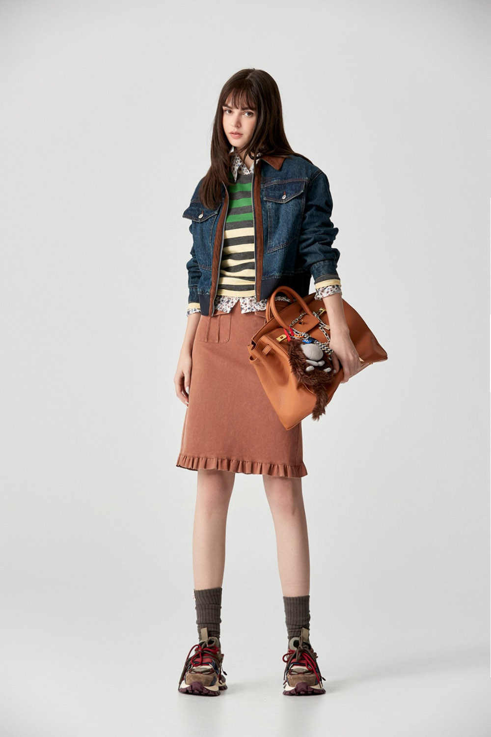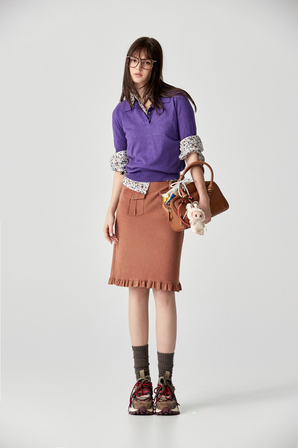 復古摩登不收邊荷葉邊裙 - 可可卡其, 36