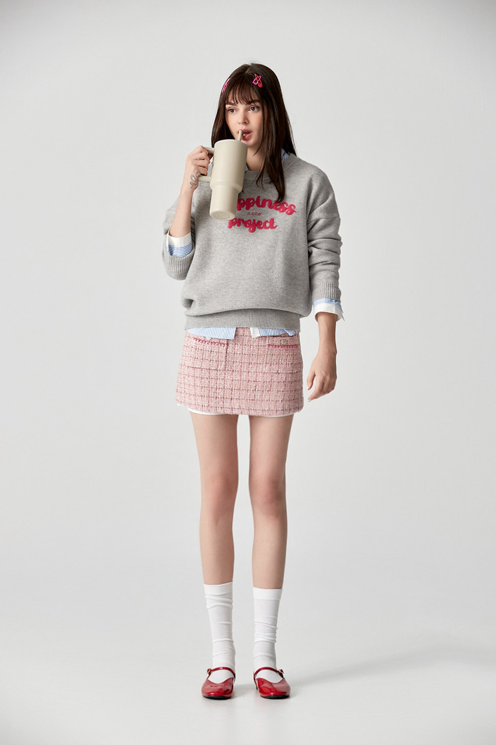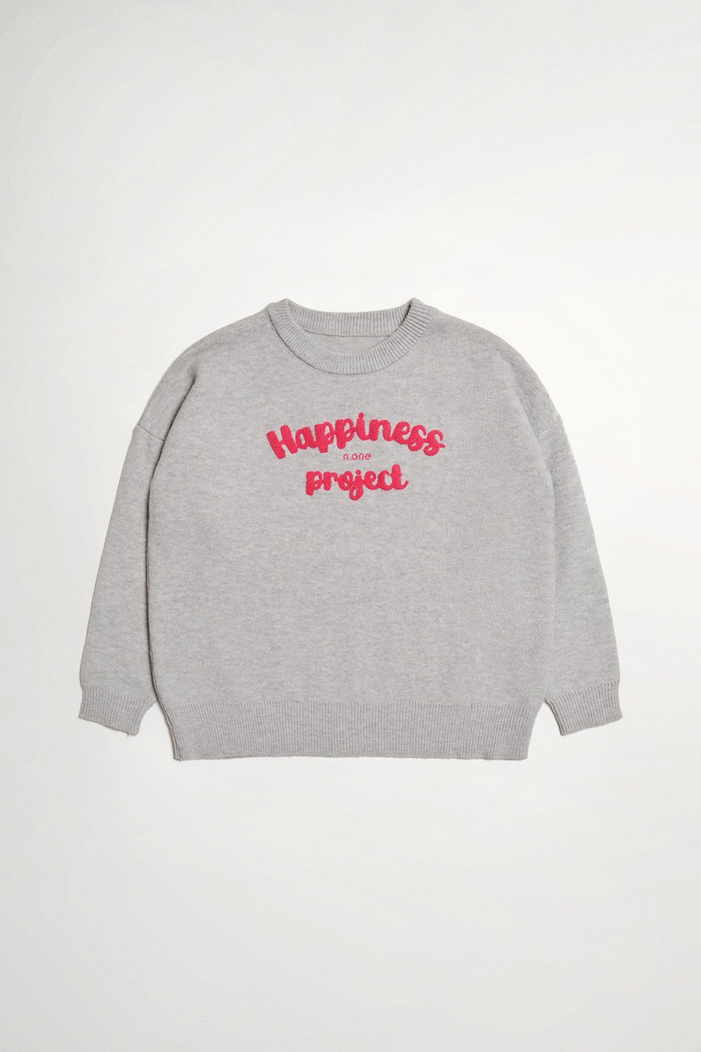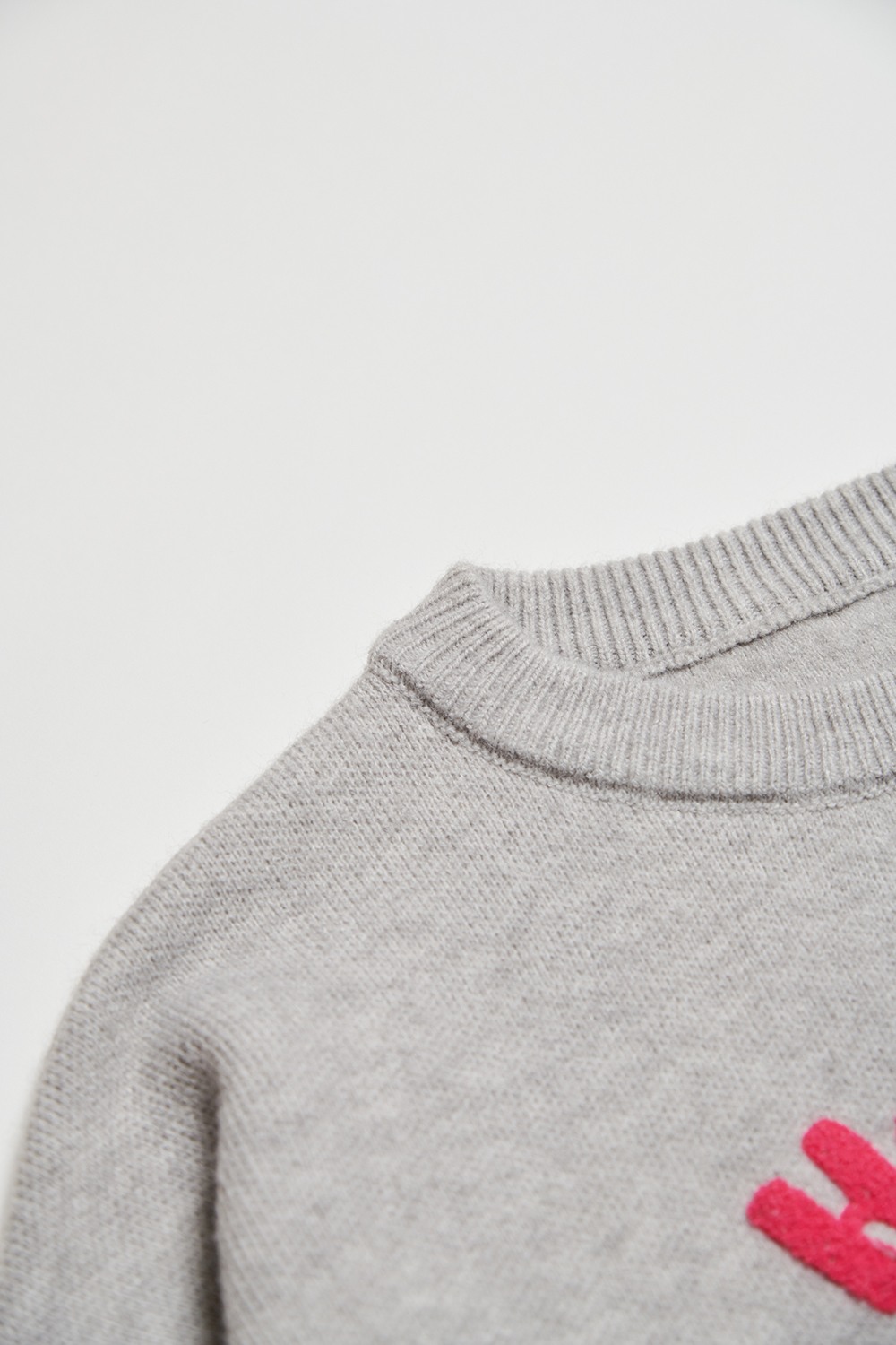 青春活潑跳色繡花針織上衣 - 沉穩霧灰, 36