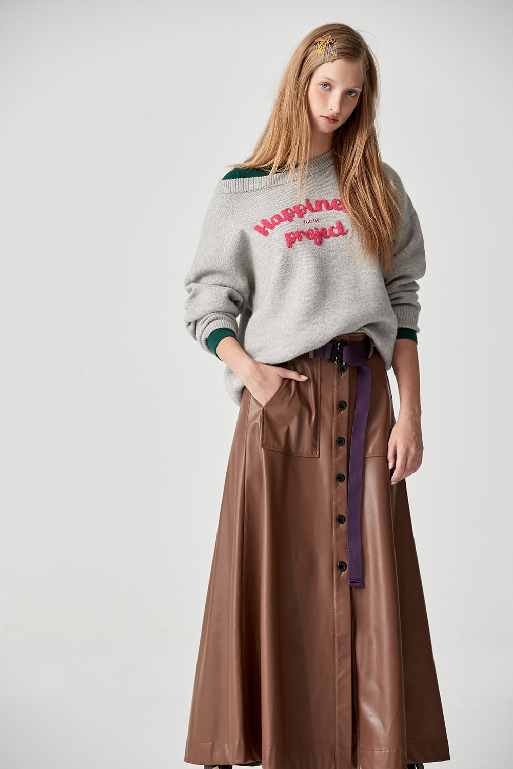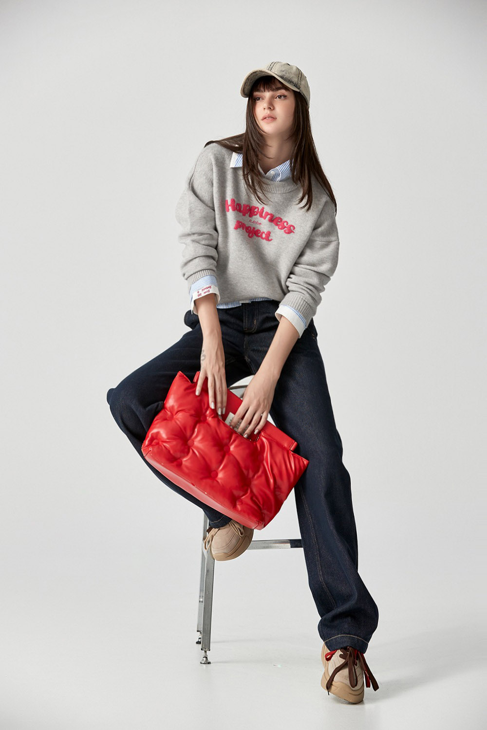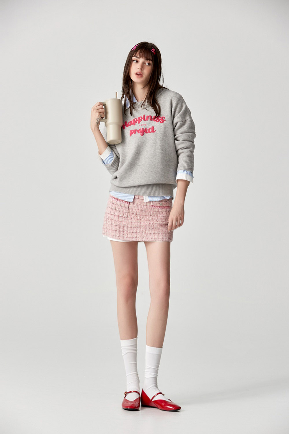 青春活潑跳色繡花針織上衣 - 沉穩霧灰, 36