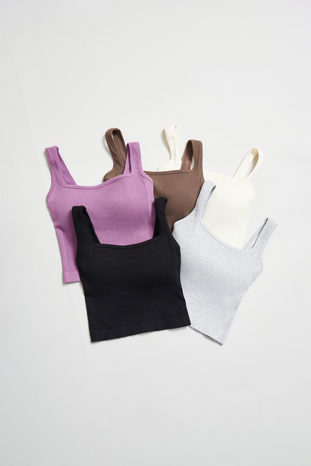 初秋休閒百搭罩杯式背心 ( 黑 / 紫 / 咖 / 灰 / 米 ) - 古樸咖啡, F