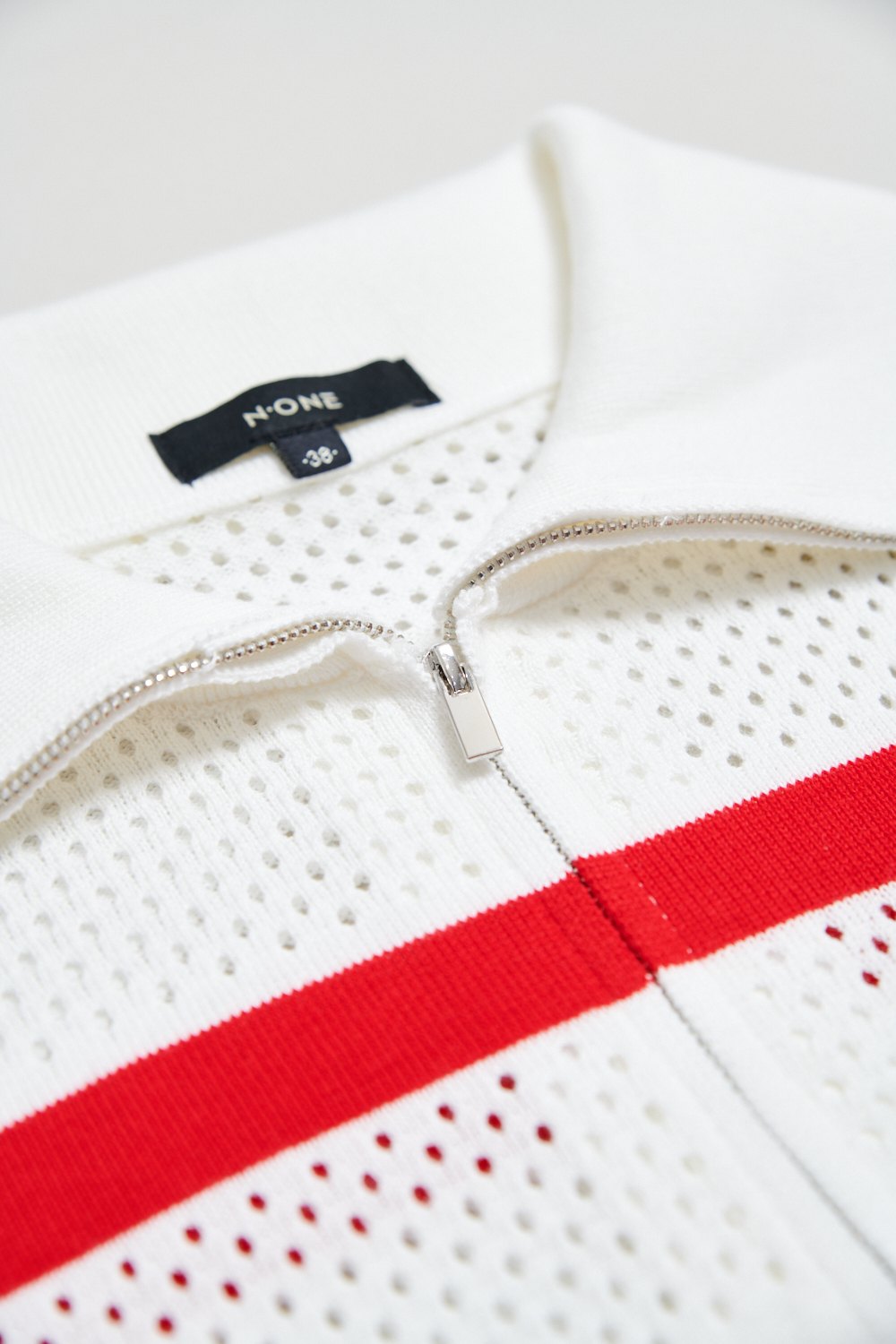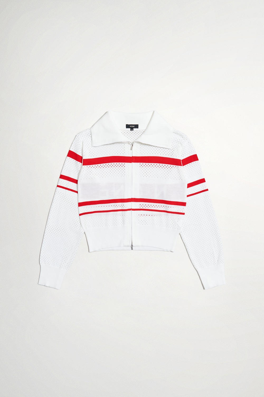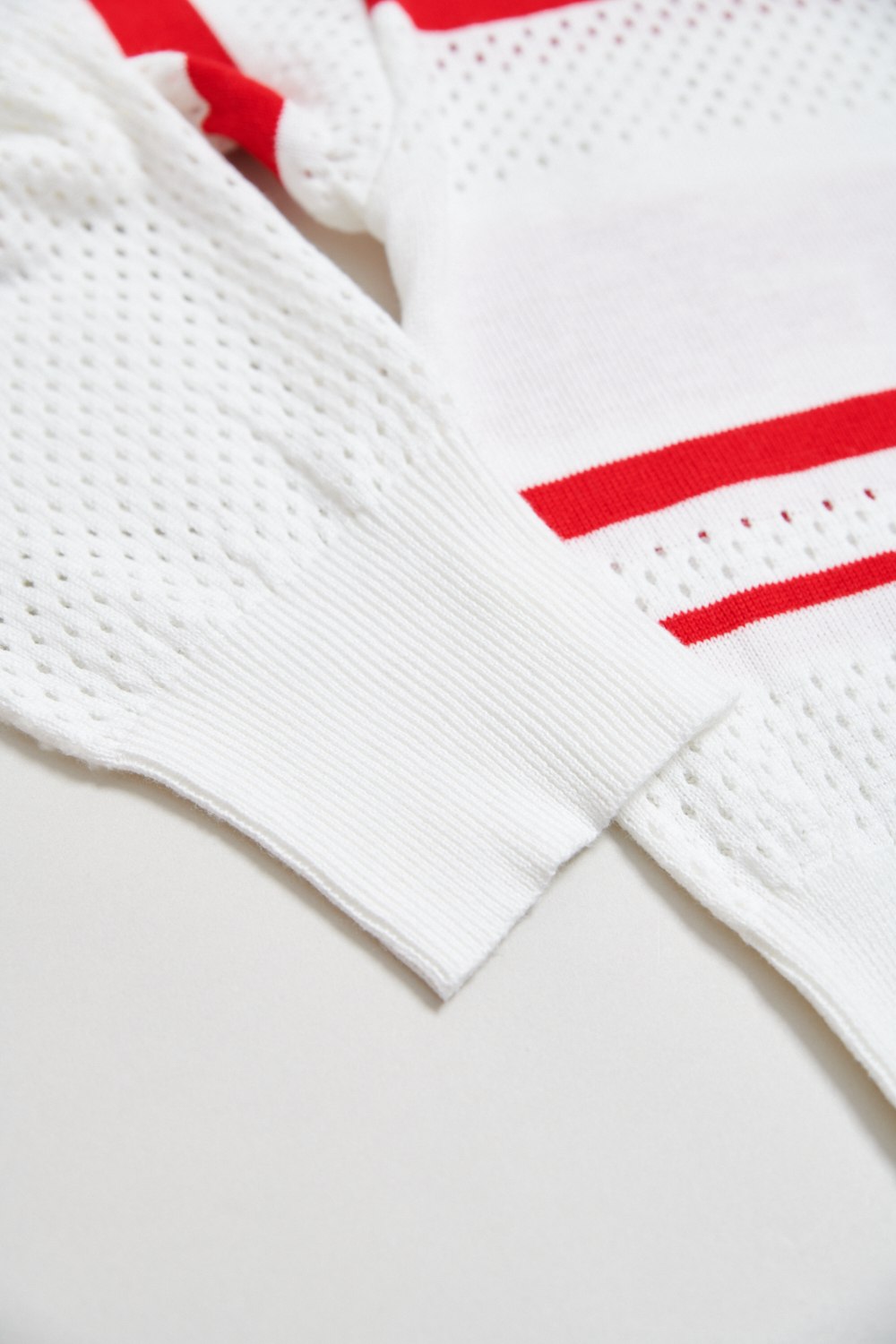 晨曦暖陽翻領條紋針織外套 - 無瑕純白, 40