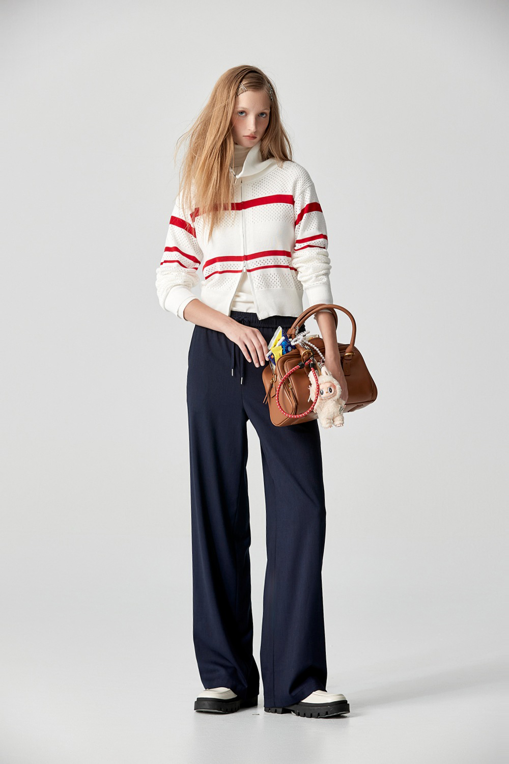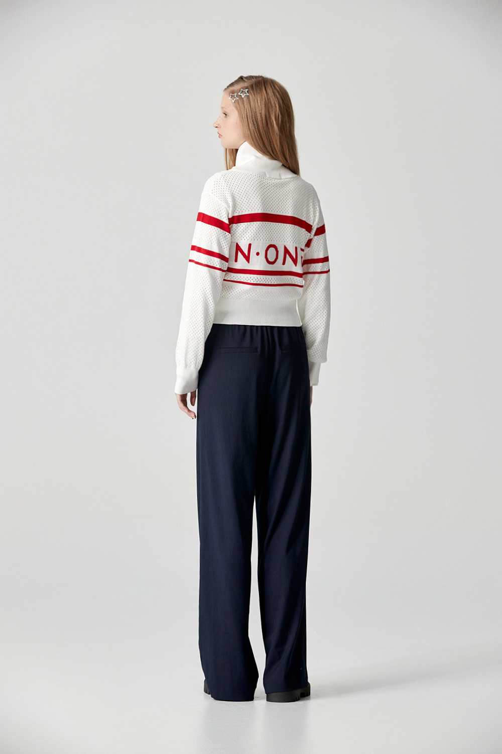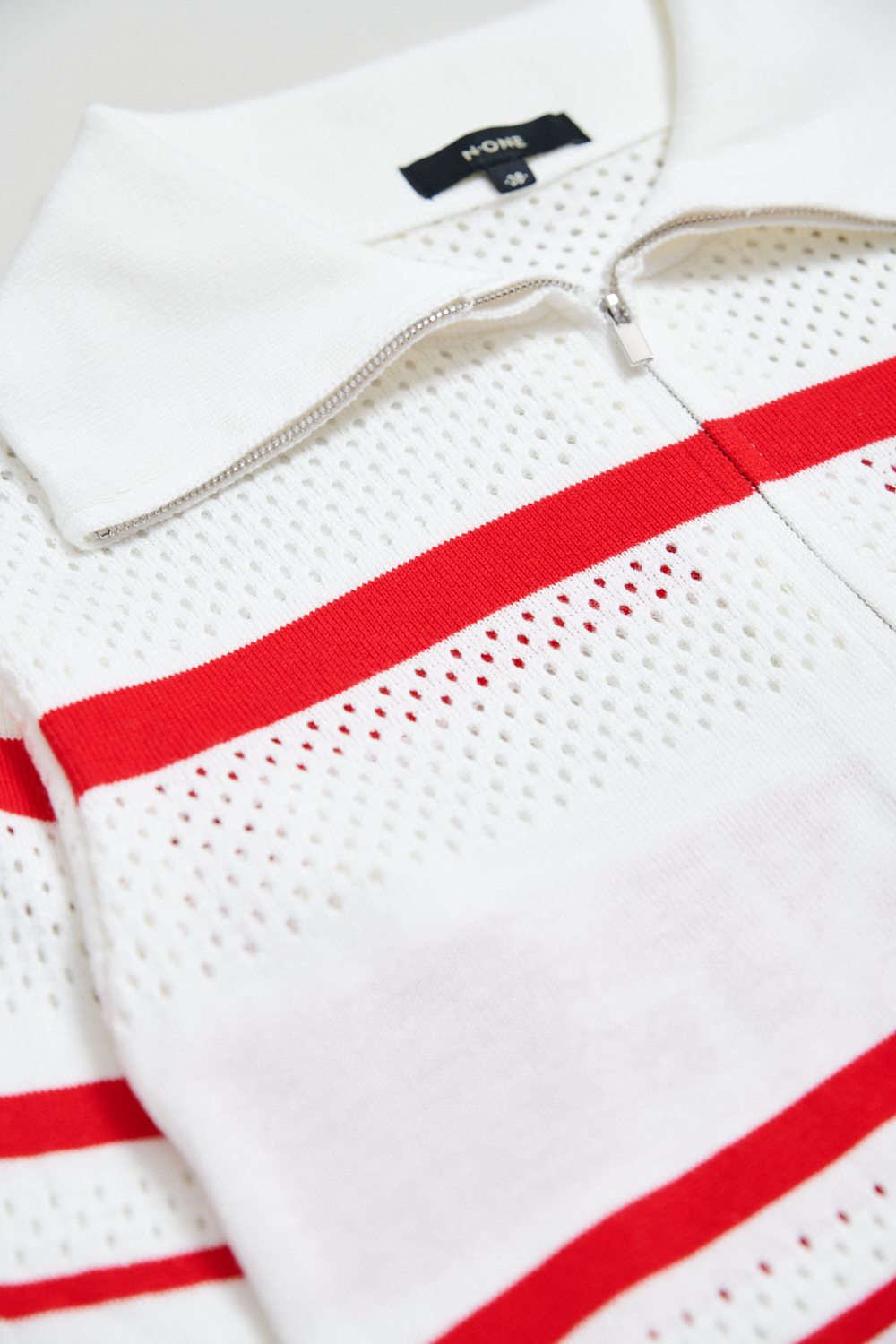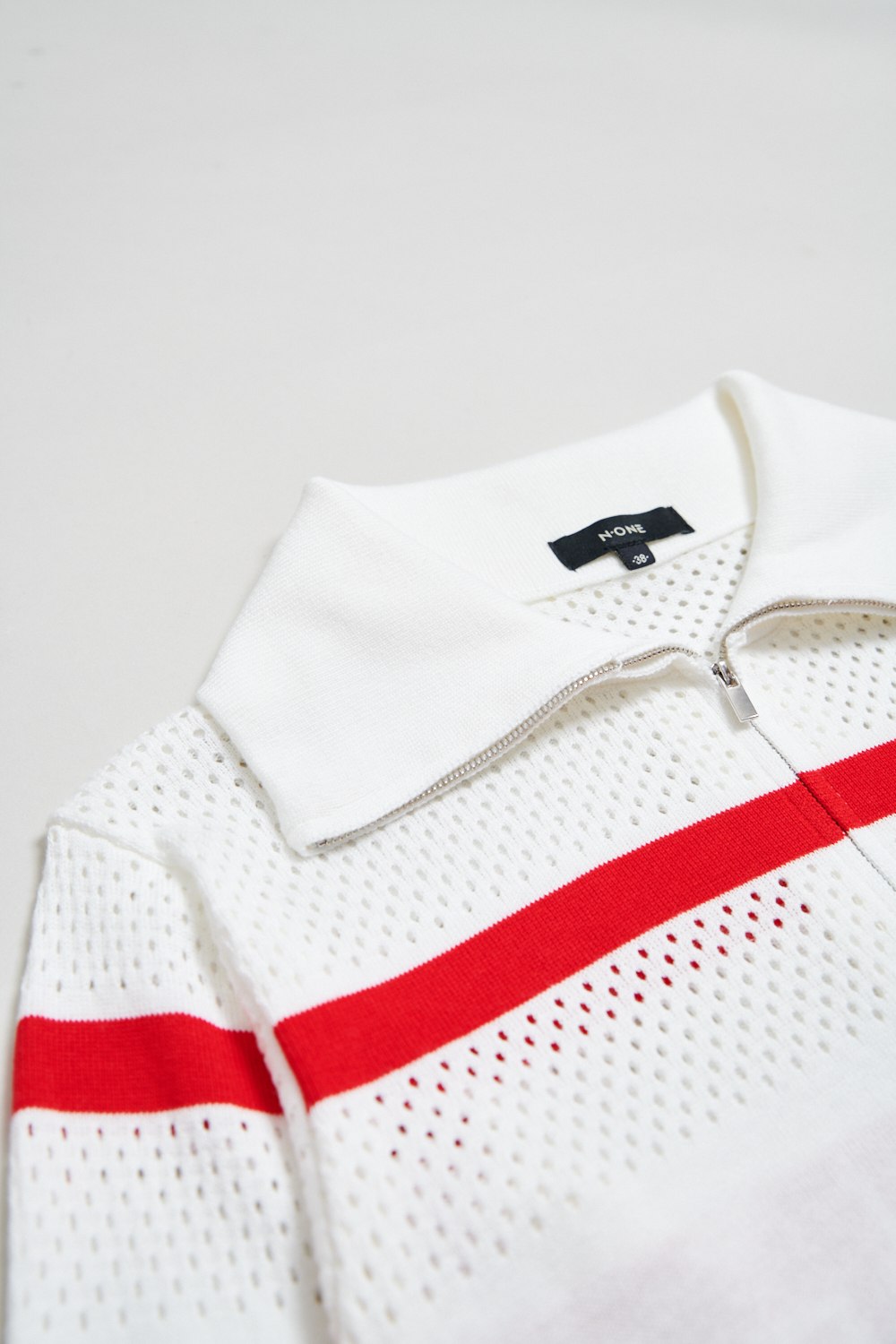 晨曦暖陽翻領條紋針織外套 - 無瑕純白, 40