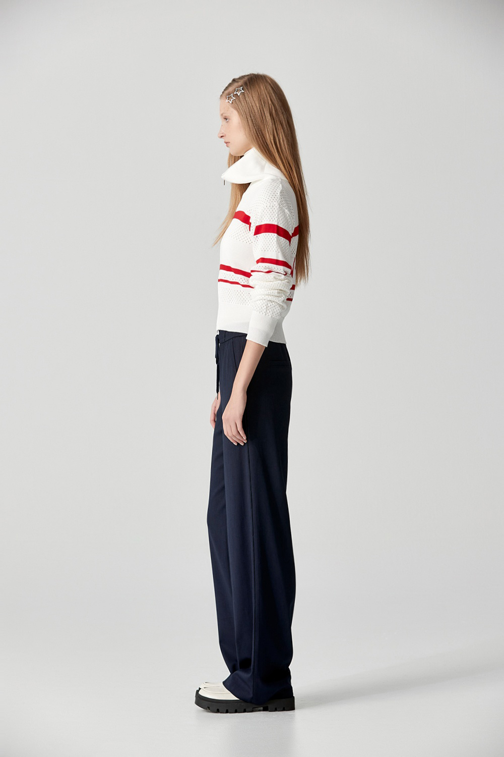 晨曦暖陽翻領條紋針織外套 - 無瑕純白, 36