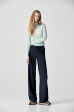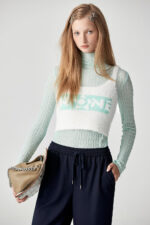 薄荷霜淇淋彈力菱紋泡泡高領上衣 - 夢幻灰綠, 38