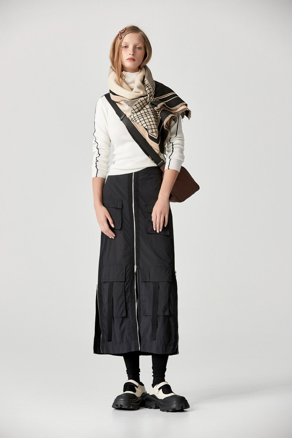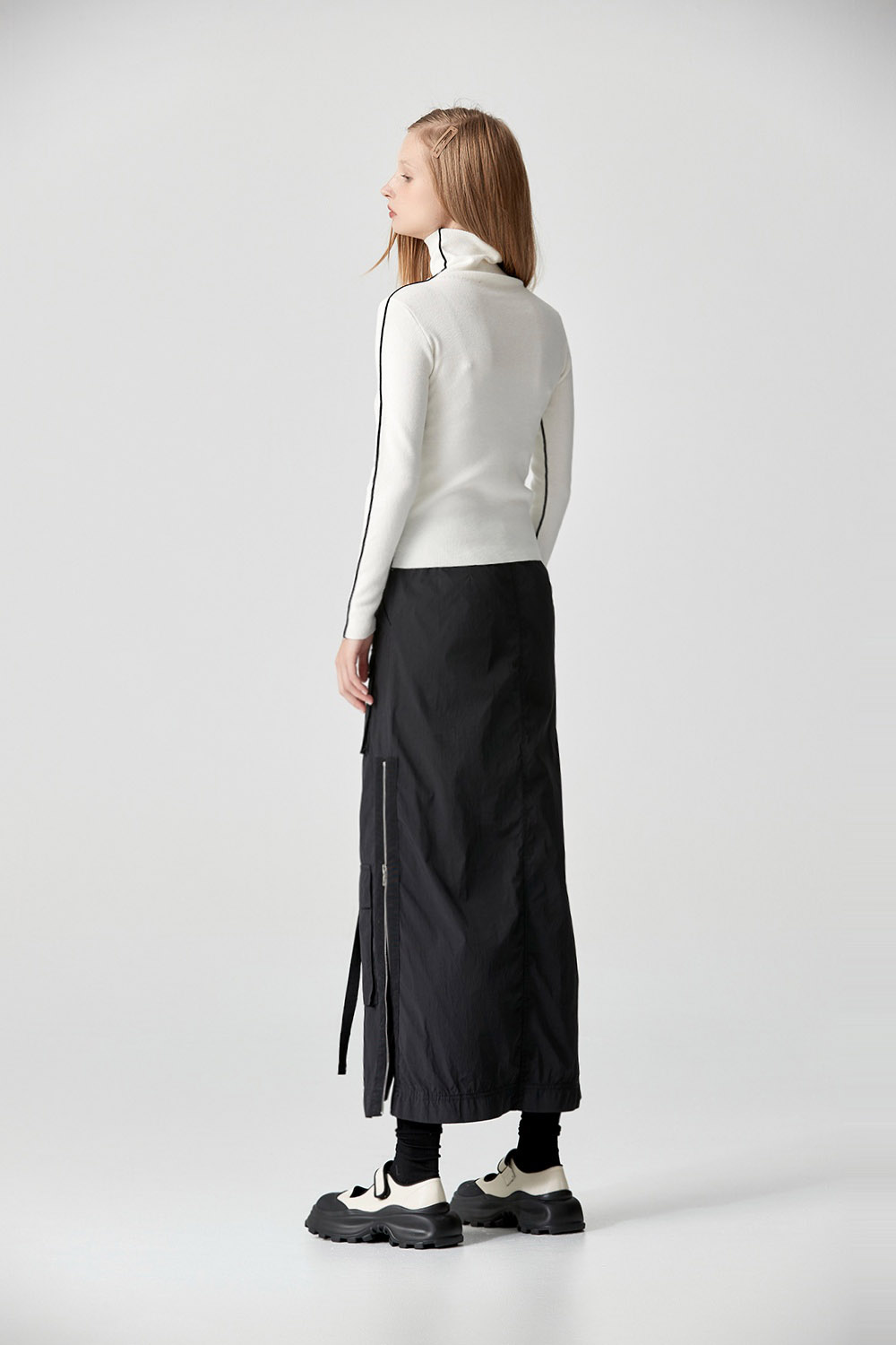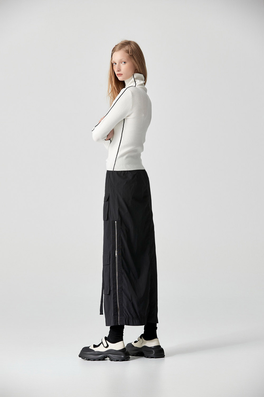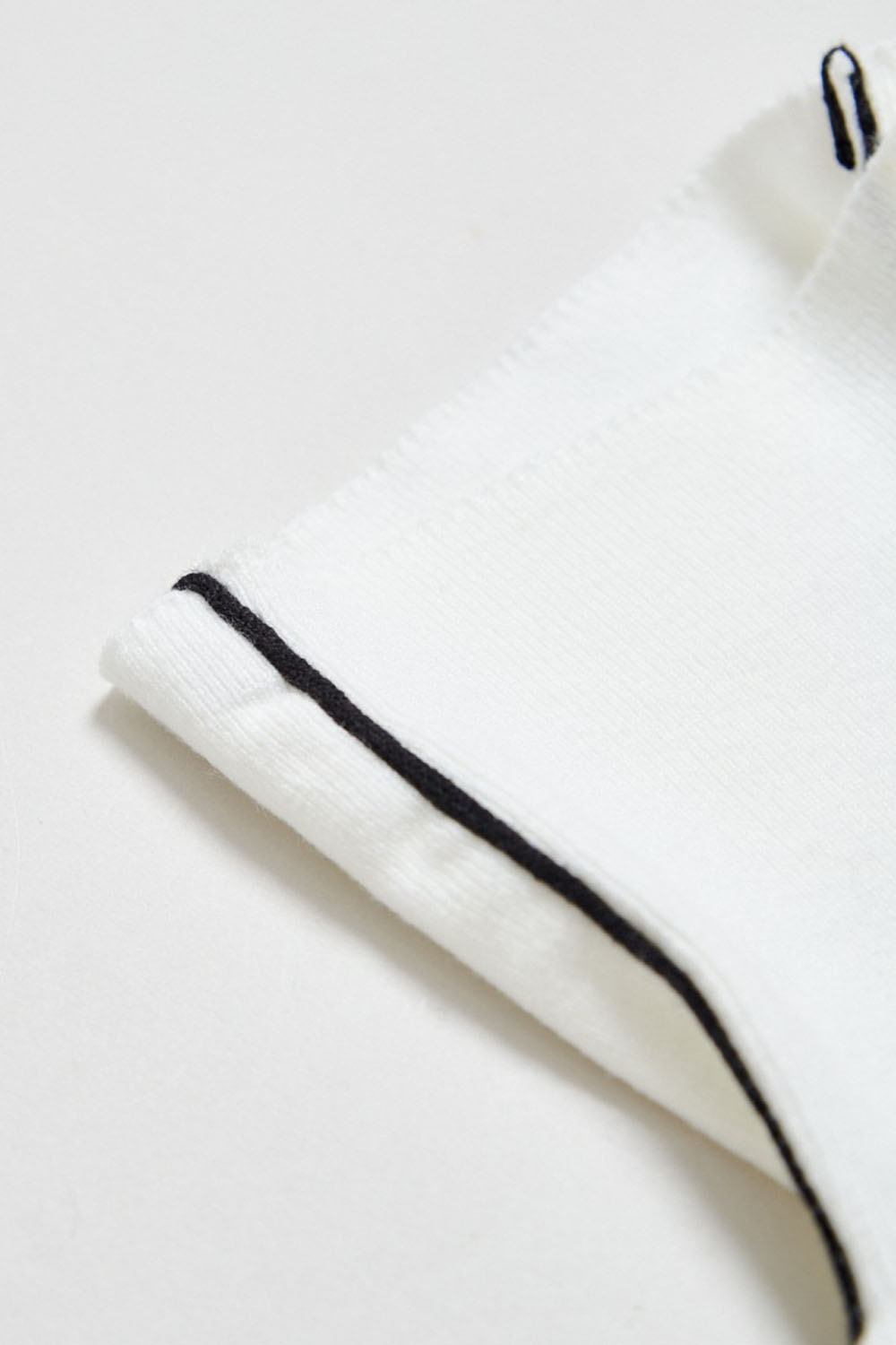 材質很舒服不刺,黑色邊條讓衣服在純白色的單調中,隱約的跳出設計感,單穿就很吸睛又好看。