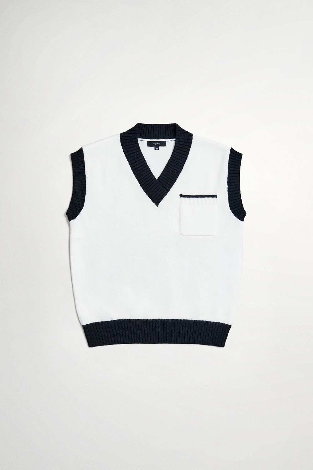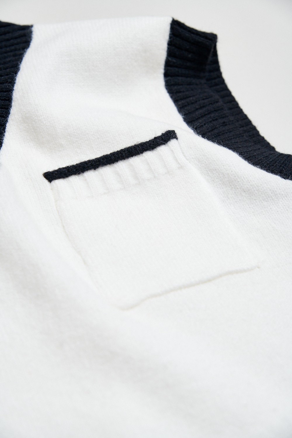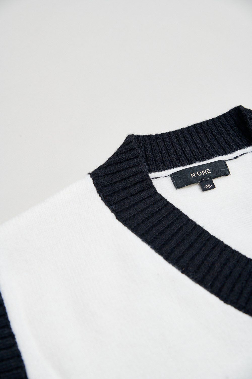 墨黑雪白V領針織上衣 - 無瑕純白, 40