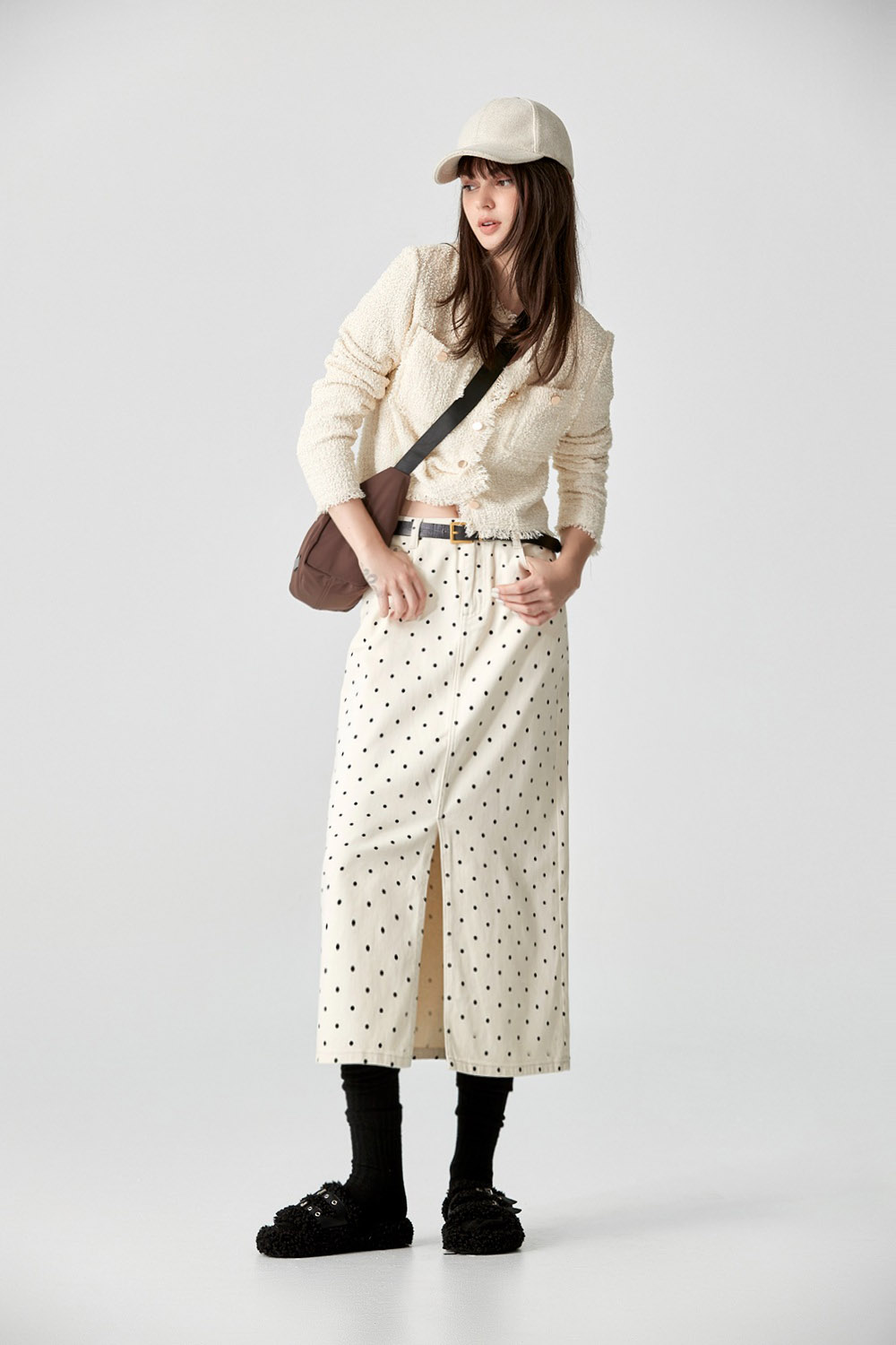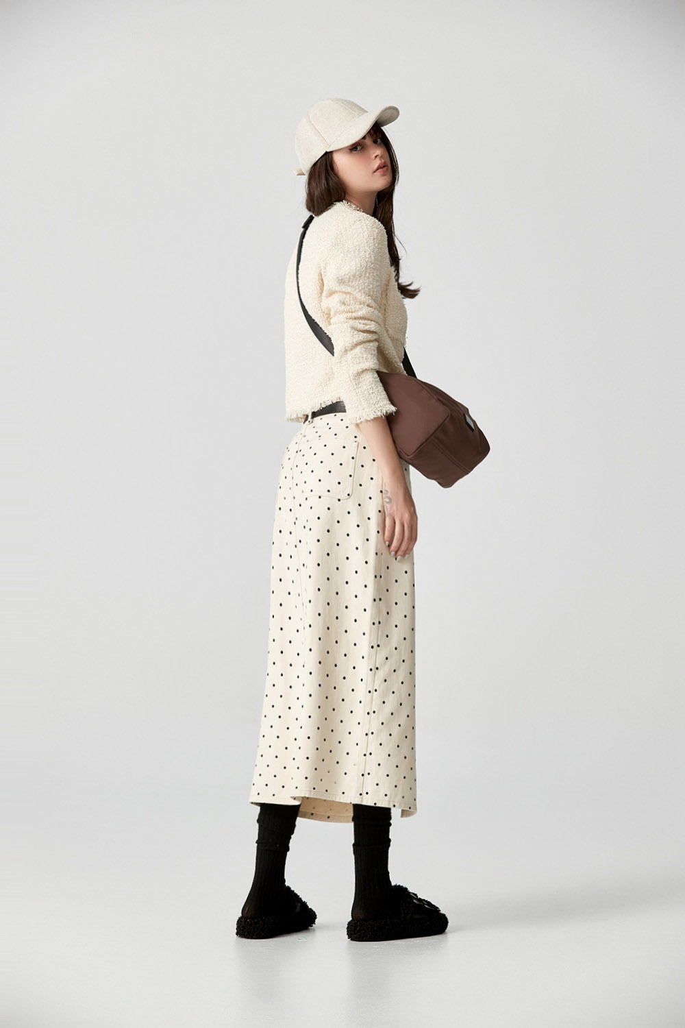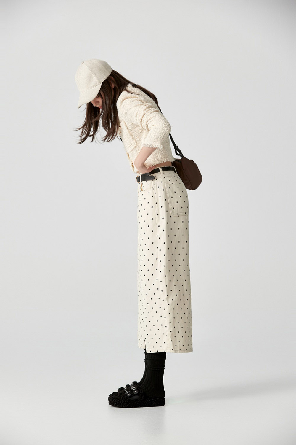浮雪漫舞圓點開衩裙 - 奶油杏色, 36