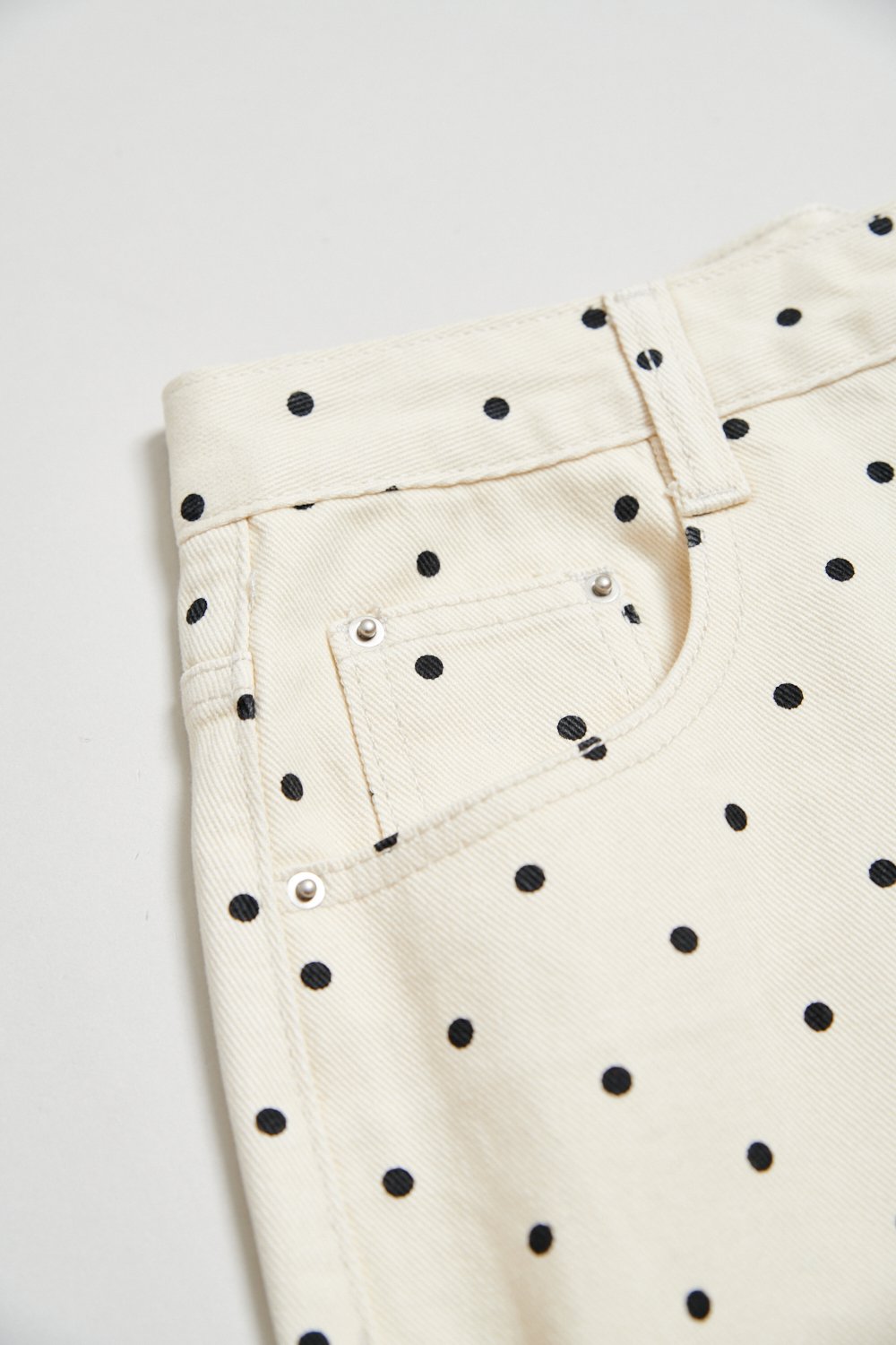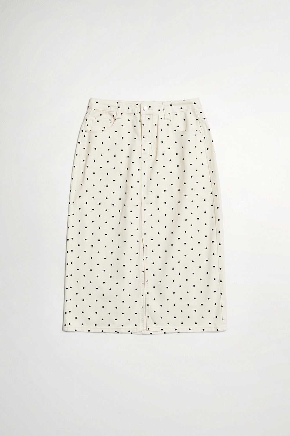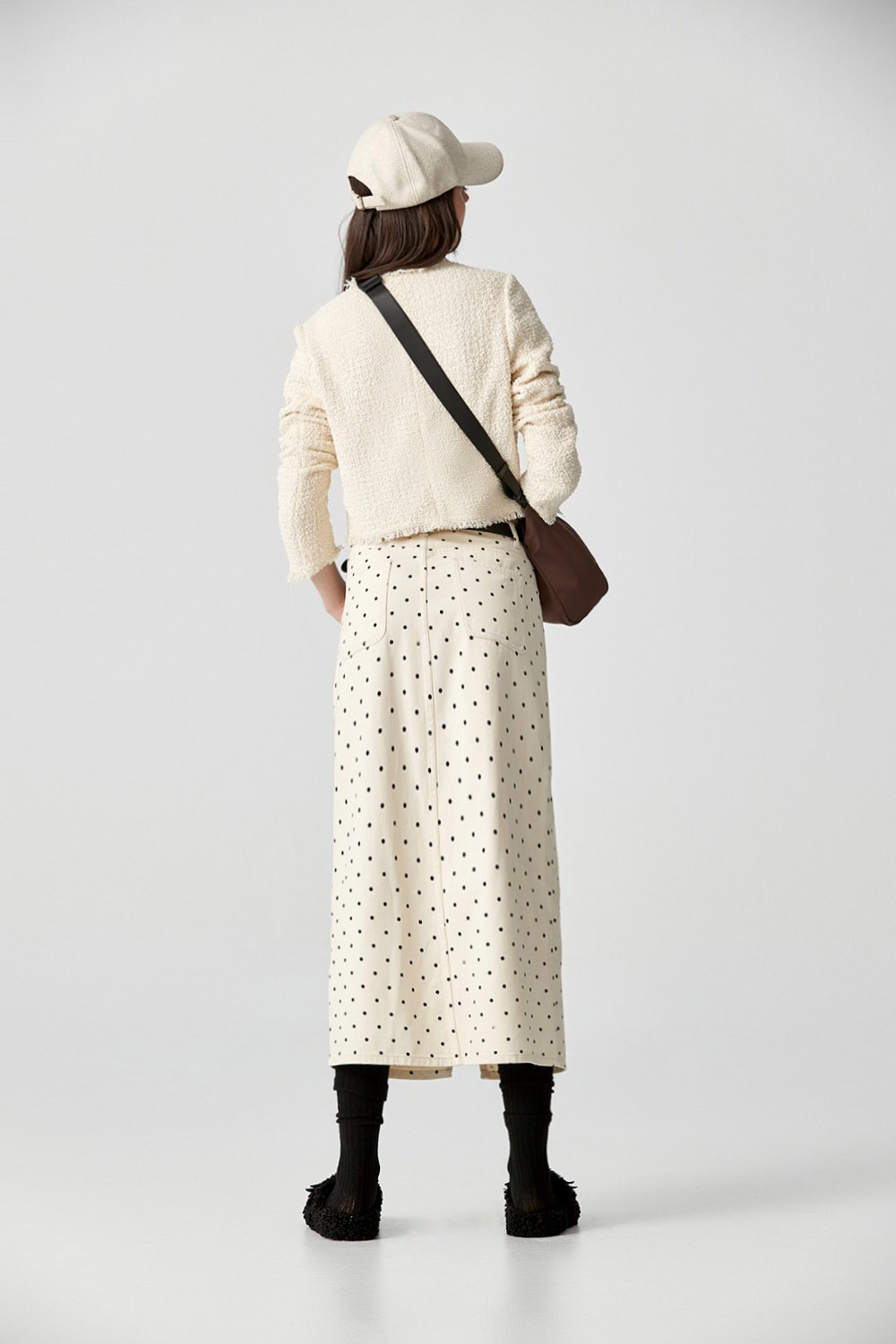 浮雪漫舞圓點開衩裙 - 奶油杏色, 36