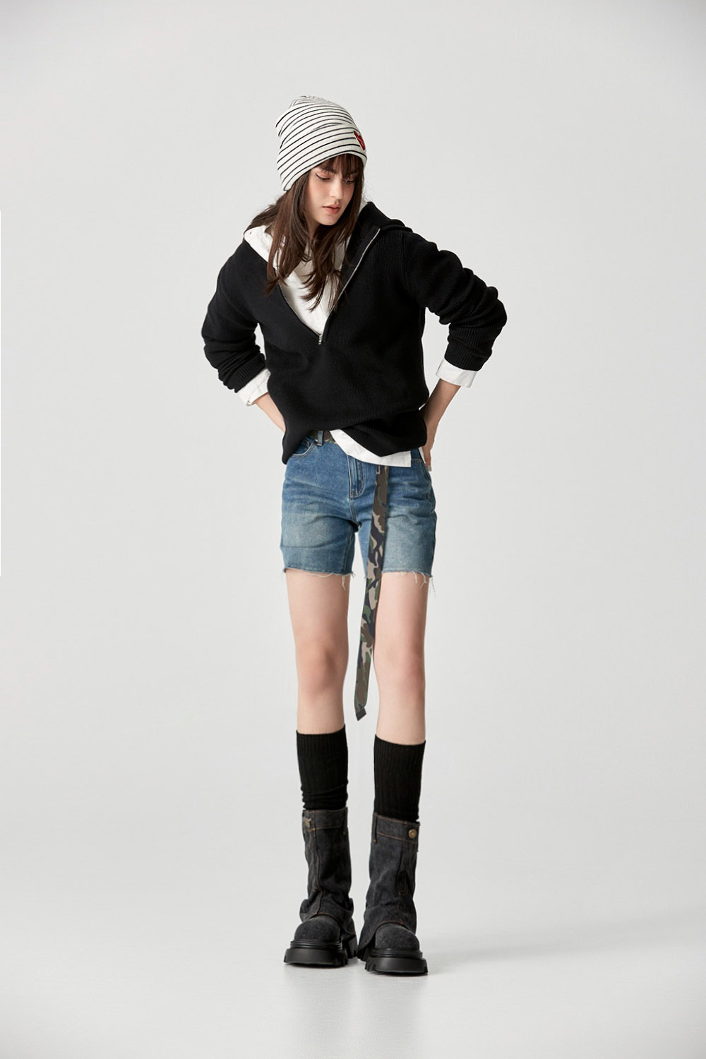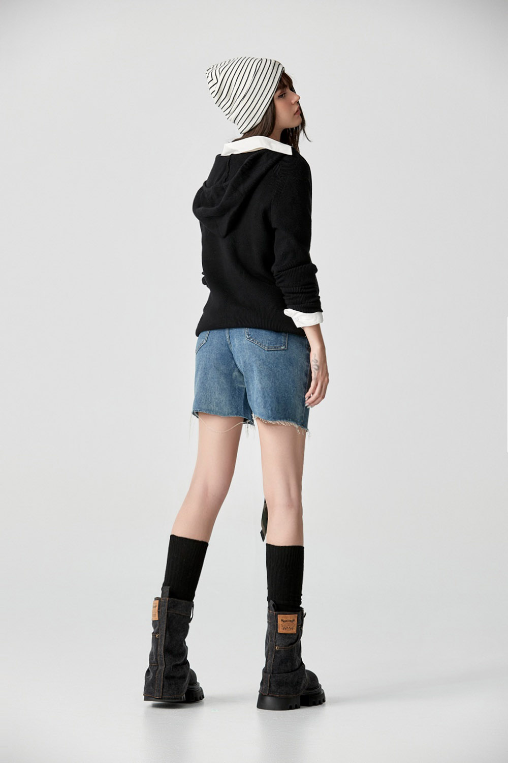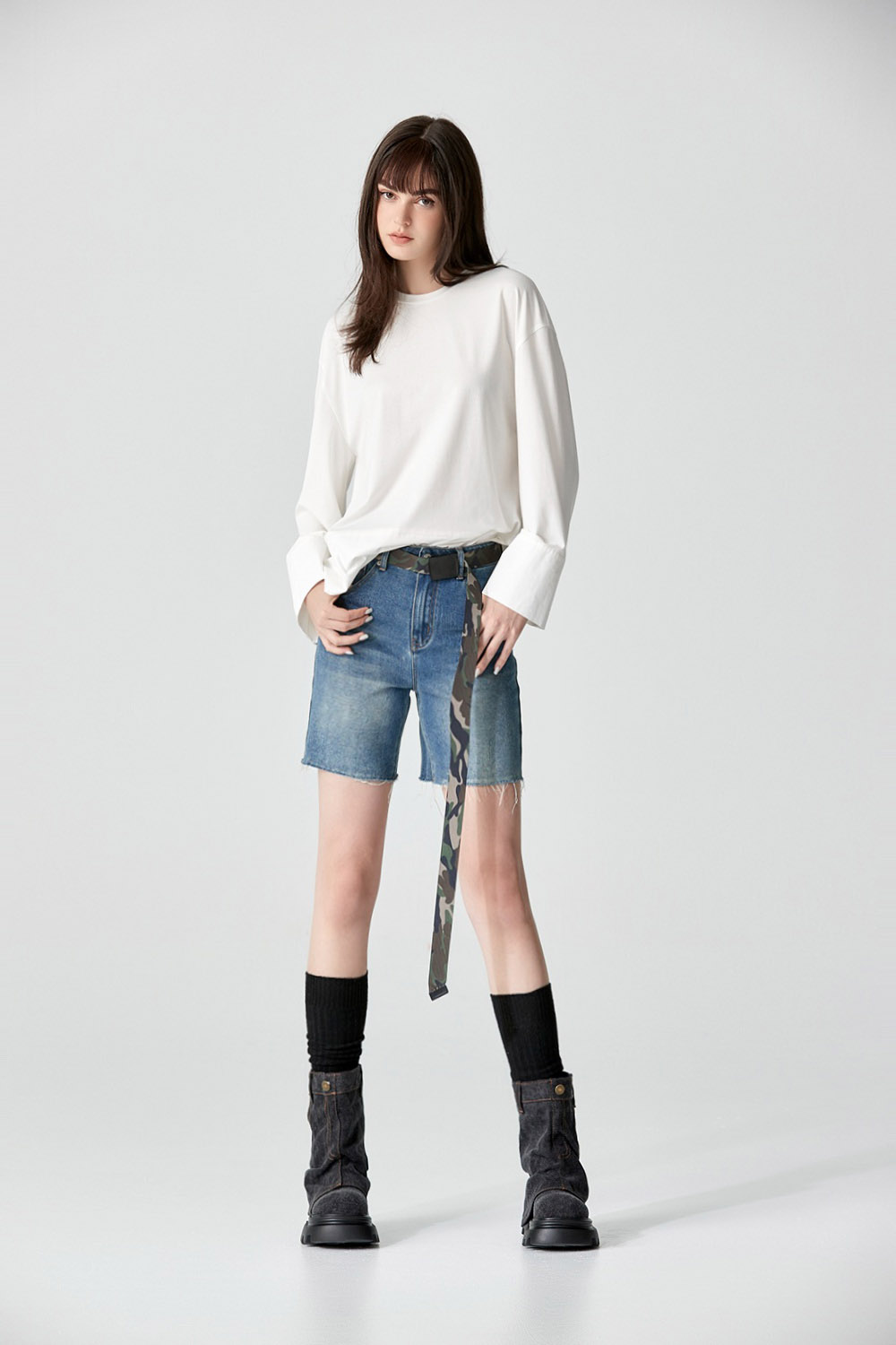 隨興丹寧不收邊牛仔短褲 - 深邃藏藍, 36