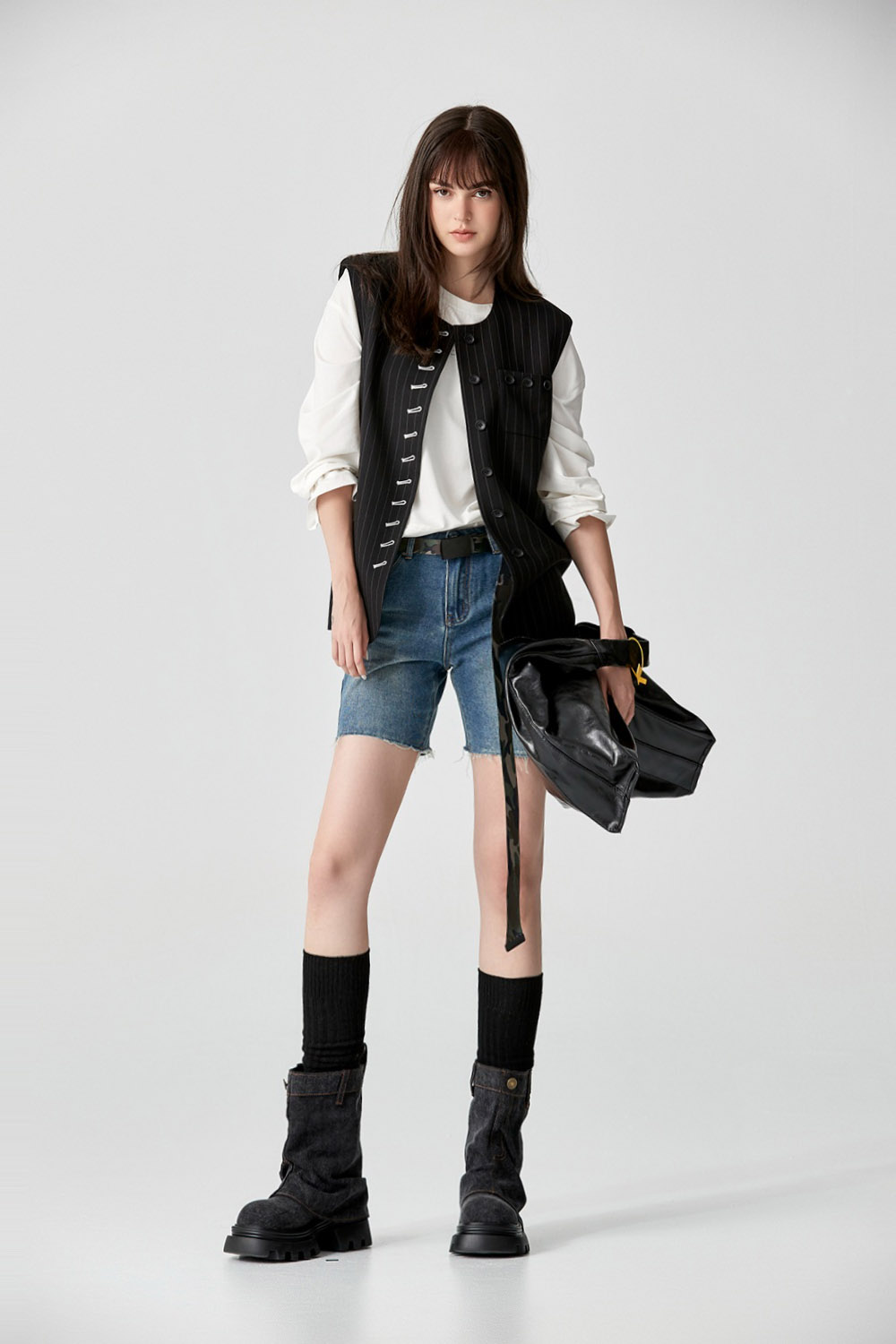 隨興丹寧不收邊牛仔短褲 - 深邃藏藍, 40