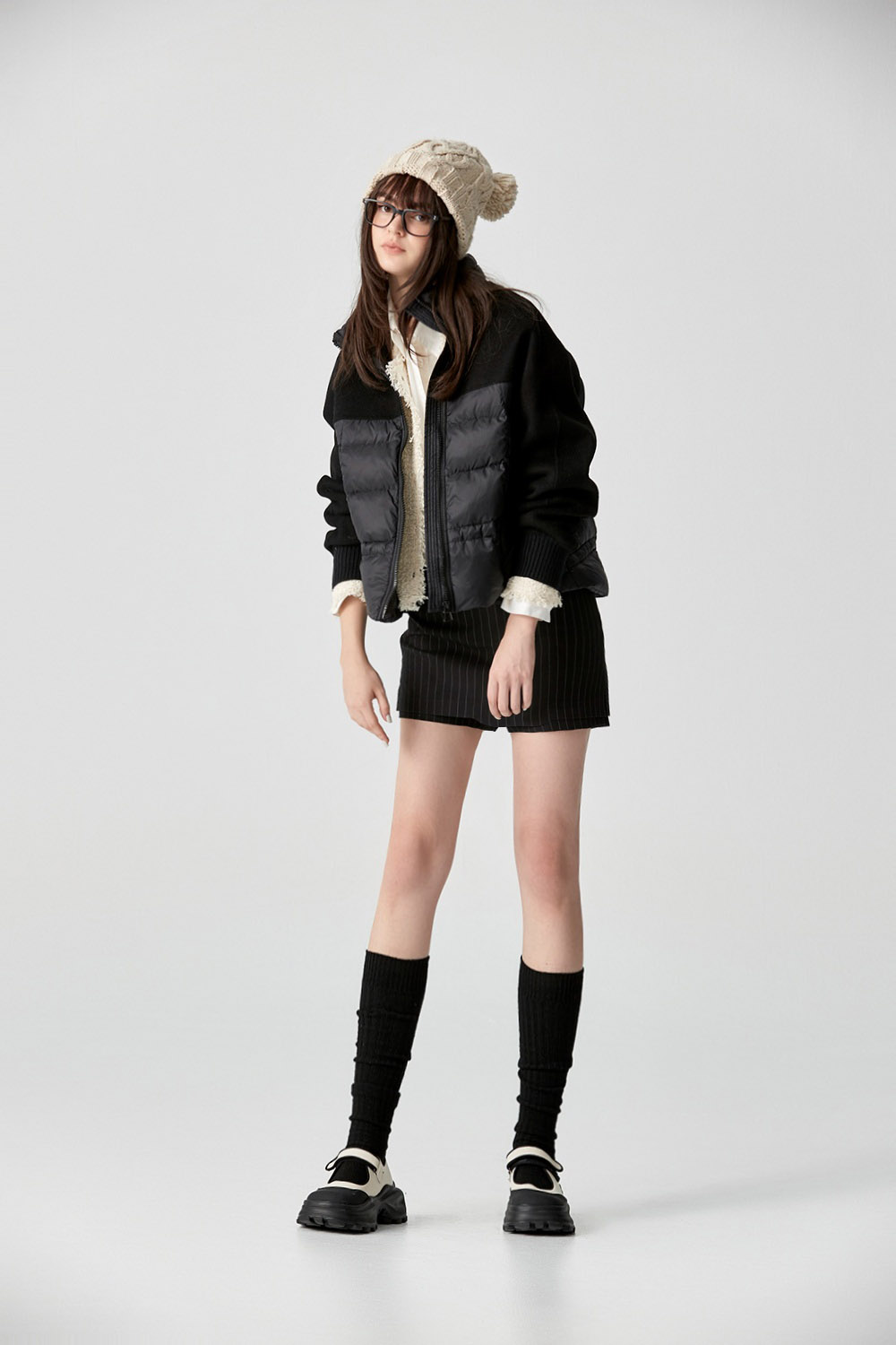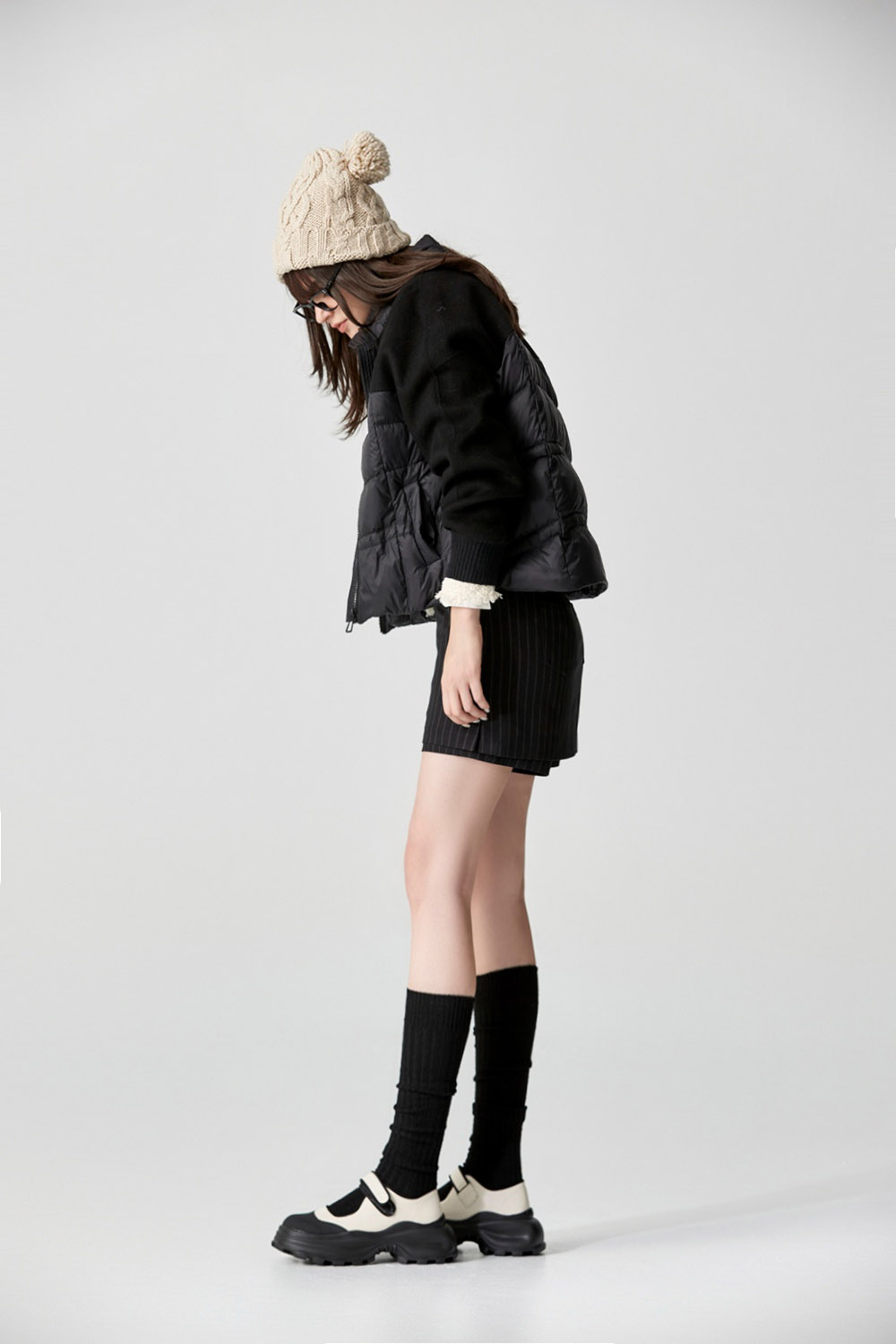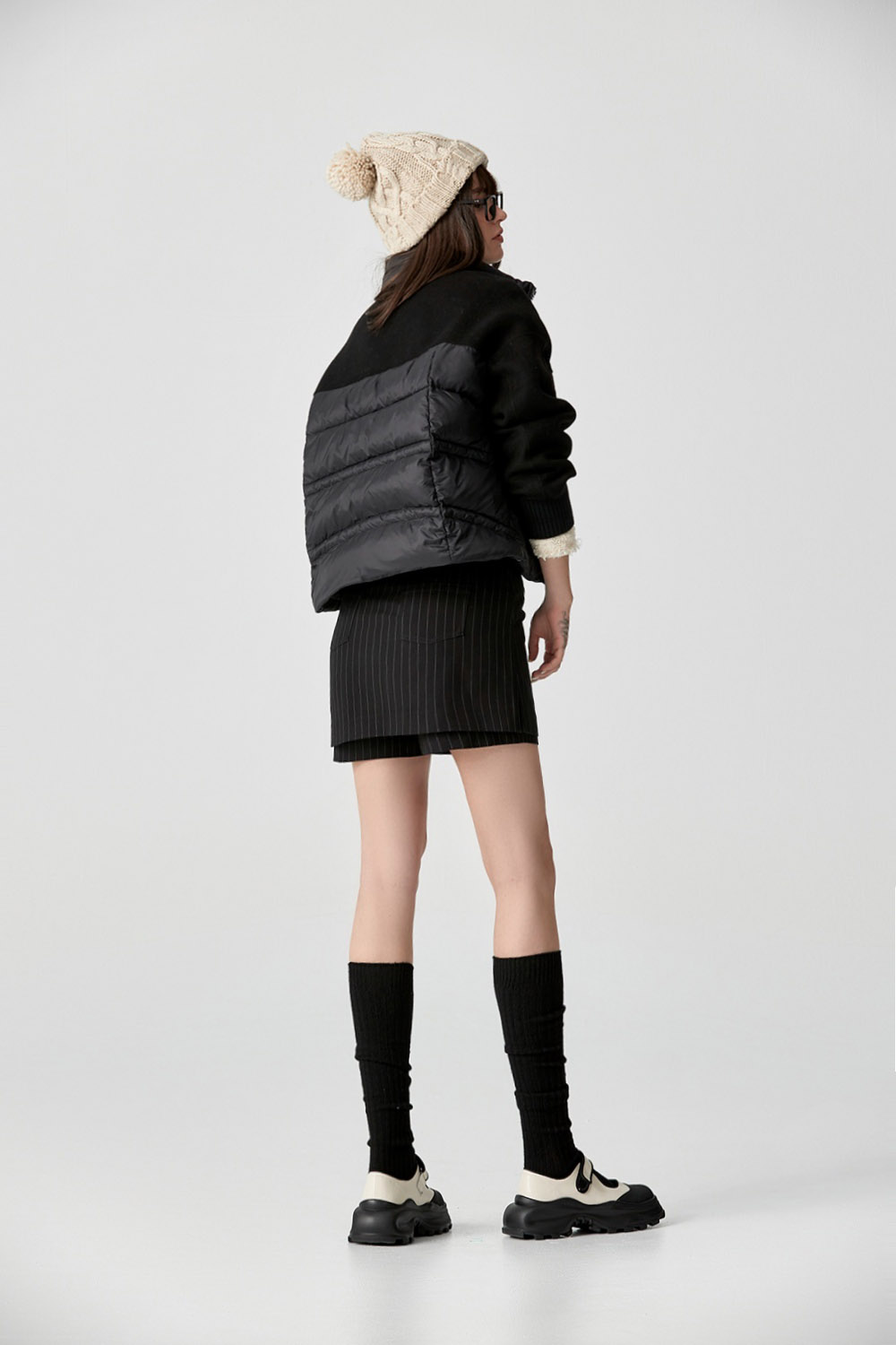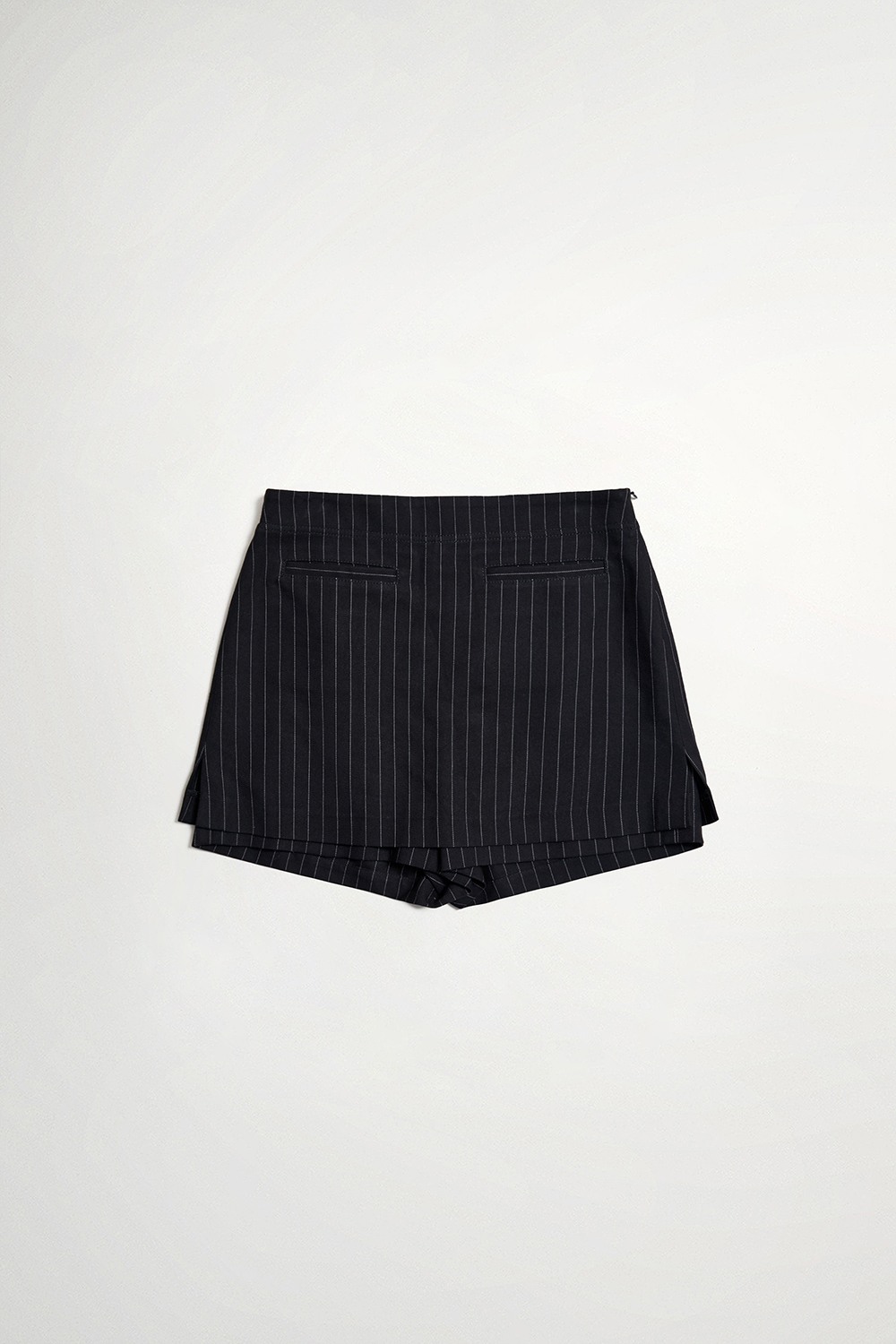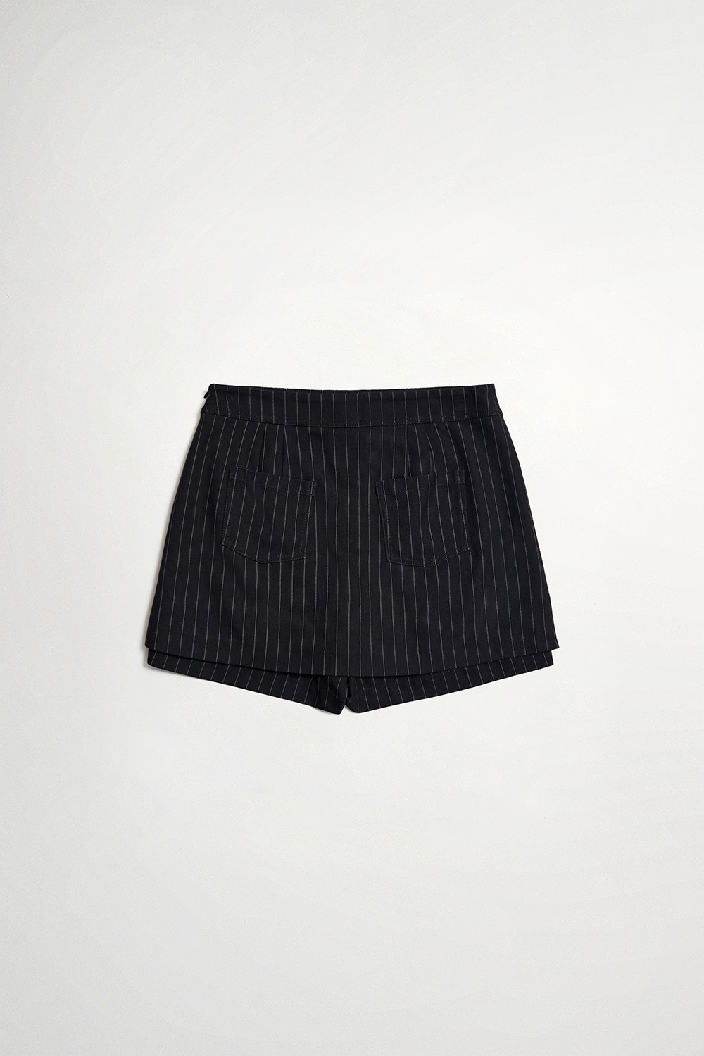 深夜之霧簡約條紋短裙 - 神祕純黑, 40