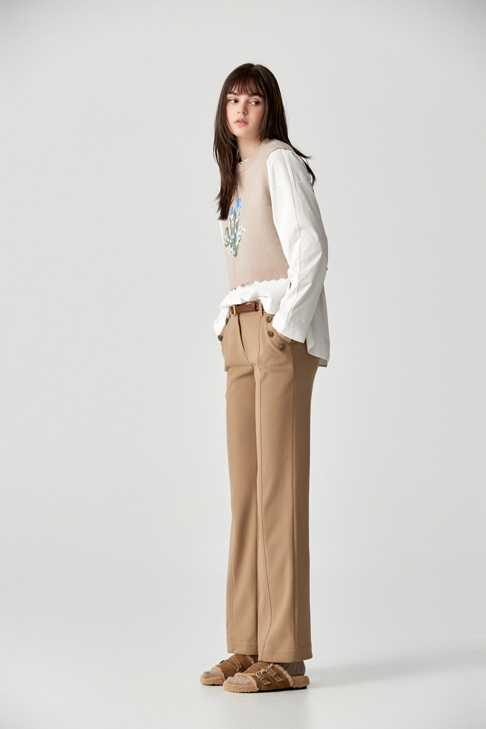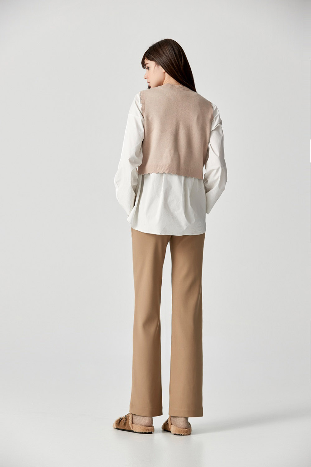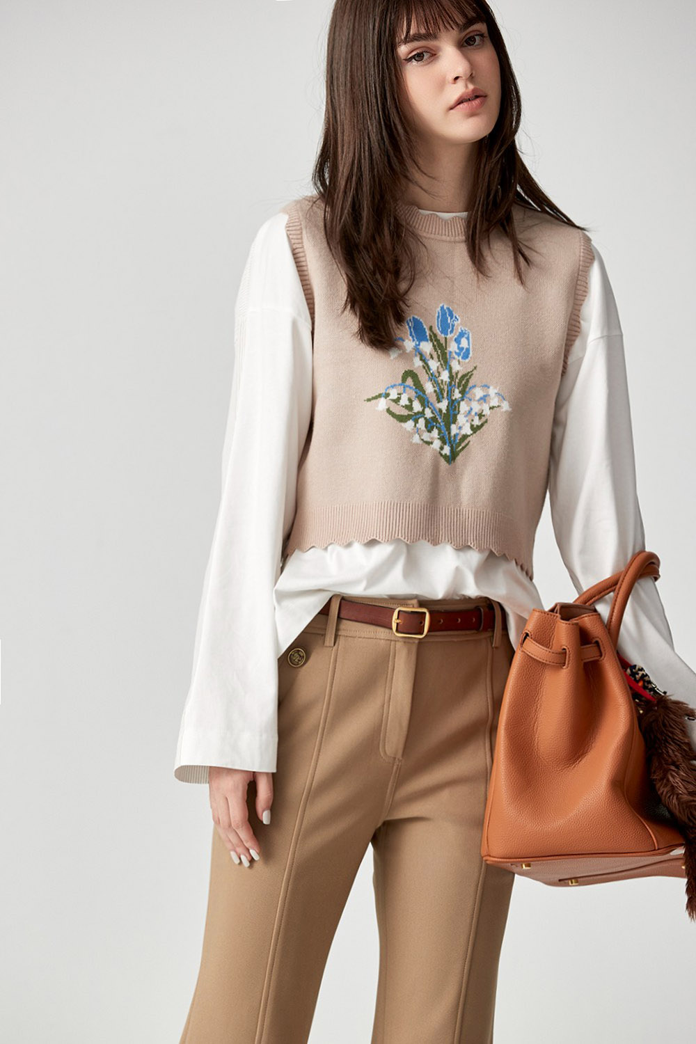 霧色溫柔繡花花邊針織上衣背心 - 可可卡其, 38