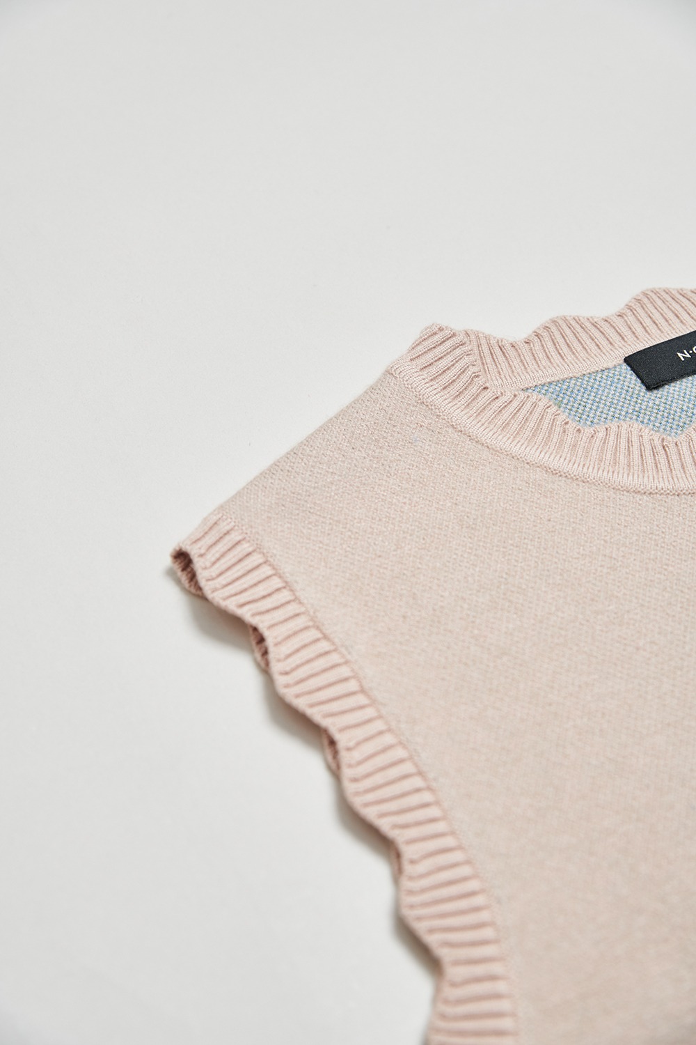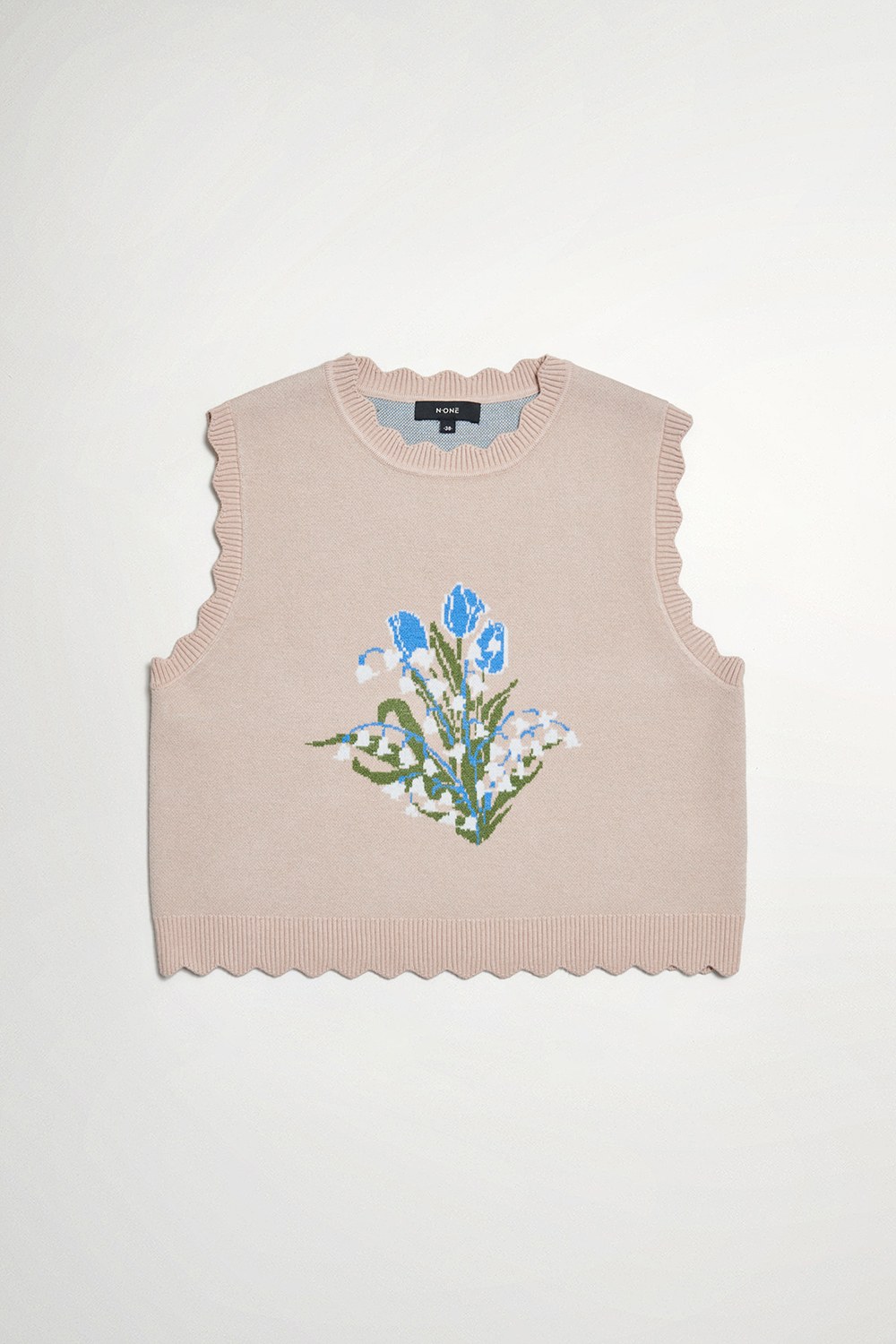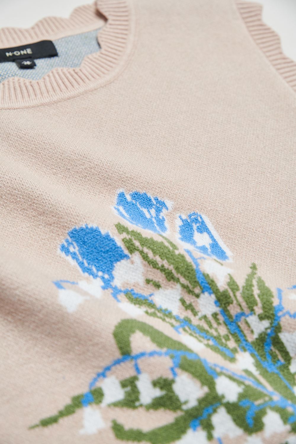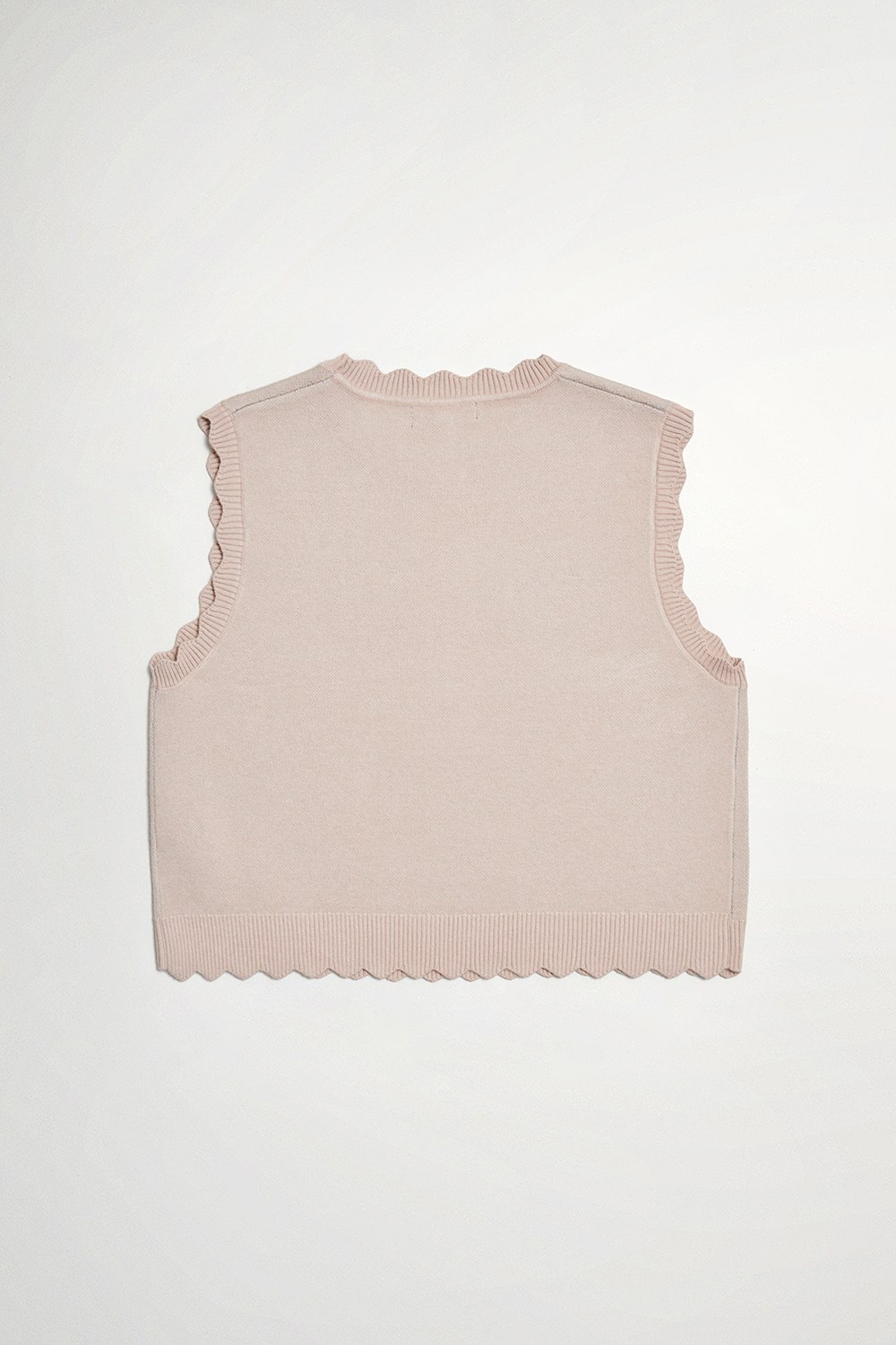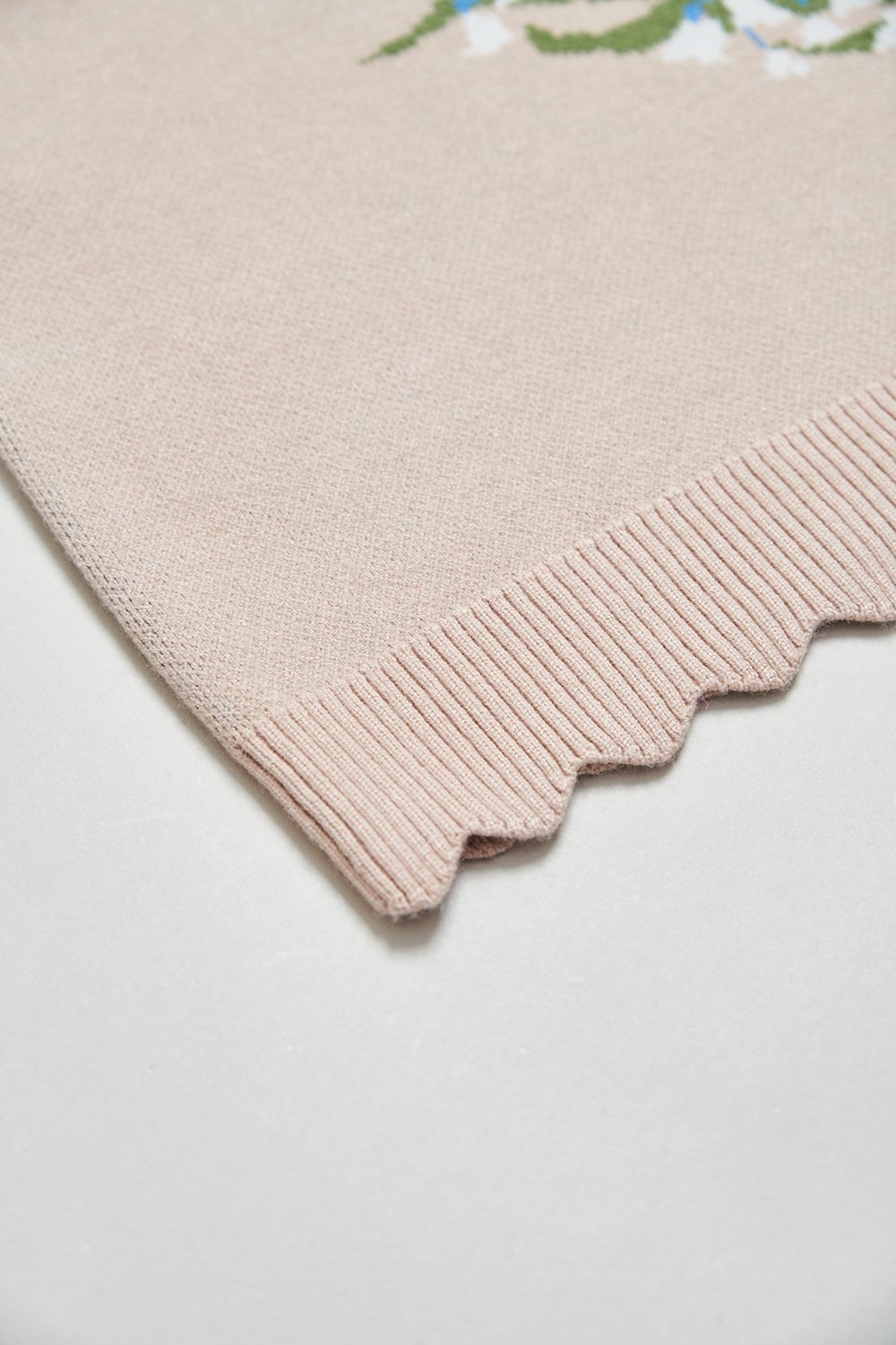 霧色溫柔繡花花邊針織上衣背心 - 可可卡其, 36