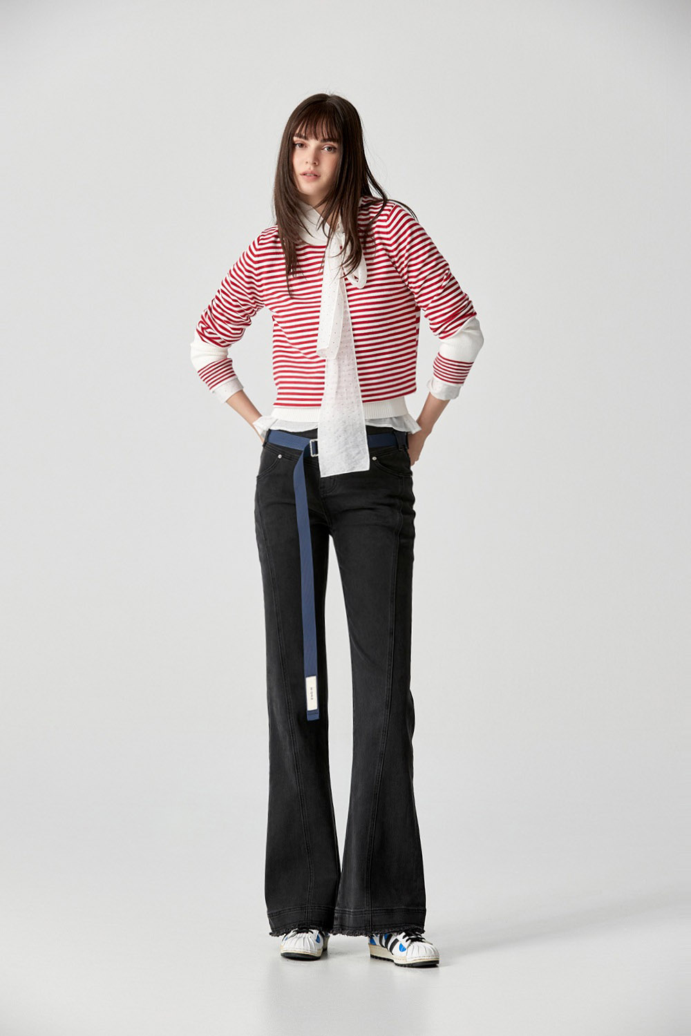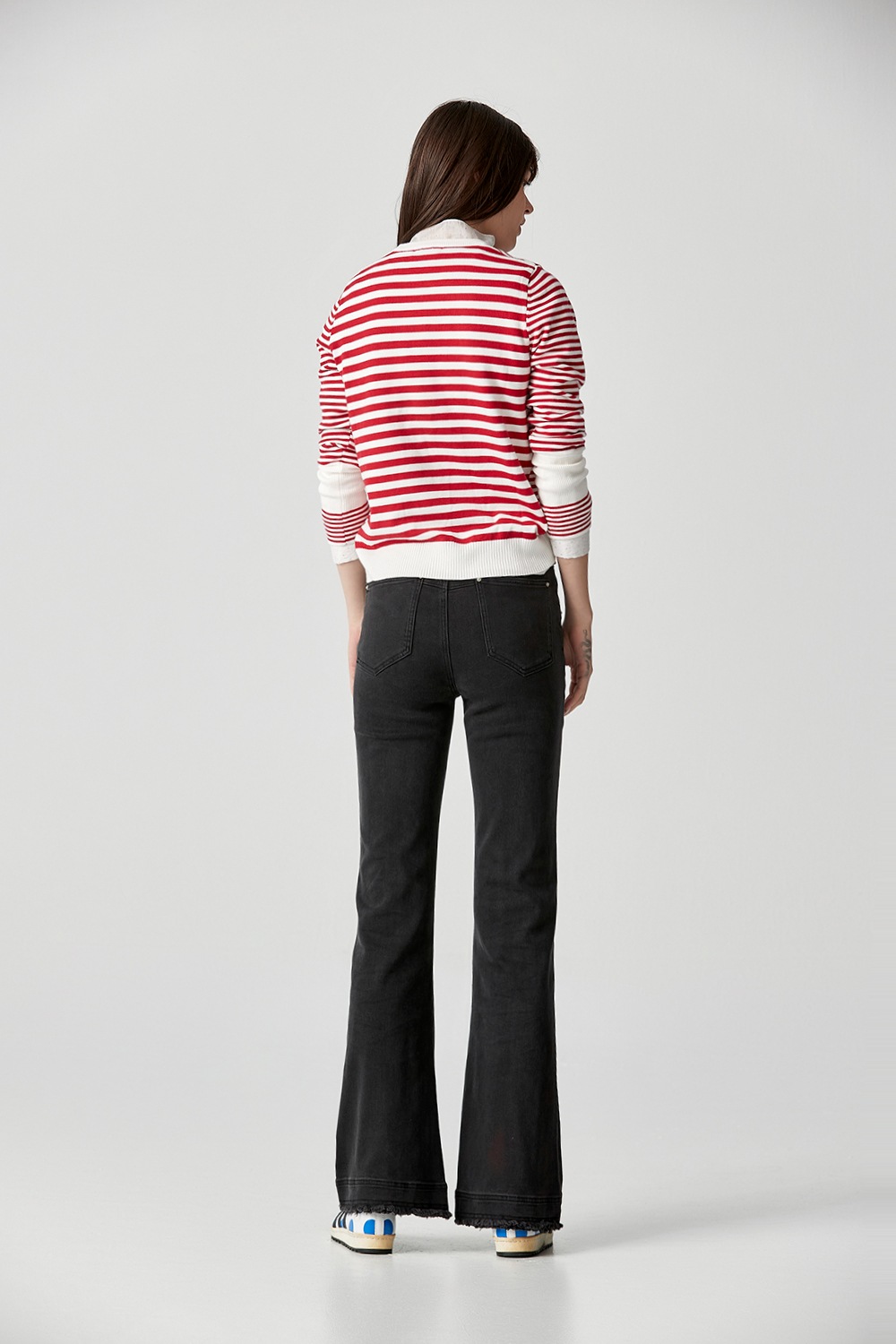 深紅曖昧細配條針織上衣 - 撫媚枚紅, 38