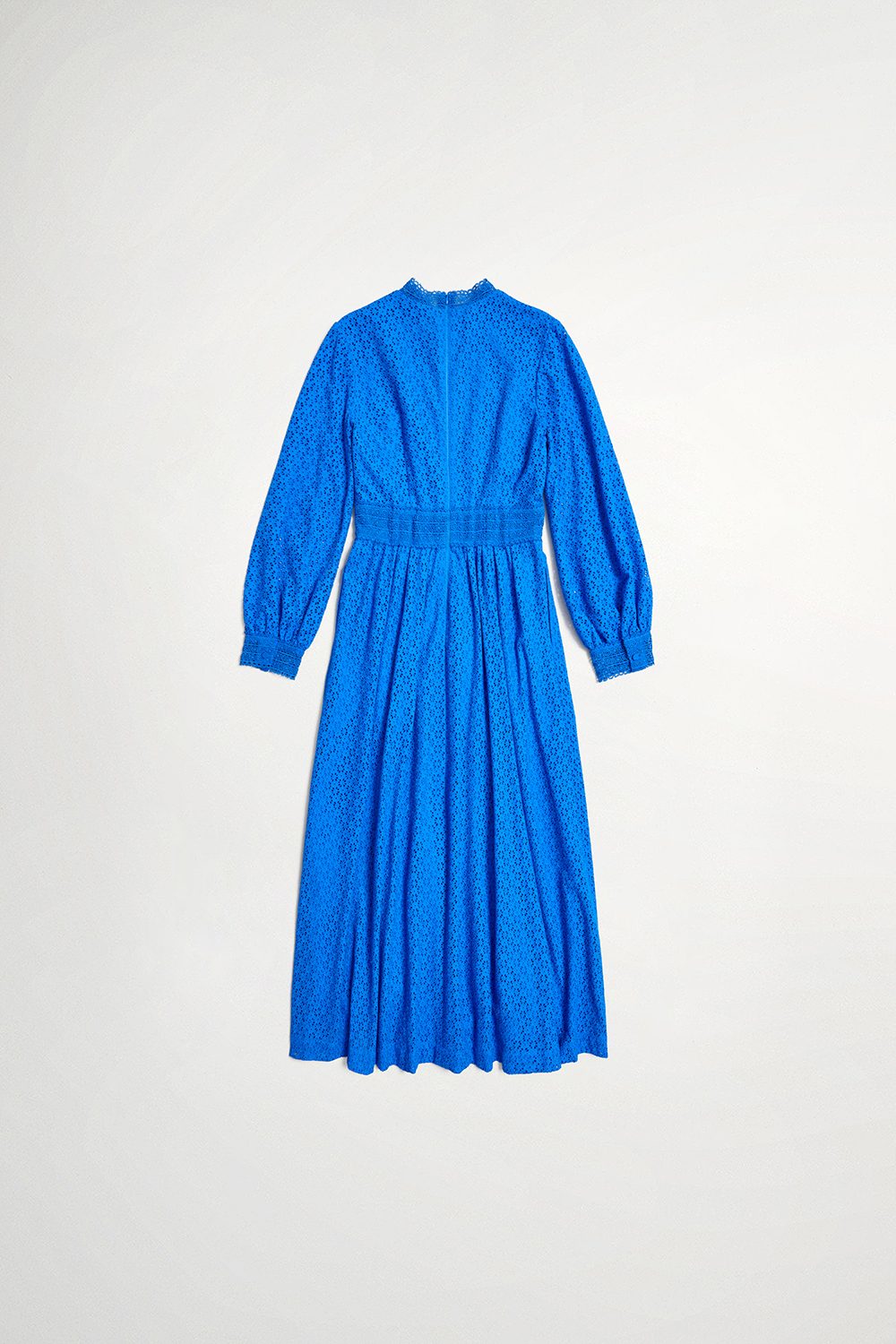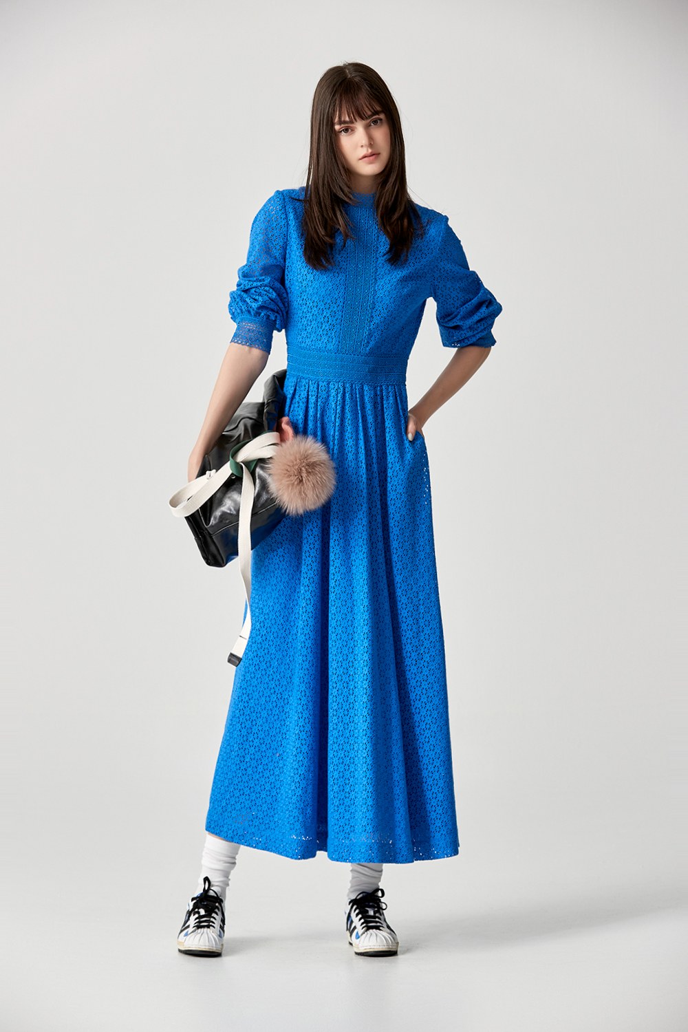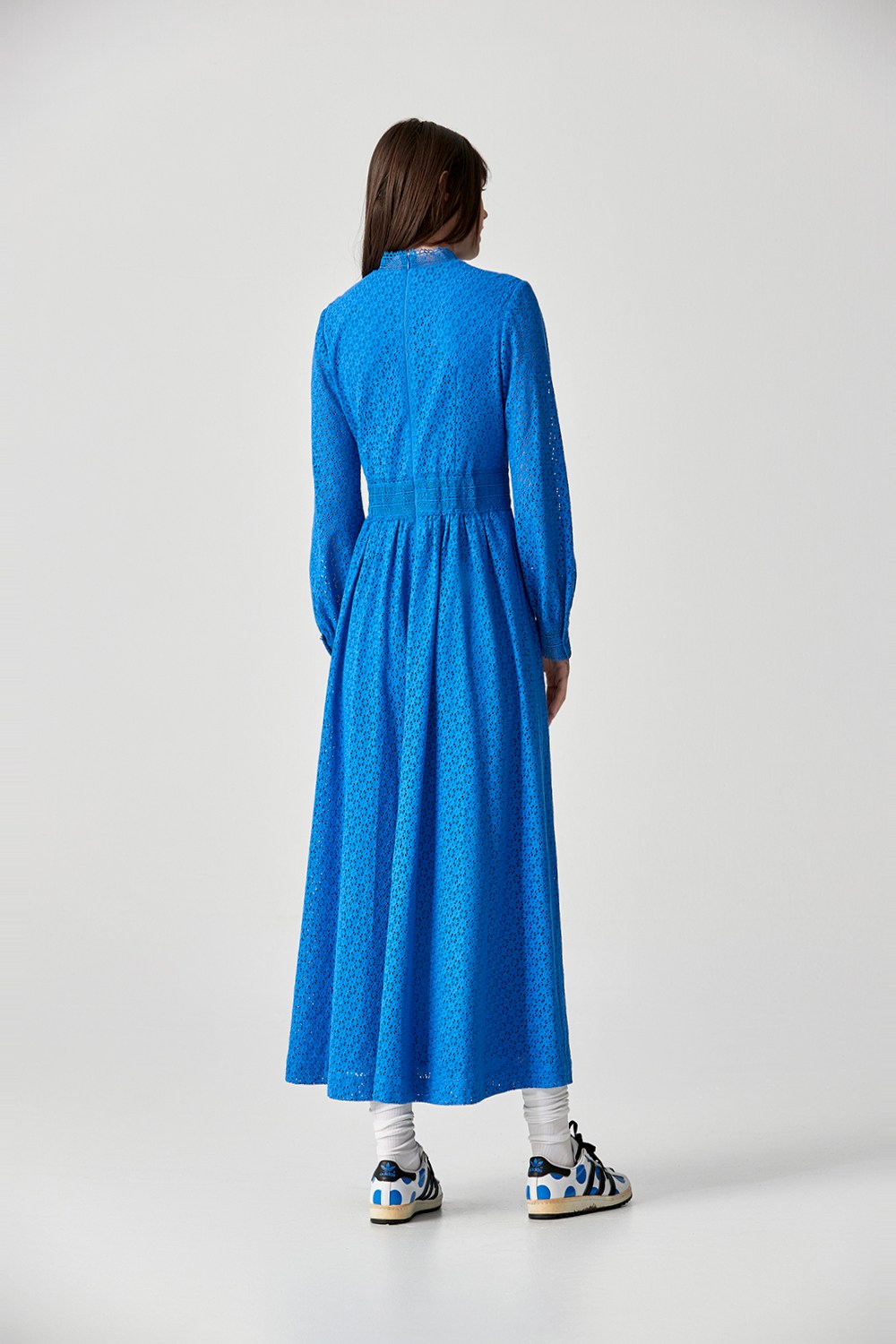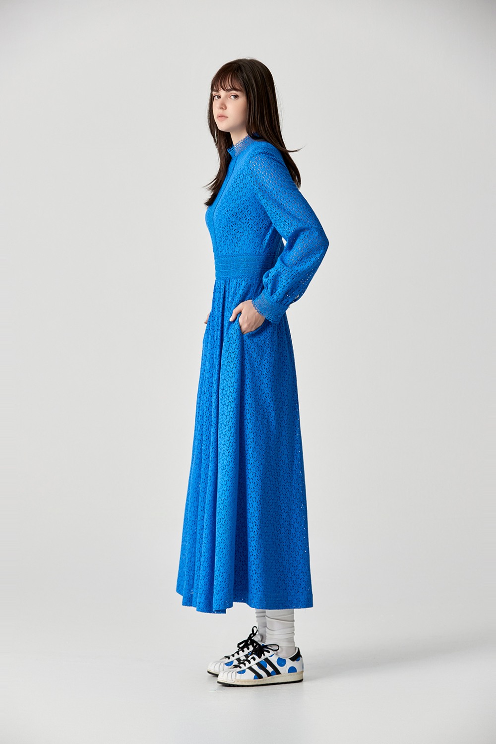 晶藍清澈簍空繡花長洋裝 - 寧靜黛藍, 36