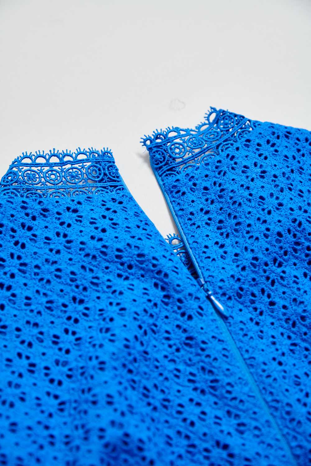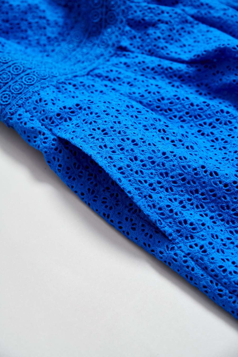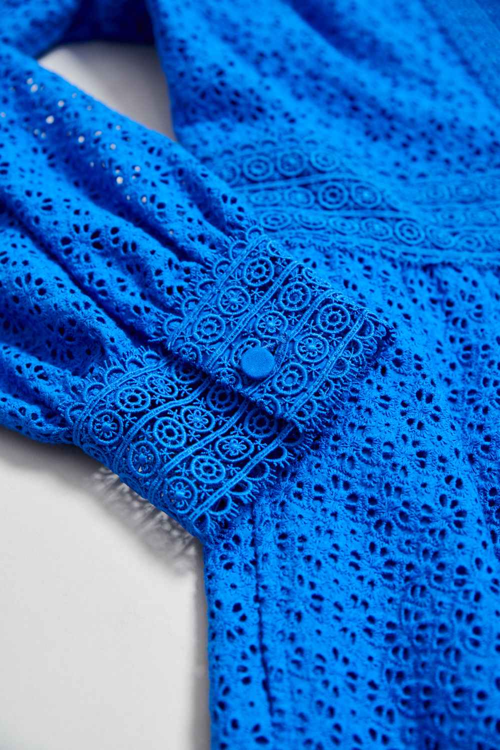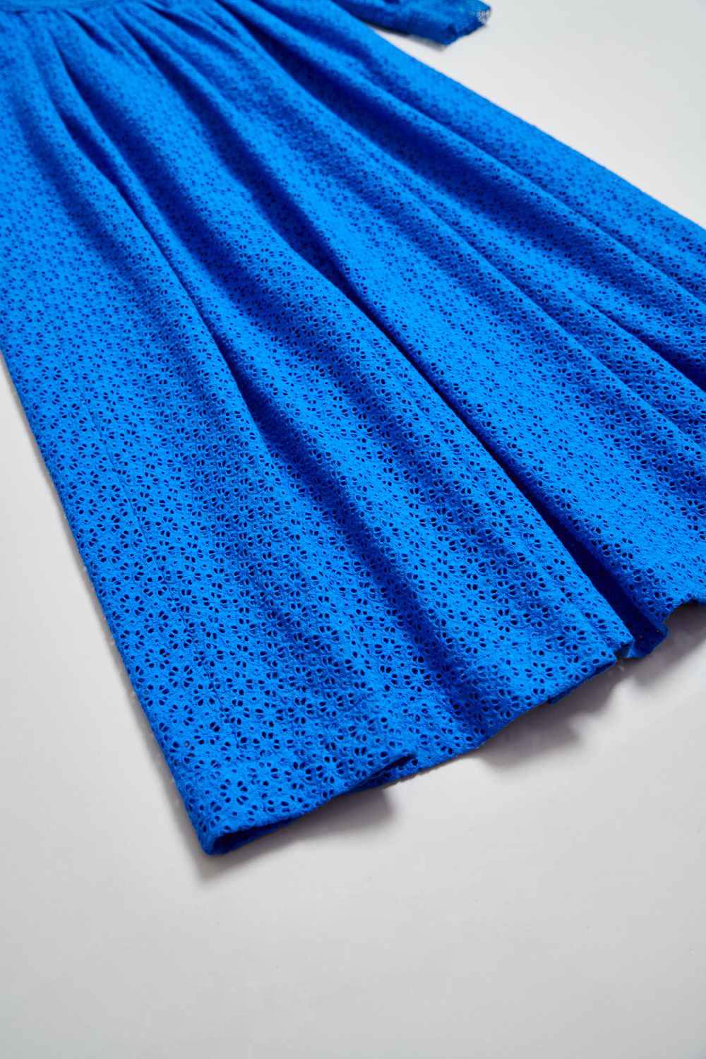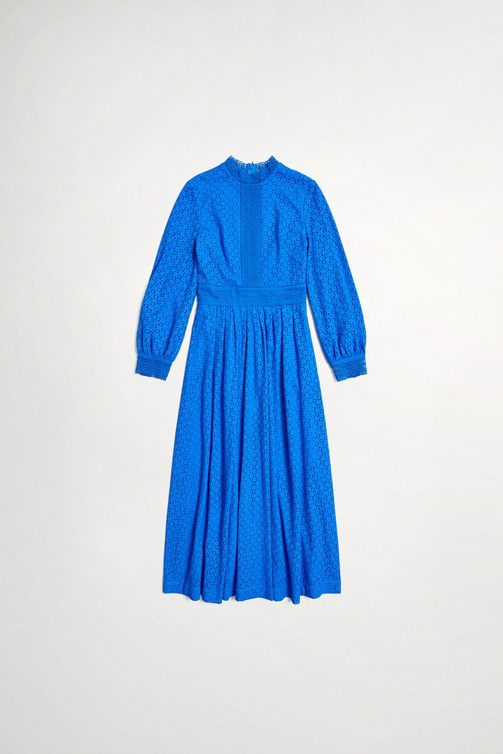 晶藍清澈簍空繡花長洋裝 - 寧靜黛藍, 36