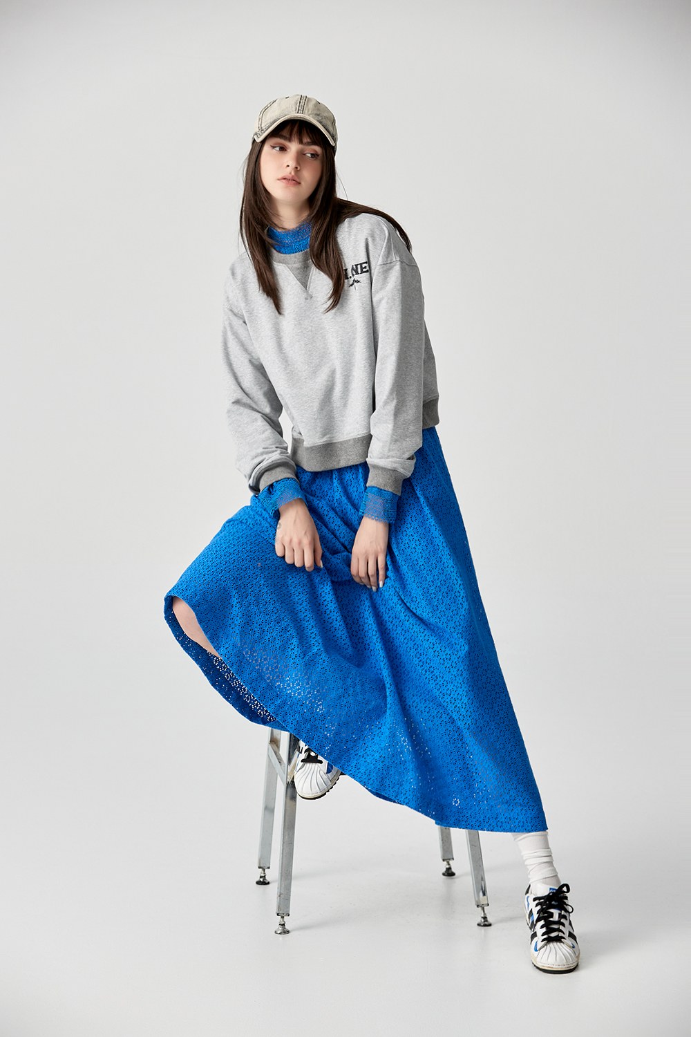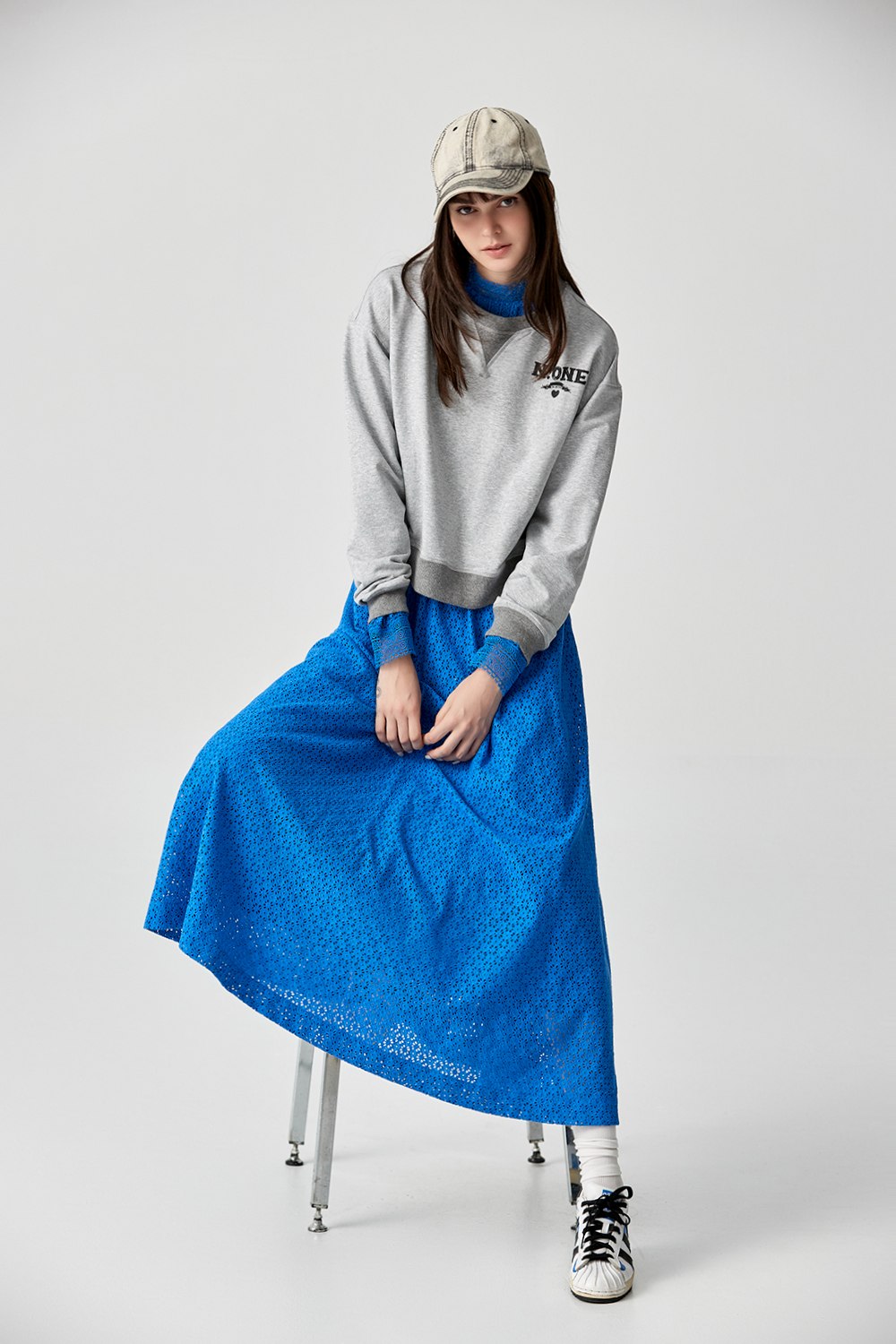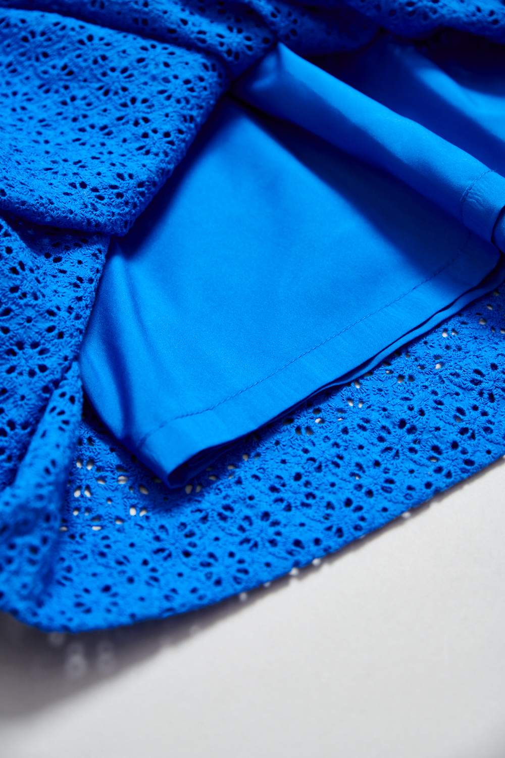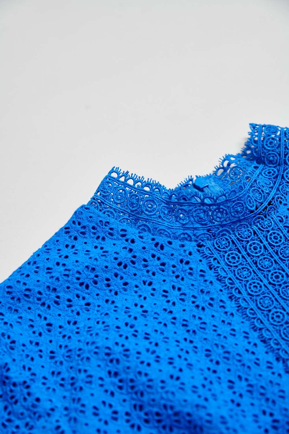 晶藍清澈簍空繡花長洋裝 - 寧靜黛藍, 36
